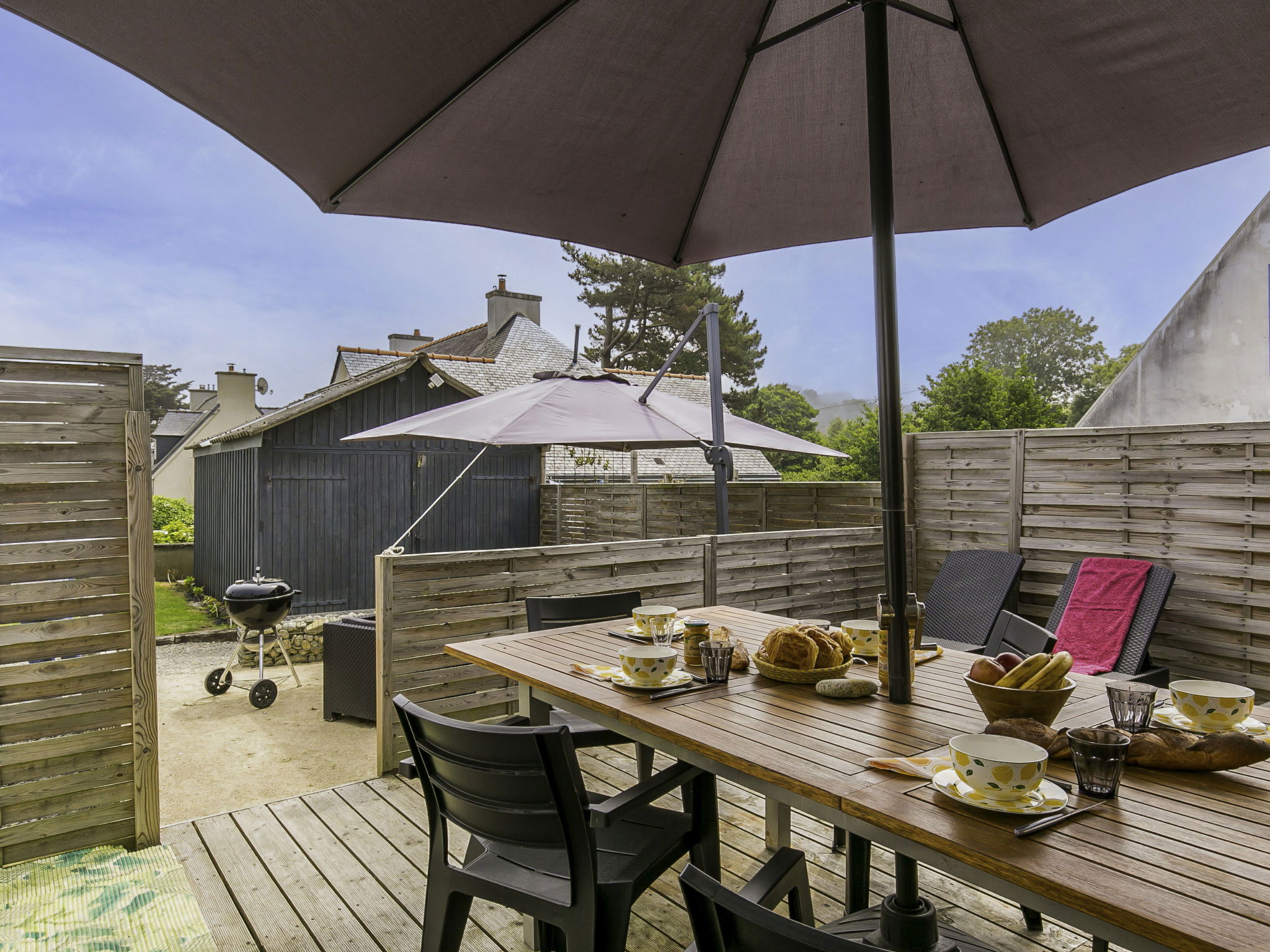 Beautiful semi-detached house "Le Coup de Coeur". In the district of Moulin de la Rive 2.5 km from the centre of Locquirec, 3.5 km from the centre of Guimaec, 19 km from the centre of Morlaix, 250 m from the sea, 250 m from the beach. Private: property 300 m2 (fenced) with lawn and wildlife garden. Outdoor shower. In the house: storage room for bicycles, washing machine, tumble dryer (for shared use). Parking (for 2 cars) on the premises. Shop 2 km, supermarket 6 km, restaurant 3 km, bakery 3 km, bus stop "Moulin de la Rive" 170 m, sandy beach "Moulin de la Rive" 250 m. Golf course (18 hole) 32 km, surf school 250 m, sailing school 6 km, riding stable 17 km, walking paths from the house 10 m. Nearby attractions: Cairn de Barnenez 19 km, Lannion 25 km, Ploumanac'h - Côte du Granit Rose 39 km, Roscoff et Jardin exotique, île de Batz 45 km, Vallée des Saints (Carnoet) 45 km, Oceanopolis Brest 75 km. Hiking paths: GR34, sentier des douaniers 200 m. Please note: Property ref. FR2967.645.1 is situated on the same property. The house has its entrance, terrace and private garden.