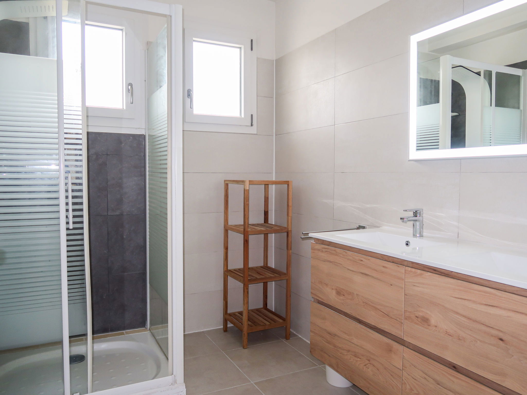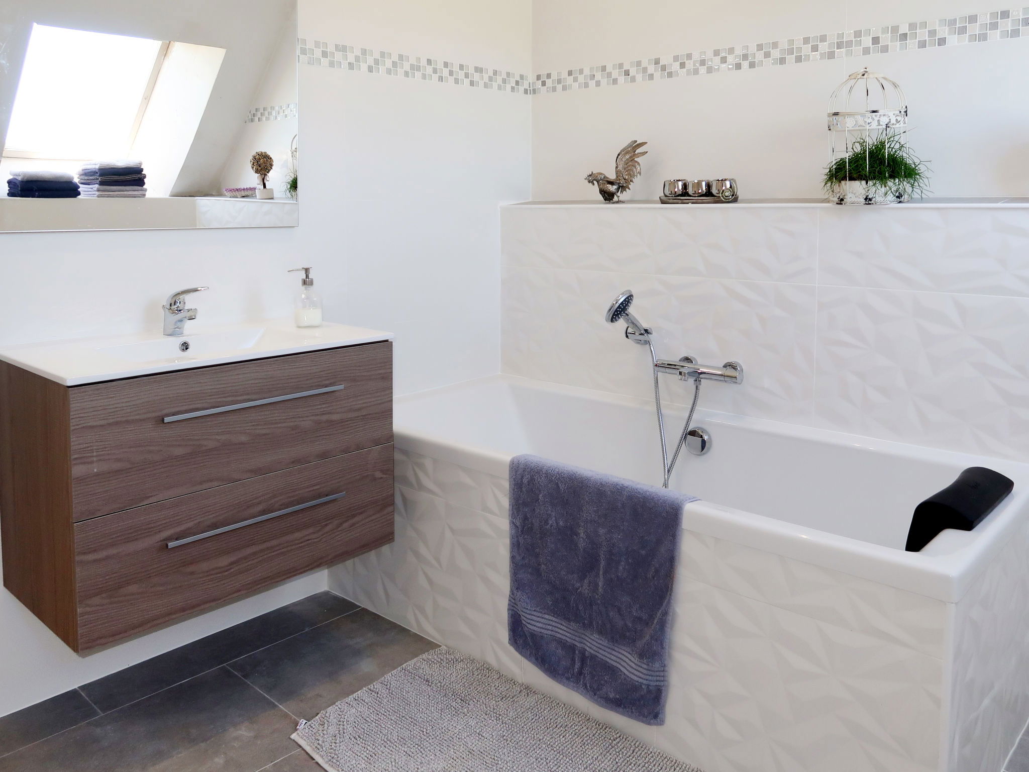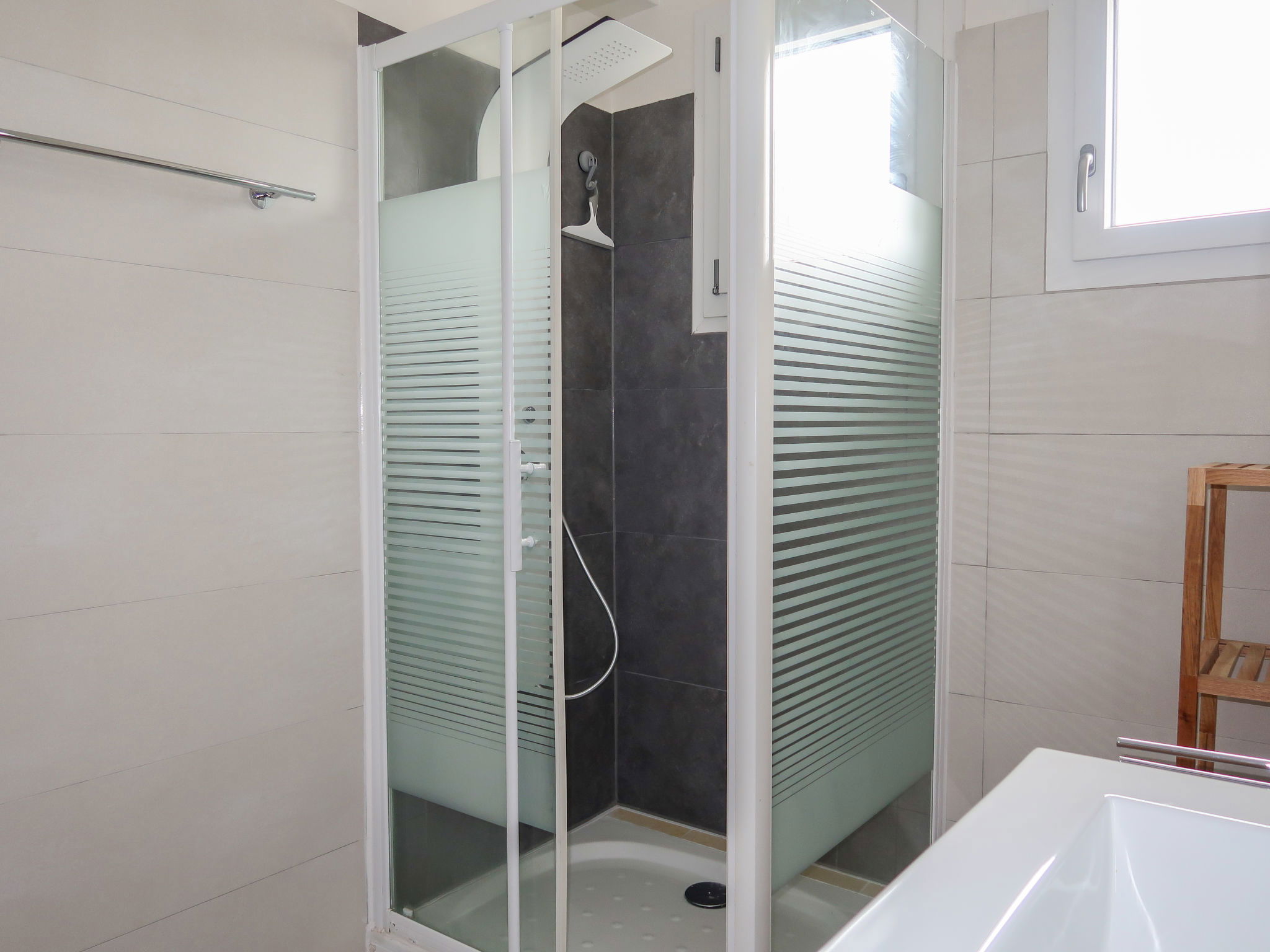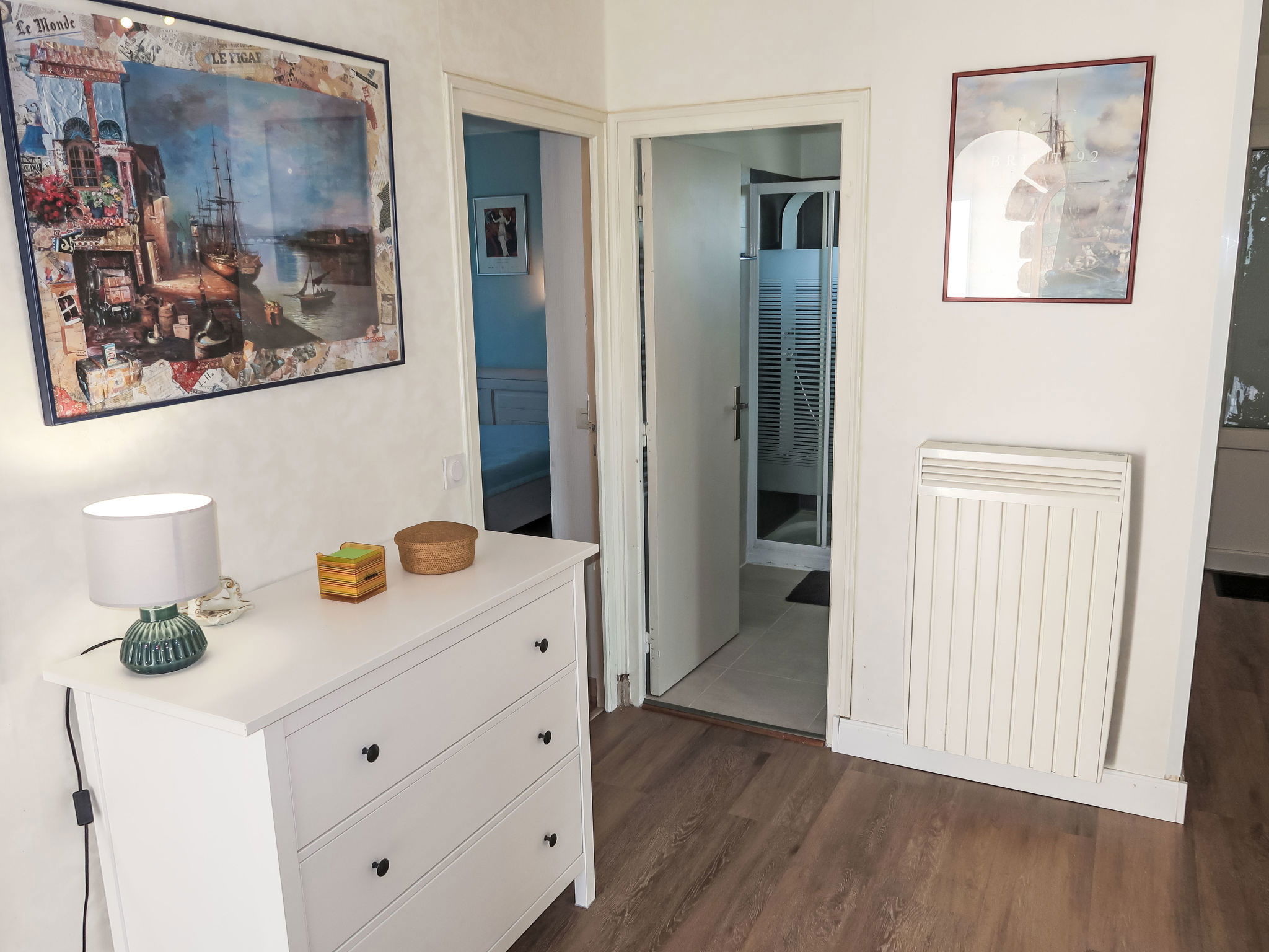 "Reve de Mer", 4-room house 140 m2 on 2 levels. Bright, tasteful furnishings: living/dining room with open-hearth fireplace, dining table and satellite TV. 1 room with 2 beds. Kitchen (oven, dishwasher, 3 ceramic glass hob hotplates, toaster, kettle, microwave, electric coffee machine) with small dining table. Shower, sep. WC. Upper floor: 1 large room with sloping ceilings with panoramic window with 1 french bed (160 cm, length 200 cm). 1 room with sloping ceilings with 1 french bed (140 cm, length 190 cm). Bath/WC. Electric heating. Parquet floors. Terrace, south-west facing position. Terrace furniture, barbecue (portable), deck chairs (2). Facilities: washing machine, children's high chair, baby cot. Internet (WiFi, free). Please note: non-smoking house. Maximum 1 pet/ dog allowed. Smoke alarm.