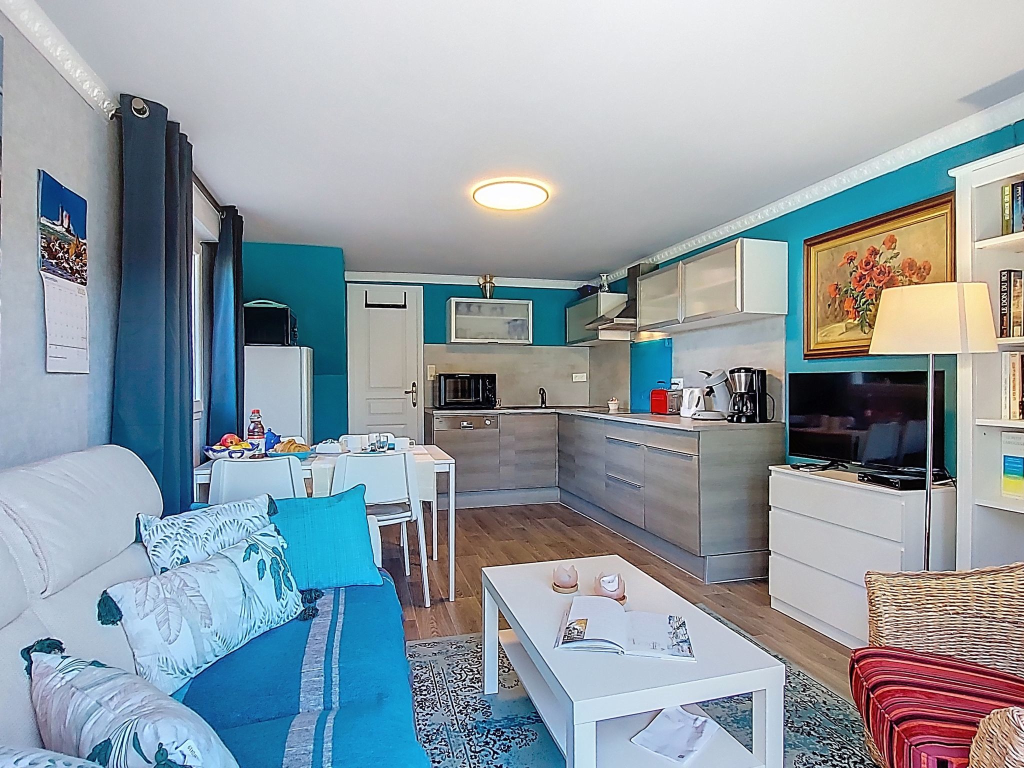 Beautiful 2-family house "Ty-Rozen". In the district of Moulin Mer 2.3 km from the centre of Locquirec, 5.5 km from the centre of Plestin-les-Grèves, 20 km from the centre of Morlaix, 800 m from the sea. Private: property 100 m2 (fenced), small garden with lawn, parking (for 2 cars) on the premises. Shop 2.5 km, grocery 1.5 km, supermarket 5.5 km, restaurant 2.5 km, bakery 2.5 km, bus stop "Moulin de la Rive" 800 m, sandy beach "Moulin de la Rive" 800 m. Golf course (18 hole) 32 km, surf school 800 m, sailing school 2.3 km, walking paths from the house 700 m. Nearby attractions: Morlaix 20 km, Lannion 20 km, Ploumanac'h, Côte sdu Granit Rose 35 km, Plomeur-Boudou 29 km, Huelgoat 47 km, Carnoet, Vallée des Saints 45 km. Please note: the owner lives on the same property.