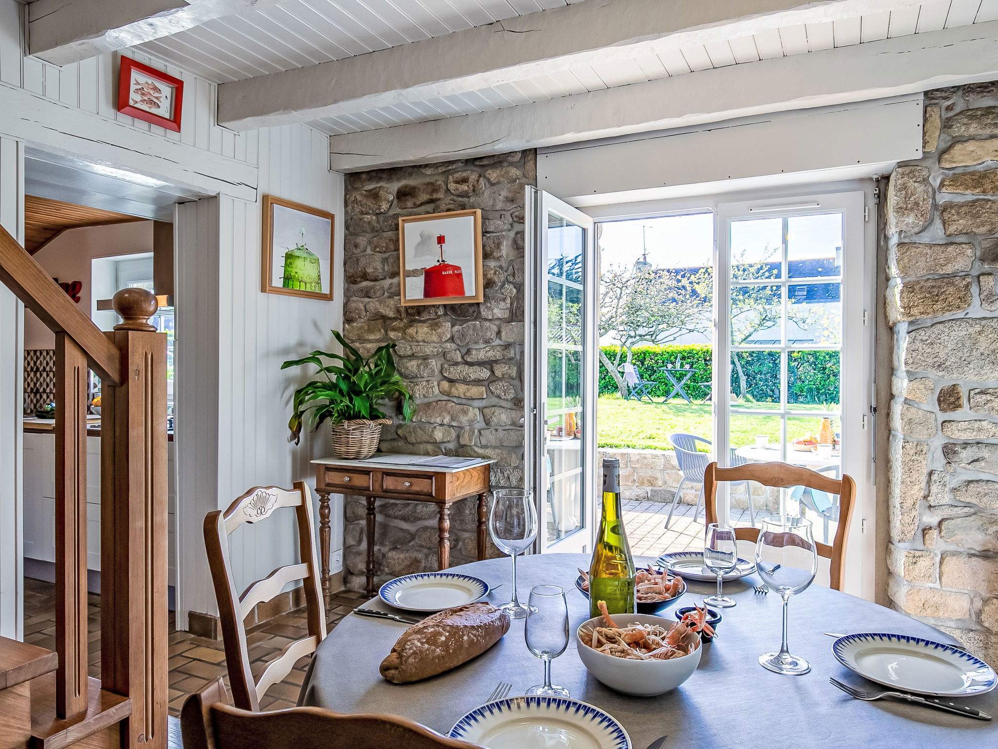 Single-family house "Bienvenue", semi-detached. In the district of Kerinvarc'h 5 km from the centre of Loctudy, 2.5 km from the centre of Plobannalec, 7 km from the centre of Pont l'Abbé, 1.8 km from the sea. Private: property 450 m2 (fenced) with wildlife garden and trees, parking on the premises. Supermarket 2.5 km, bus stop 3 km, sandy beach 1.8 km, indoor swimming pool 8 km. Marina 2.5 km, golf course (18 hole) 20 km. Nearby attractions: pointe de la Torche 14 km, Le Guilvinec 9 km, Lesconil 3 km, Phare d'Eckmühl 15 km.