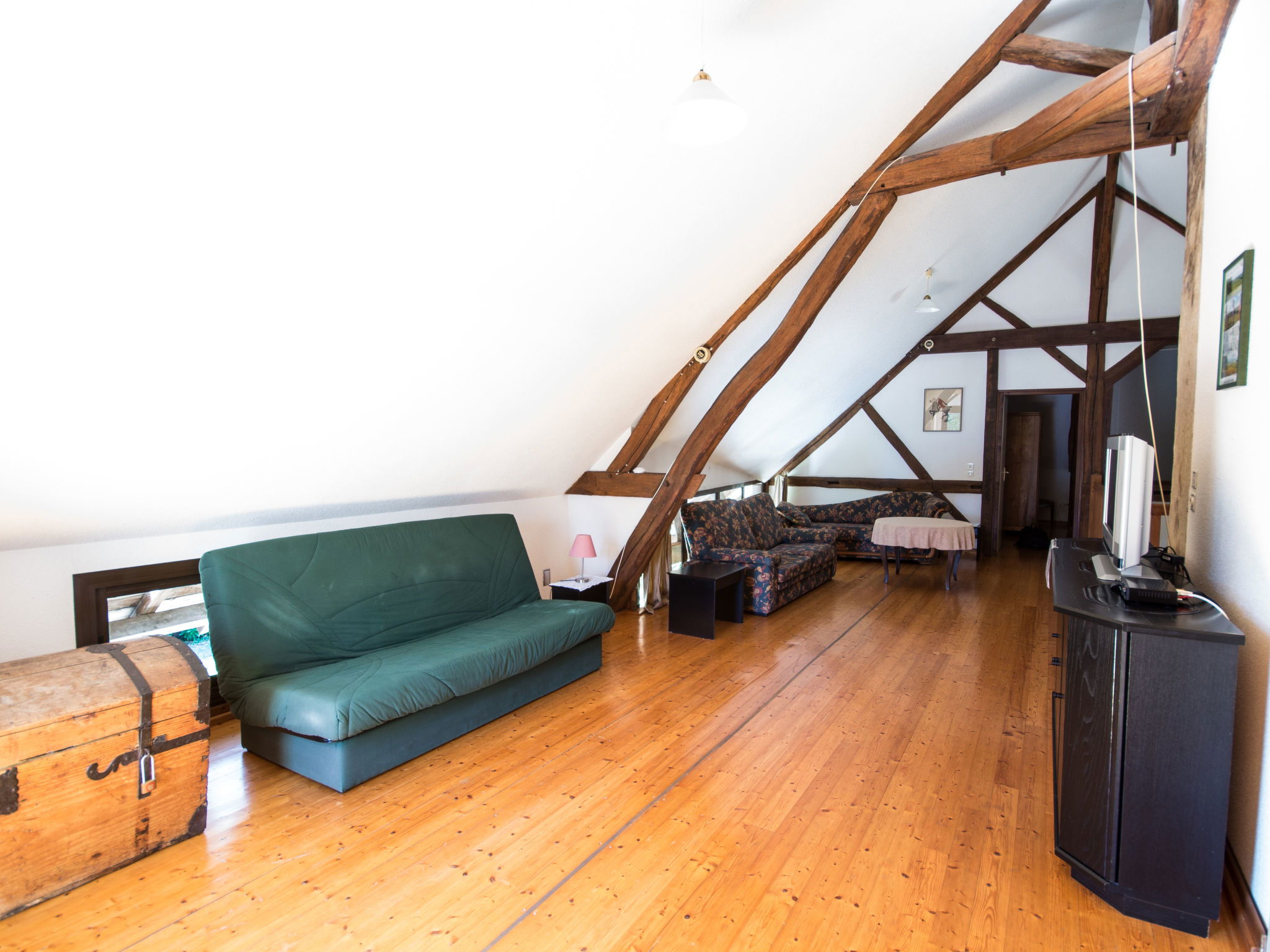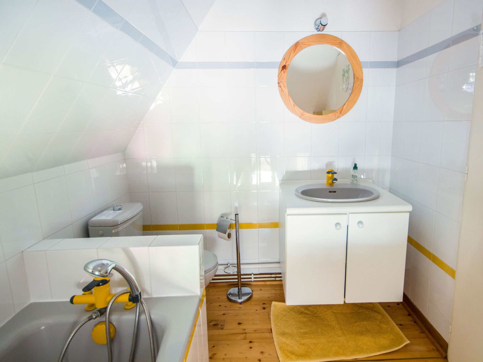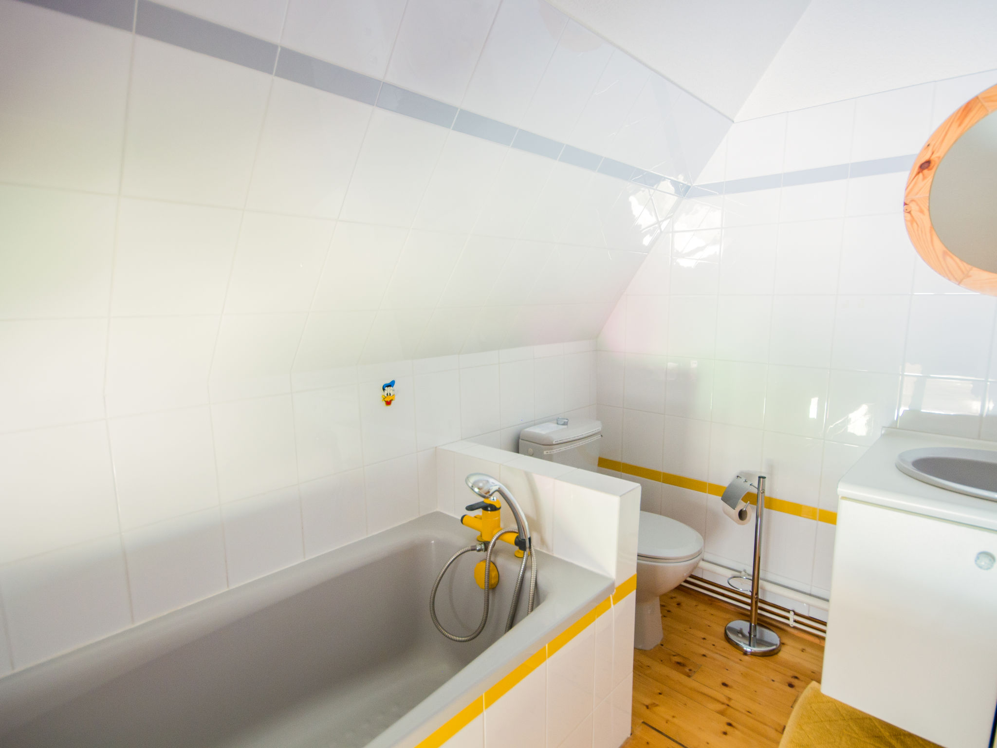 "Alexandre", 4-room house 180 m2 on 2 levels. Spacious, renovated, tasteful and cosy furnishings: large living/dining room with open-hearth fireplace, dining table, satellite TV and hi-fi system. Exit to the garden, to the terrace. 1 room with 1 double bed (200 cm, length 200 cm), shower/WC. Open kitchen (oven, dishwasher, 4 ceramic glass hob hotplates, toaster, kettle, microwave, freezer, electric coffee machine) with dining table. Sep. WC. Upper floor: open gallery with sloping ceilings with 1 double sofabed. Exit to the balcony. 1 room with sloping ceilings with 1 double bed (180 cm, length 190 cm), bath/WC. 1 room with sloping ceilings with 1 double bed (180 cm, length 195 cm), shower/WC, double hand-basin and with corner bath. Electric heating, underfloor heating. Wooden floors. 2 terraces. Terrace furniture, barbecue (portable), deck chairs (4), box-room. View of the garden. Facilities: washing machine, dryer, iron. Internet (WiFi, free). Please note: maximum 2 pets/ dogs allowed. Smoke alarm, fire extinguisher. When there are less than the maximum number of guests staying at the property, not all of the bedrooms will be available for use. Instead of an enclosed bedroom, some sleeping areas are located in an open-plan area (gallery, alcove, etc.).