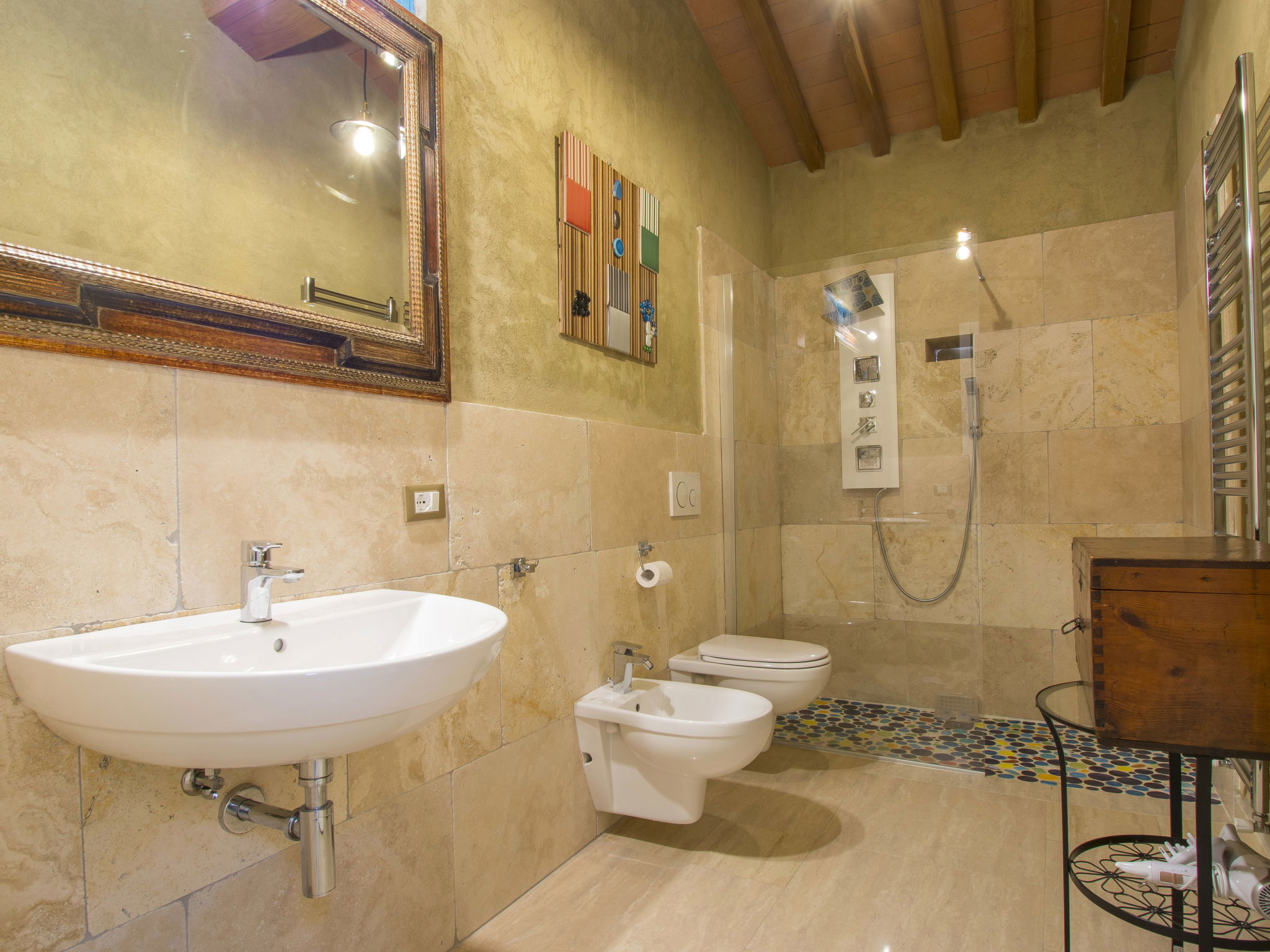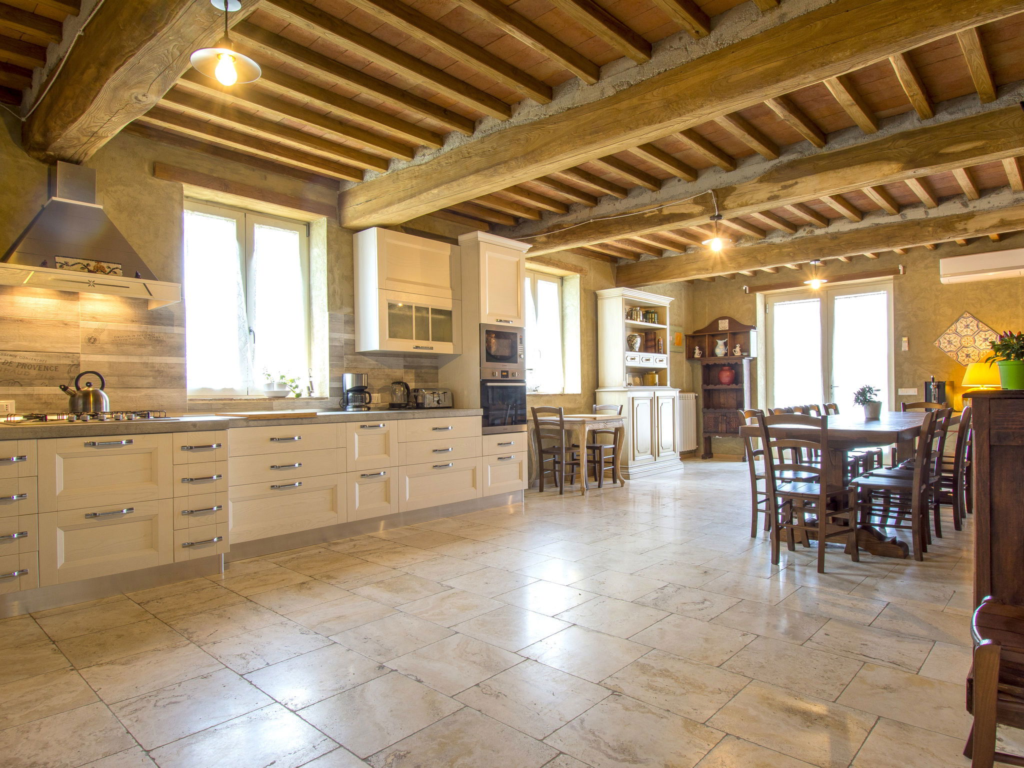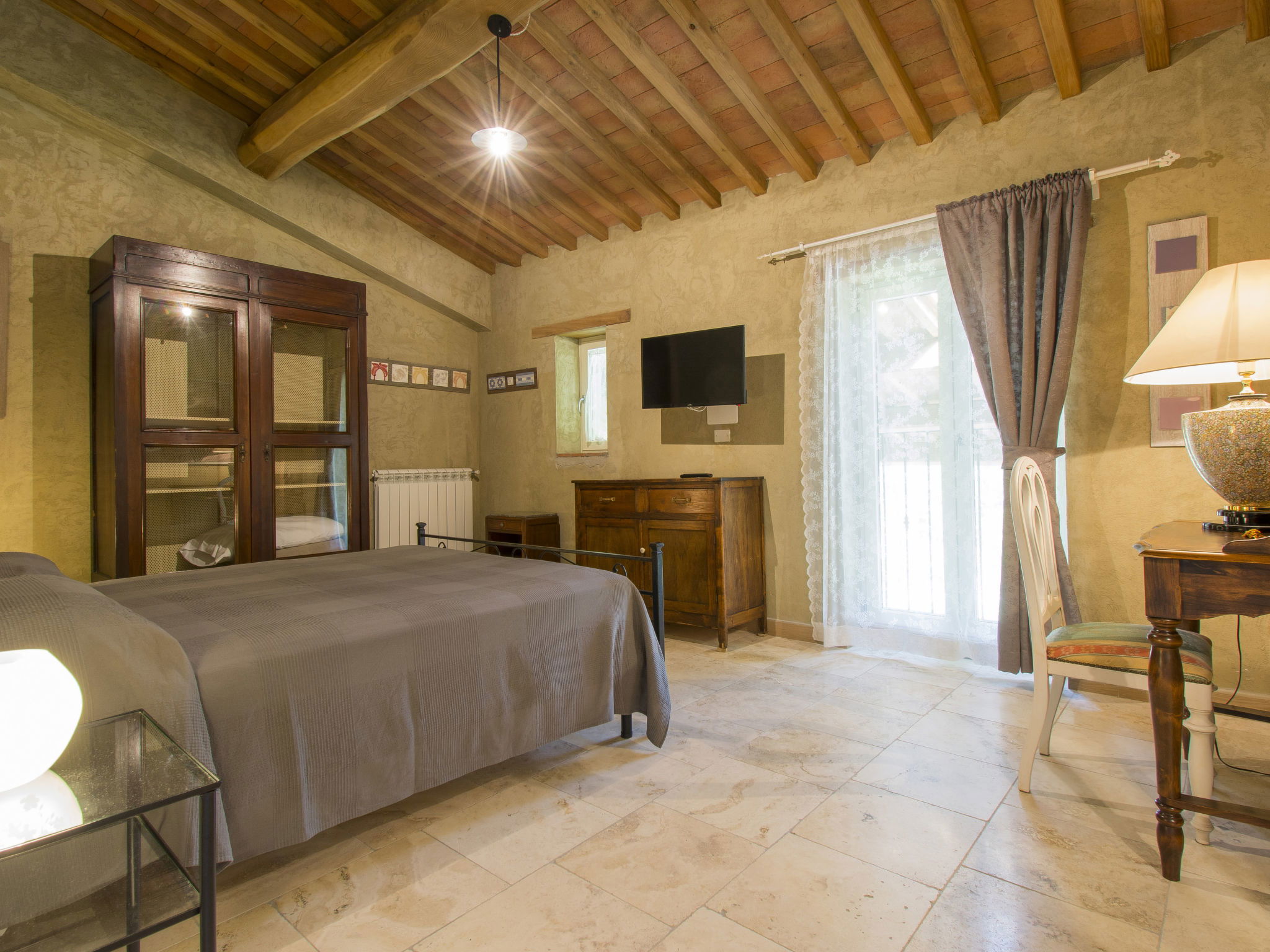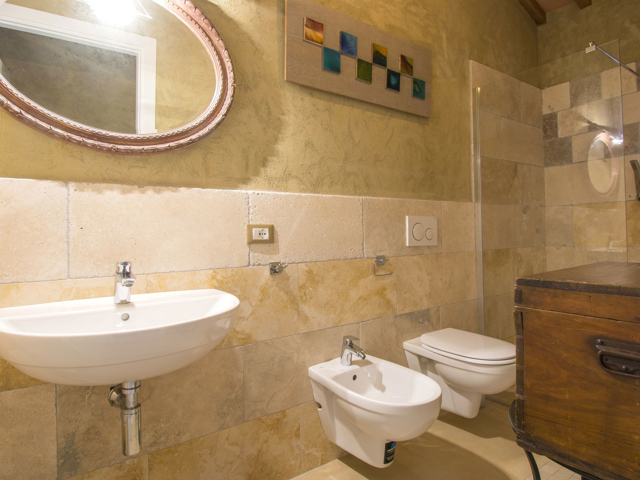 "Celeste", 8-room house 370 m2 on 2 levels. Antique and tasteful furnishings: living room with open-hearth fireplace, satellite TV, hi-fi system and air conditioning. Exit to the terrace. 1 double bedroom with shower/WC. Exit to the garden. Large kitchen (oven, dishwasher, 5 gas rings, toaster, microwave, freezer, electric coffee machine) with open-hearth fireplace, dining table and air conditioning. Exit to the terrace. Shower/WC. Upper floor: 5 double bedrooms, each room with shower/WC. 1 room with 2 beds and shower/WC. Wood heating (extra). Heating available only from 01.11. to 15.04. Natural stone floors. Terrace 160 m2, terrace 70 m2, roofed. Terrace furniture, barbecue, deck chairs (10), box-room. Beautiful panoramic view of the countryside. Facilities: washing machine, safe, iron, mosquito net, children's high chair, baby cot for up to 2 year olds. Internet (WiFi, free). Parking (10 cars) at the house. Please note: non-smokers only. Maximum 2 pets/ dogs allowed. Smoke alarm, fire extinguisher. IT046007C274VYGC9M