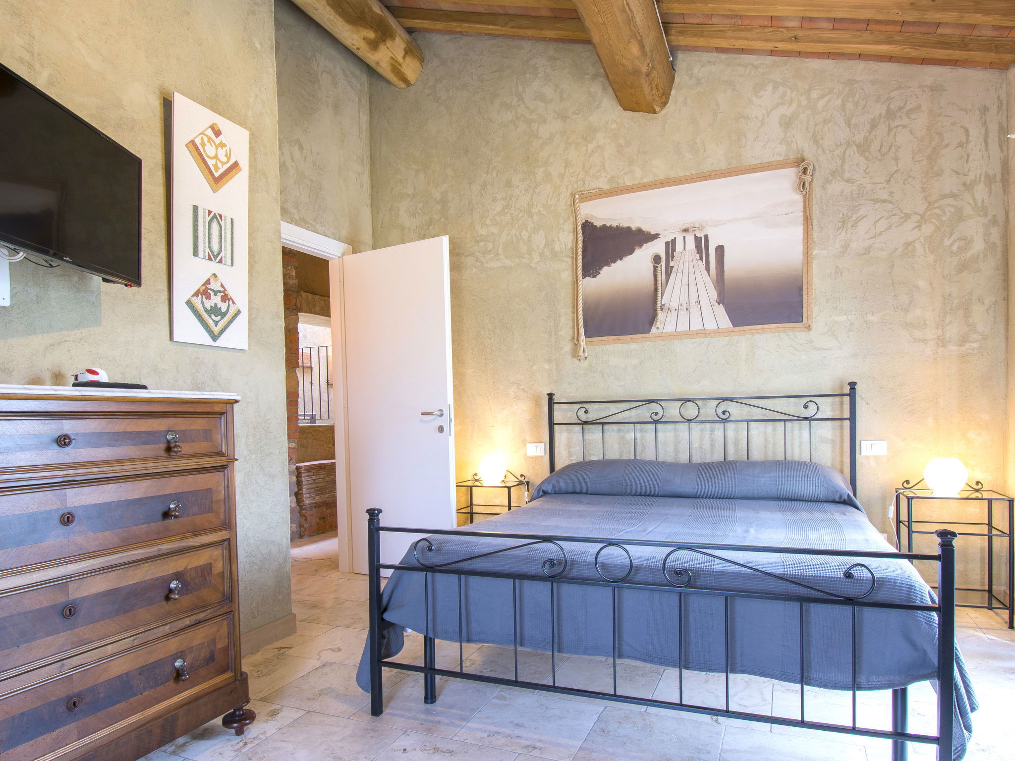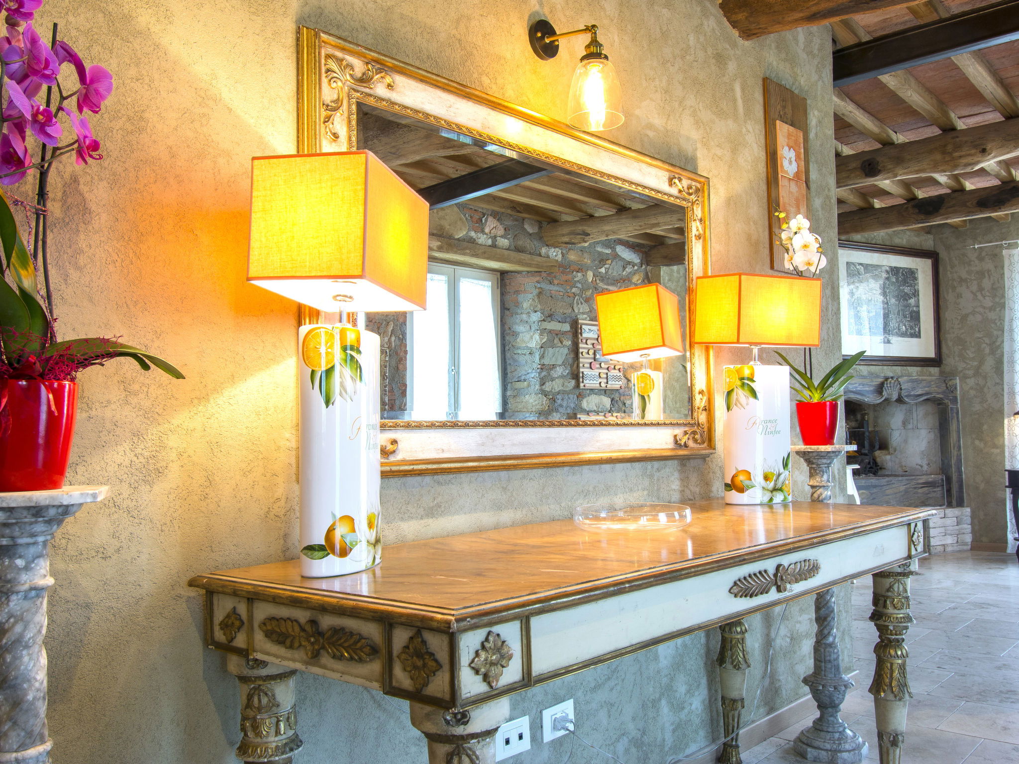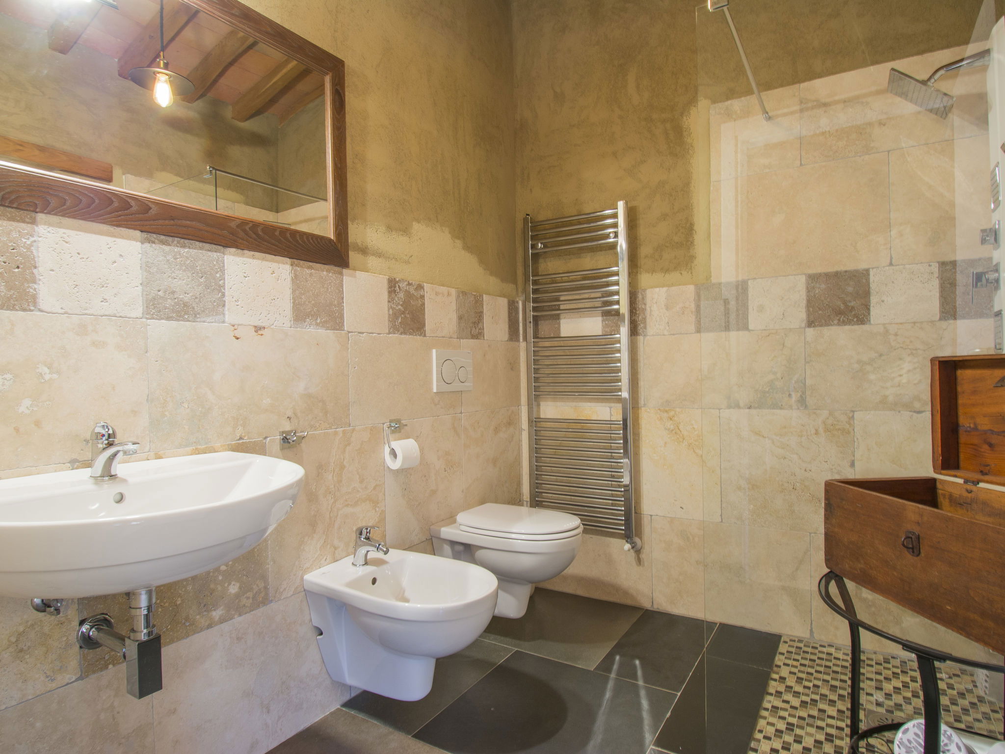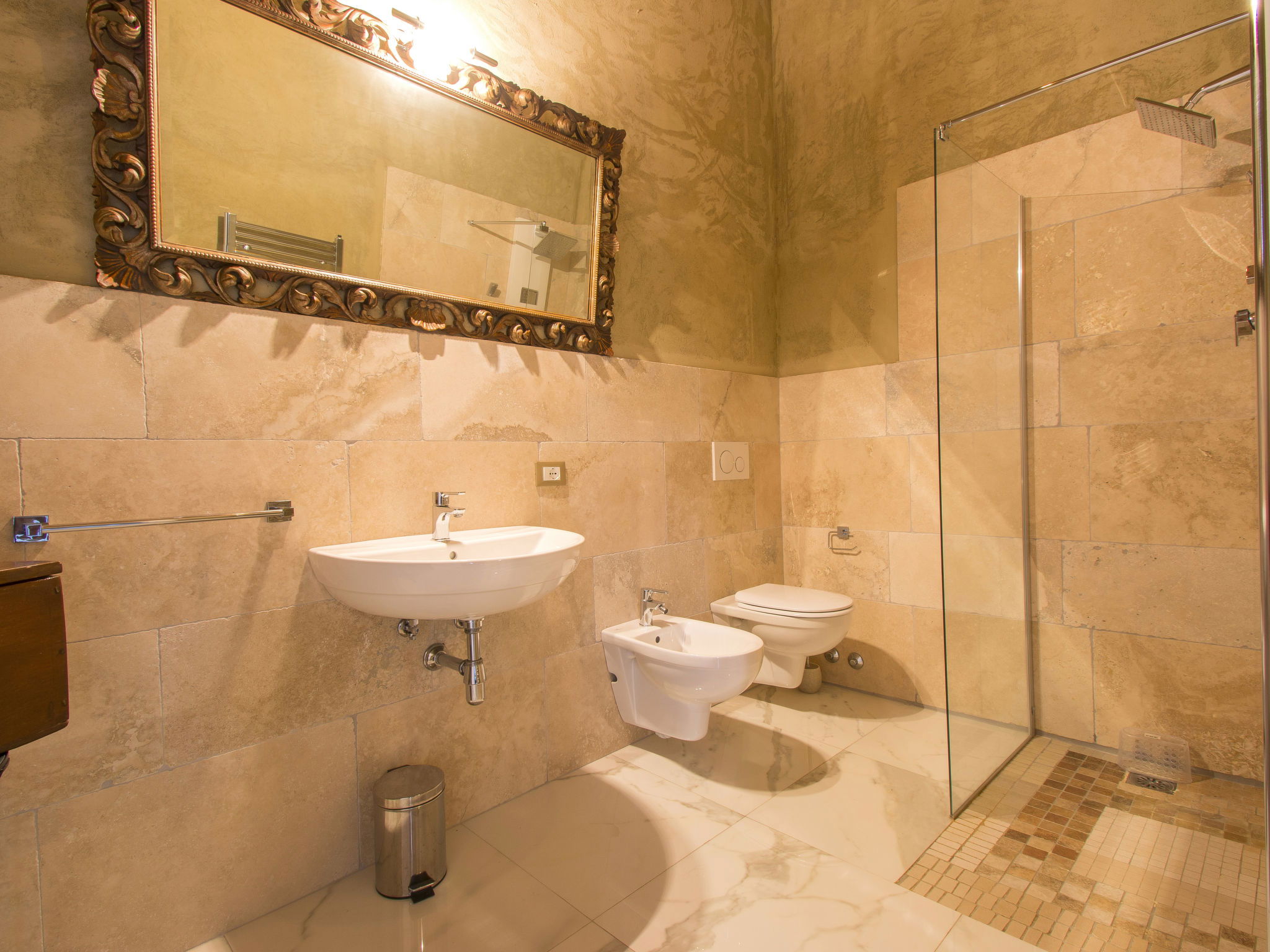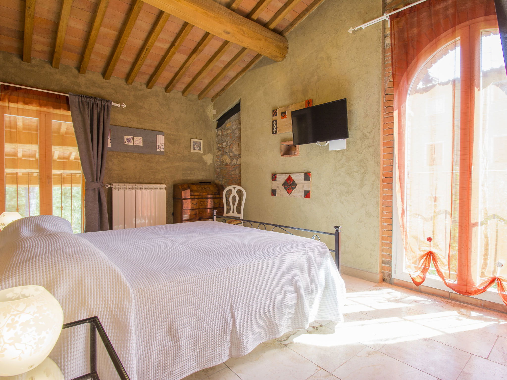 "Celeste", 8-room house 370 m2 on 2 levels. Antique and tasteful furnishings: living room with open-hearth fireplace, satellite TV, hi-fi system and air conditioning. Exit to the terrace. 1 double bedroom with shower/WC. Exit to the garden. Large kitchen (oven, dishwasher, 5 gas rings, toaster, microwave, freezer, electric coffee machine) with open-hearth fireplace, dining table and air conditioning. Exit to the terrace. Shower/WC. Upper floor: 5 double bedrooms, each room with shower/WC. 1 room with 2 beds and shower/WC. Wood heating (extra). Heating available only from 01.11. to 15.04. Natural stone floors. Terrace 160 m2, terrace 70 m2, roofed. Terrace furniture, barbecue, deck chairs (10), box-room. Beautiful panoramic view of the countryside. Facilities: washing machine, safe, iron, mosquito net, children's high chair, baby cot for up to 2 year olds. Internet (WiFi, free). Parking (10 cars) at the house. Please note: non-smokers only. Maximum 2 pets/ dogs allowed. Smoke alarm, fire extinguisher. IT046007C274VYGC9M