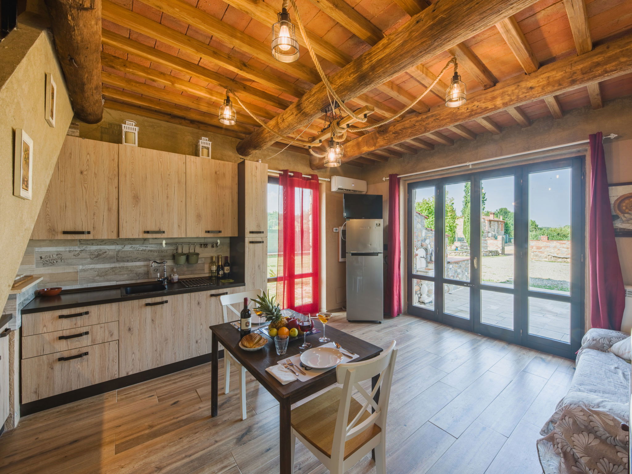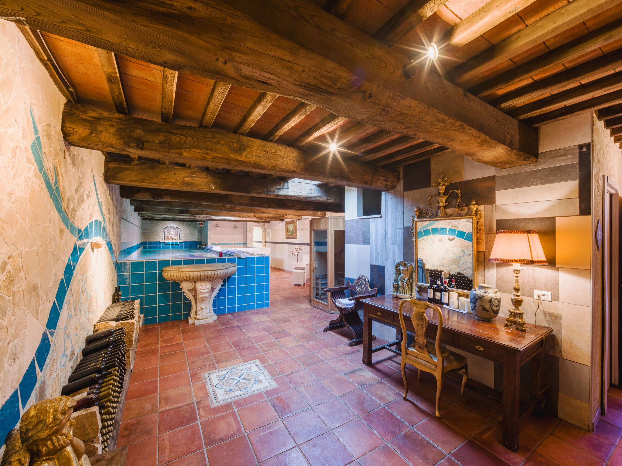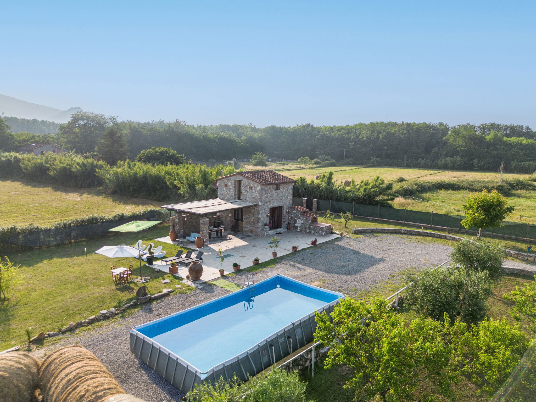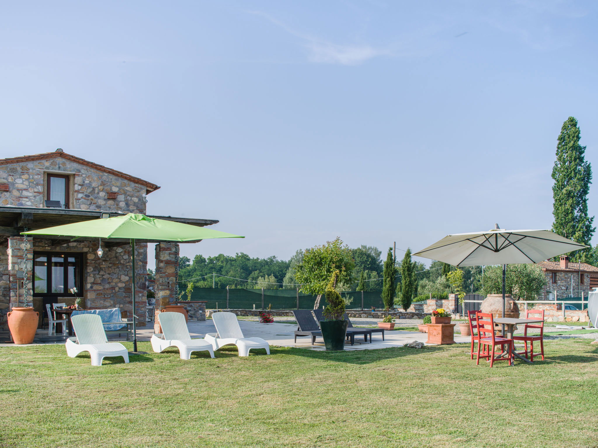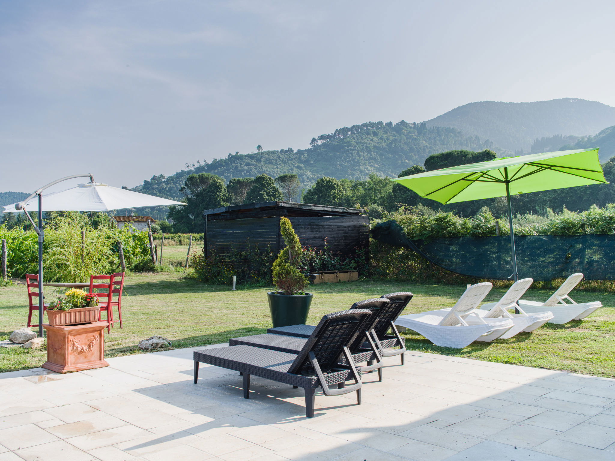 Rustic house "I Sei Filari", built in 2022. 1.5 km from the centre of Castelvecchio di Compito, 17 km from the centre of Lucca, 28 km from the centre of Pisa, 40 km from the sea. Private: property 1'000 m2 (fenced), garden 500 m2 (fenced) with wildlife garden, meadow, swimming pool (above ground) (6 x 8 m, depth 110 - 110 cm, seasonal availability: 04.May. - 04.Oct.). Outdoor shower, terrace (150 m2), garden furniture. In the house: sauna (extra). Hot tub (extra). Relaxation room, spa area (extra). Cook on request (extra). 950 m long motor access (via unmade road). Parking on the premises. Shop 1.4 km, supermarket 6 km, bus stop 800 m, sandy beach 40 km. Nearby attractions: Collodi (Pinocchio Park) 23 km, Montecatini Terme 27 km, San Giuliano Terme 23 km, Firenze 70 km, Viareggio 41 km, Riomaggiore (5 Terre) 101 km. Well-known lakes can easily be reached: Lago di Massaciuccoli 41 km, Torre del Lago 43 km. Hiking paths: Levigliani Antro del Corchia Park 67 km. Please note: car recommended. In the basement with separate external entrance via a staircase large SPA of 200 sqm (extra charge) with swimming pool with counter-current swimming with hydromassage, sauna and relaxation room with chromotherapy and fireplace. Passage from above in total privacy bottles and dinners (extra charge).