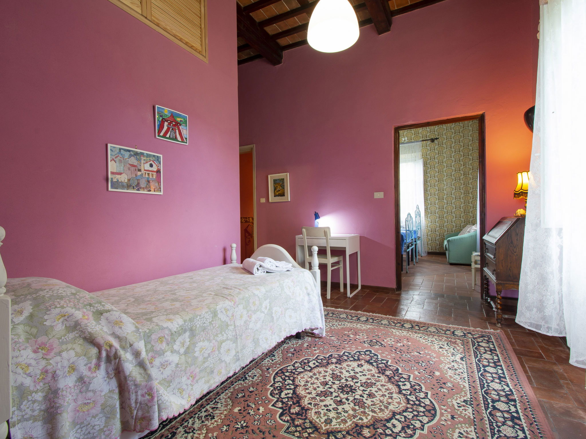 Cosy, comfortable country house "La Pergola", detached, built in 1888, renovated in 2021, surrounded by trees and fields. In the district of San Macario in Monte, outside the resort, 6 km from the centre of Lucca. Private: natural garden 1'000 m2, beautiful garden to relax, pond, swimming pool (above ground) with privacy (7 x 4 m, depth 120 - 120 cm, seasonal availability: 01.May. - 30.Sep.). Garden furniture, barbecue, children's playground (slide, swing). In the house: WiFi, central heating system, washing machine, heating available only from 15.Nov. - 15.Apr.. Motor access (300 m via unmade road). Parking (for 3 cars). Grocery 1 km, supermarket 3 km, restaurant 1 km, bus stop 450 m. Nearby attractions: Lucca 6 km, Pisa 25 km, Viareggio 20 km, Firenze 85 km. Please note: part of the house is closed and unoccupied. Owner lives in separate semi-detached house. The owner has a dog.
