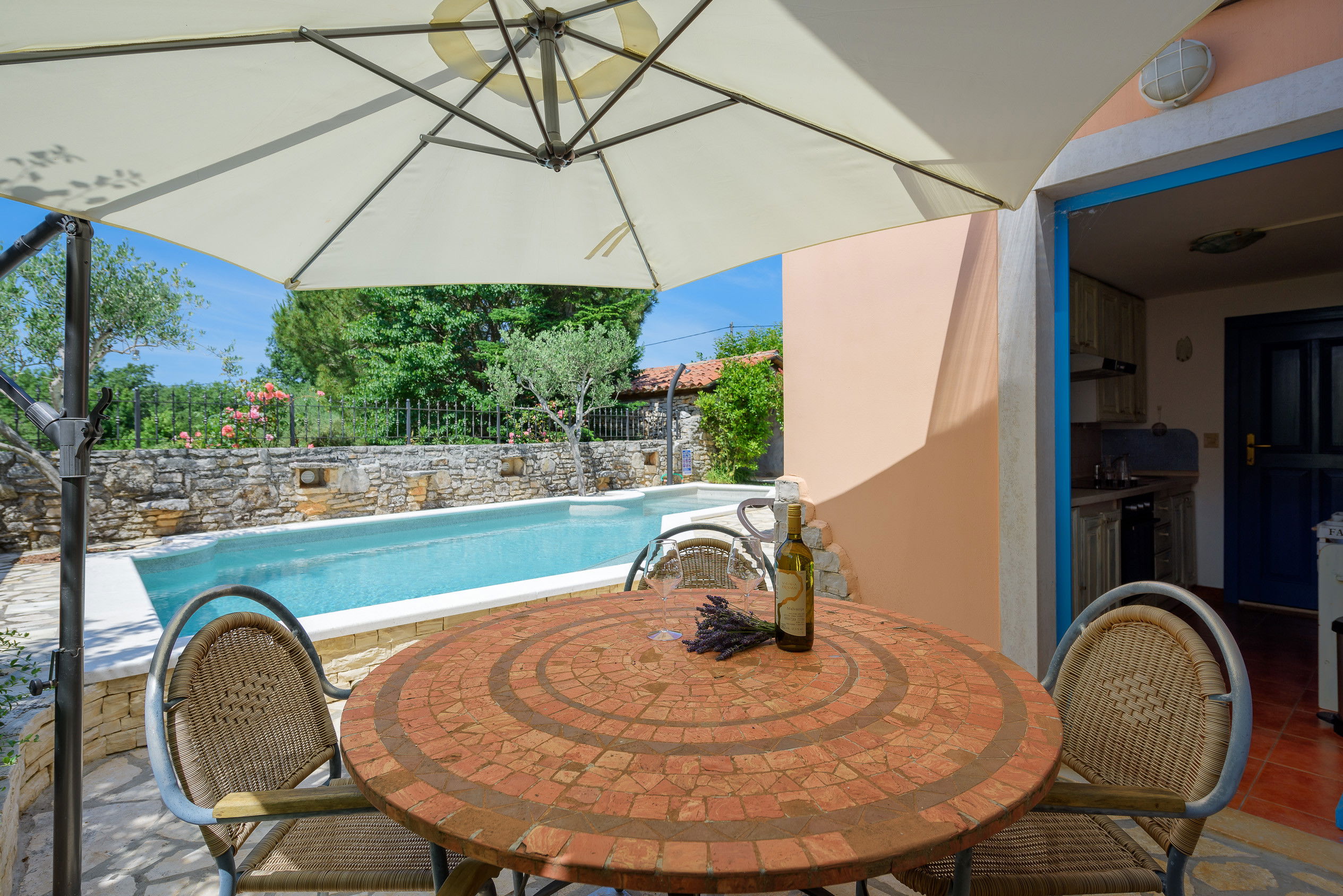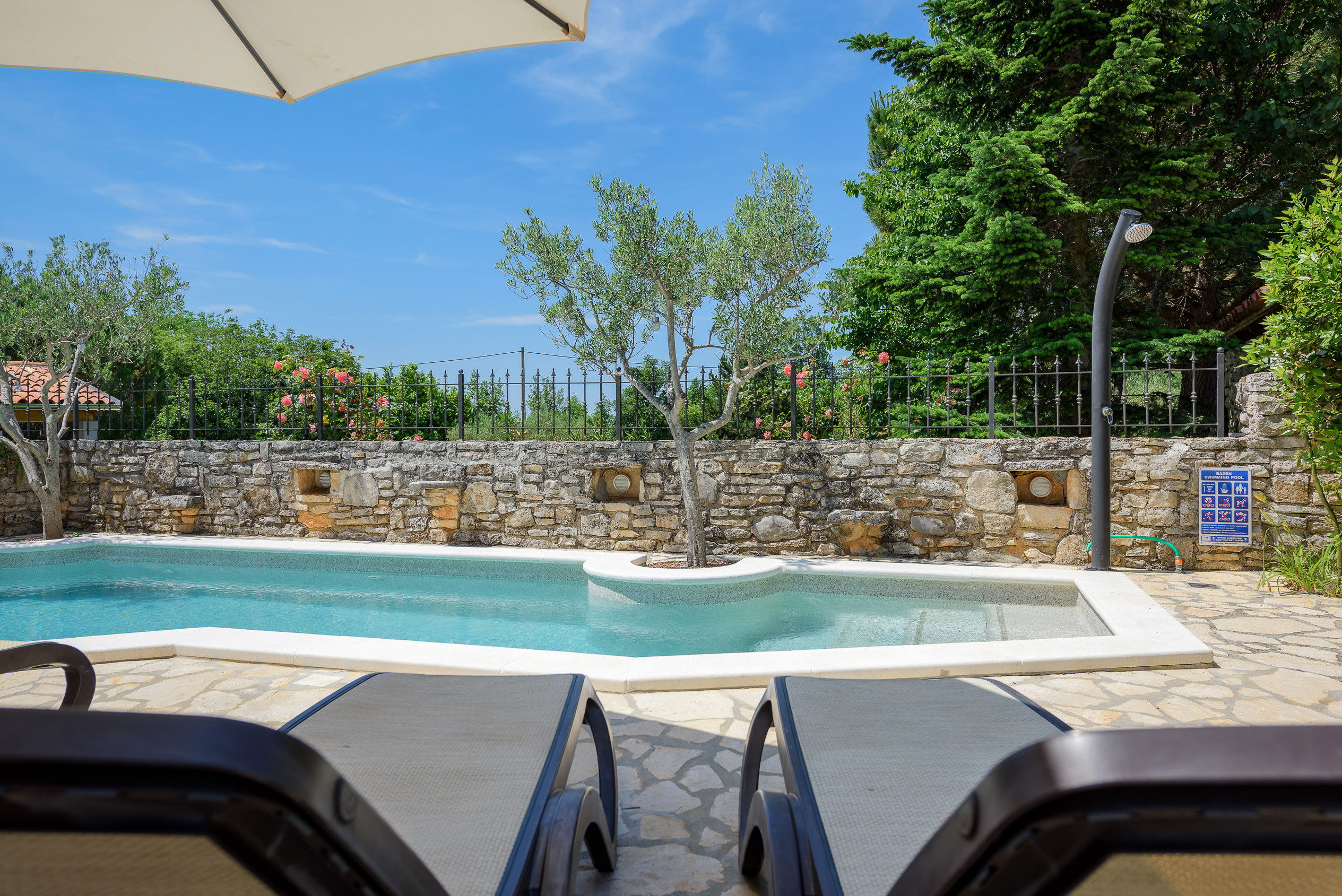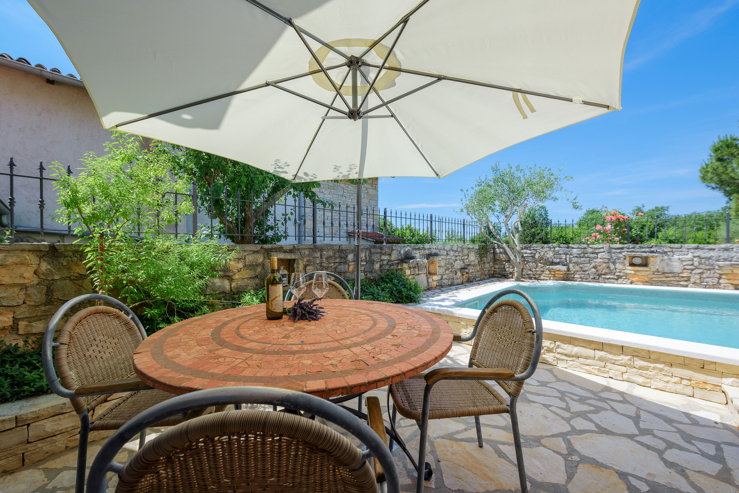 The house offers every comfort and convinces with traditional charm. The main feature of the house is a large covered terrace with BBQ. It is like a an open living room. The private a pool at the back of the house. There is an open garage.