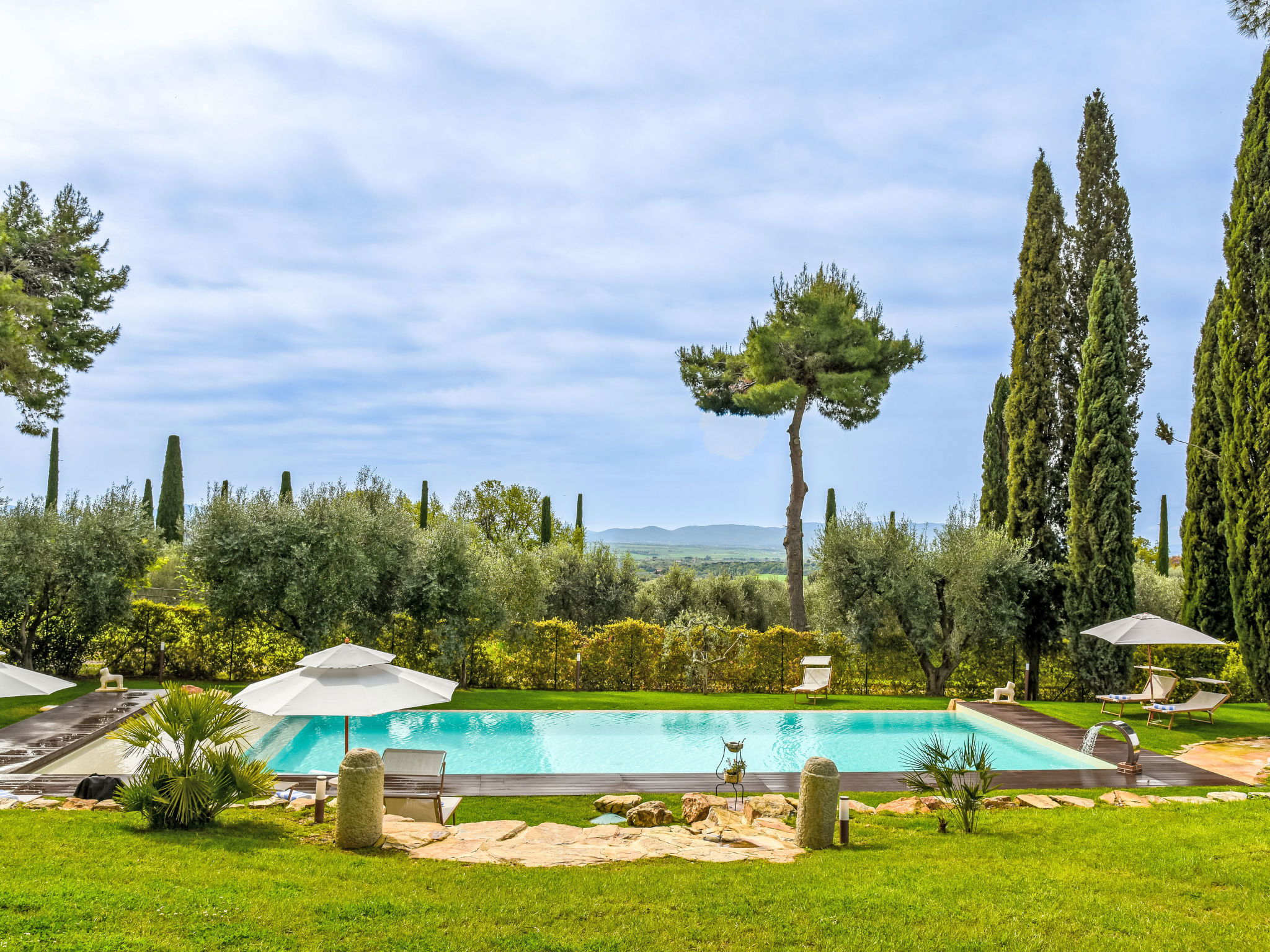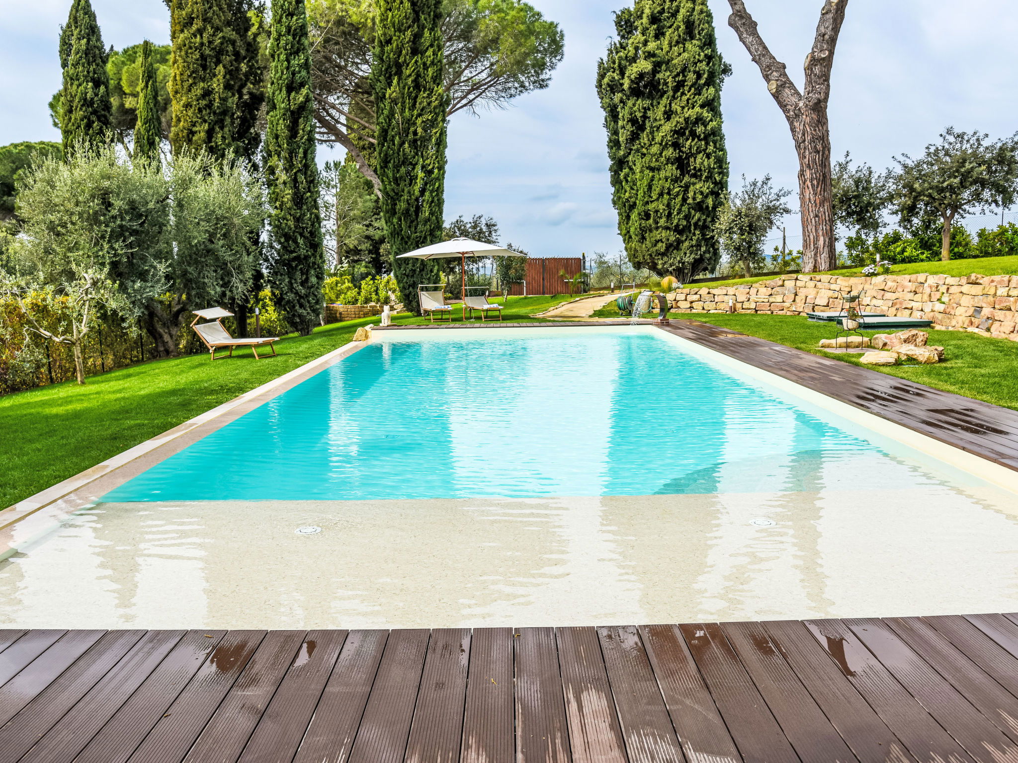 Beautiful, comfortable villa "Caduceo", renovated in 2024, surrounded by trees and meadows. 3.5 km from the centre of Magliano in Toscana, in a quiet position, 19 km from the sea, 19 km from the beach, in the countryside. Private: beautiful, well-kept garden (fenced), swimming pool (16 x 6 m, depth 30 - 150 cm, seasonal availability: 01.Apr. - 30.Oct.) with internal staircase. Outdoor shower, terrace, garden furniture, barbecue, children's playground, pool maintenance by the owner/gardener. In the house: fitness room, washing machine. 700 m long motor access (via unmade road). Roofed, parking at the house. E-charging station. Shop 1.5 km, grocery 1.5 km, supermarket 15 km, restaurant 1.5 km, bus stop 2.2 km, railway station "Albinia" 17 km, sandy beach "Spiaggia dell'Osa" 19 km, thermal baths "Saturnia" 40 km. Nearby attractions: Talamone 20 km, Scansano 20 km, Porto Santo Stefano / Monte Argentario 30 km, Grosseto 28 km, Pitigliano/Sorano/Sovana 50 km. Hiking paths: Parco Naturale della Maremma 30 km. Please note: car recommended.