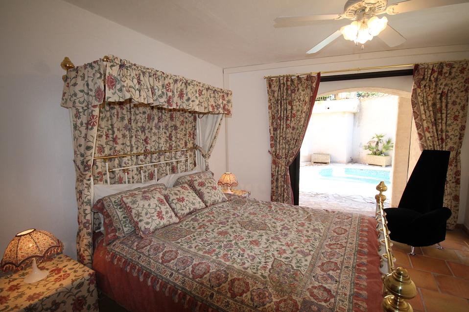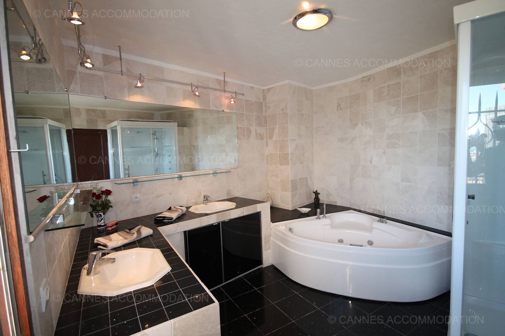 Lower floor: 3-room flat with air conditioned living room. Open fitted kitchen. 1 Bedroom with 1 double bed (160), exit to swimming pool. Shower room/WC, Hammam. 1 Bedroom with 1 double bed (180). Bathroom. Separate WC.