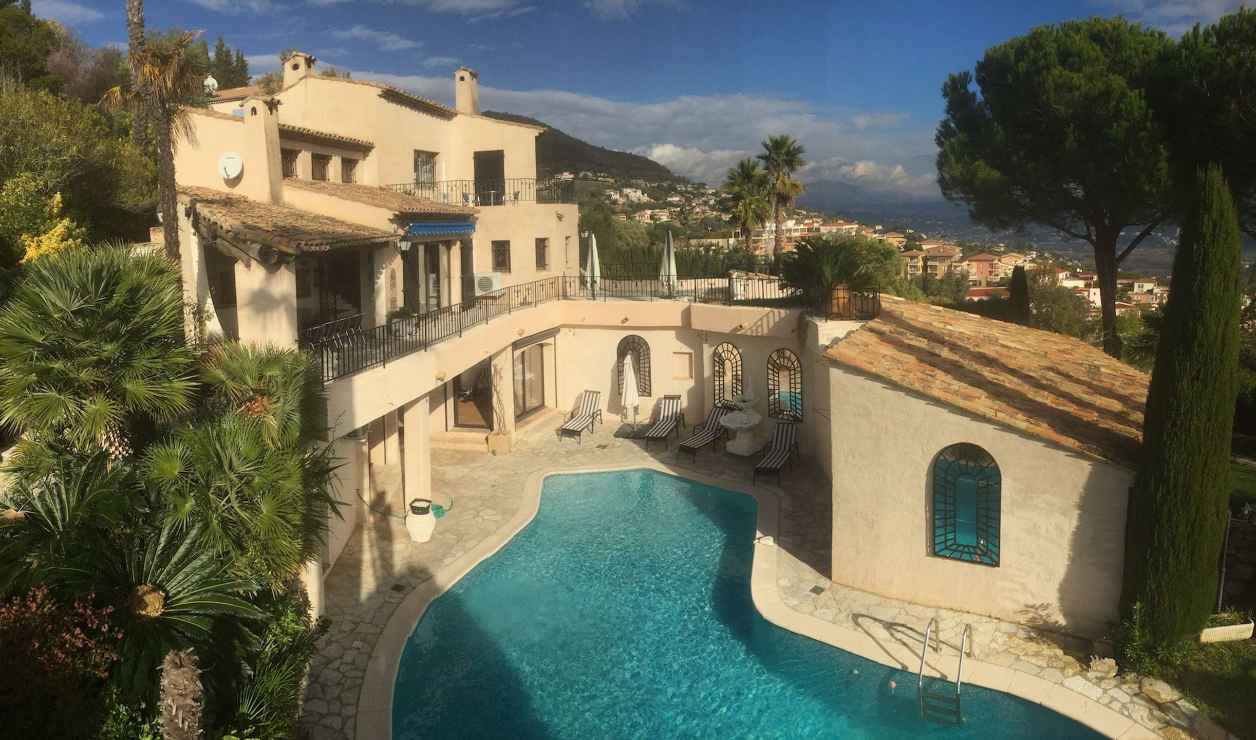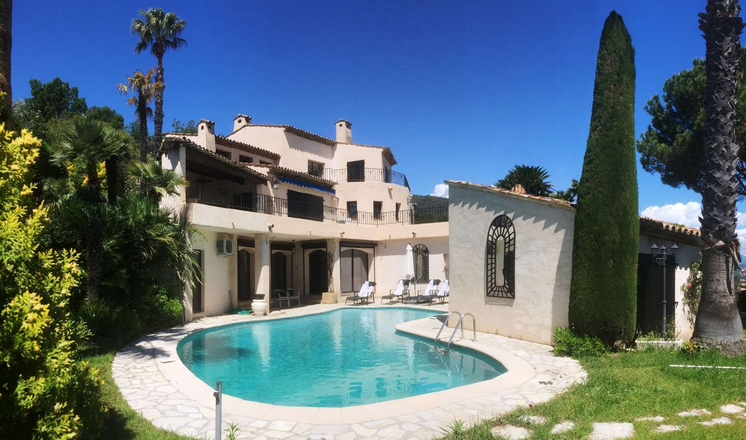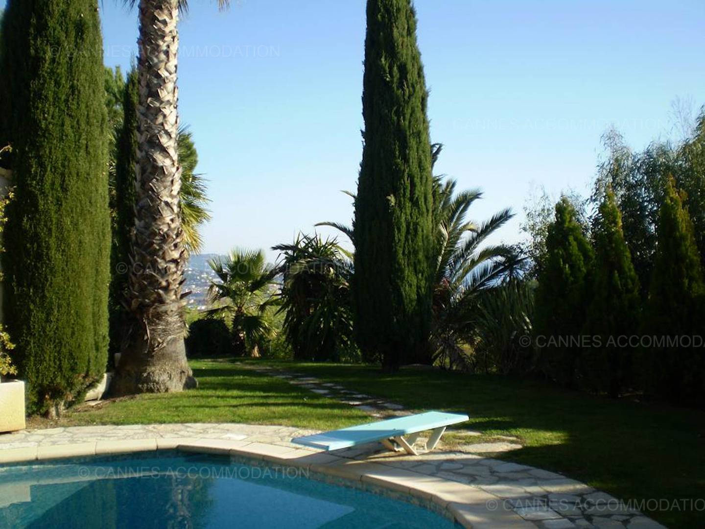 On the heights of Mandelieu, with magnificent sea views, beautiful villa set in 3000m² of enclosed grounds in the heart of a residential area. Private swimming pool (12m x 6m, Depth 60/220 - Alarms). Terraces with garden furniture and deckchairs. BBQ. Parking for 6 cars. All shops 2 km. Sea and beach 4 km. Cannes 6 km.