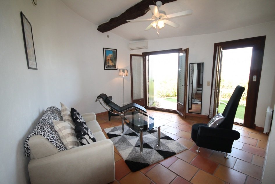 2-room flat with: air conditioned living room and Fitted kitchen, 1 bedroom with 1 double bed (160), exit to garden. Shower room/WC.
