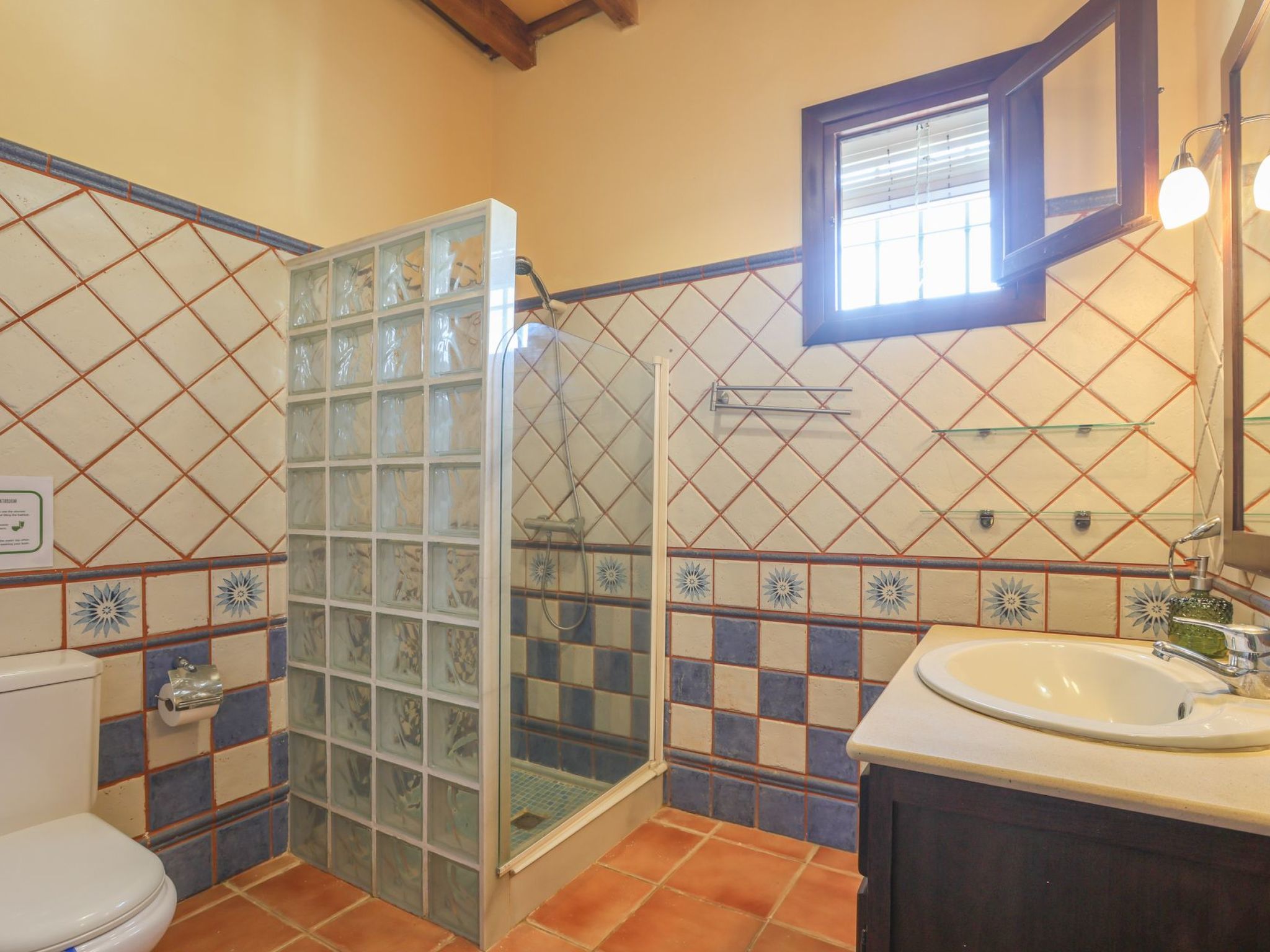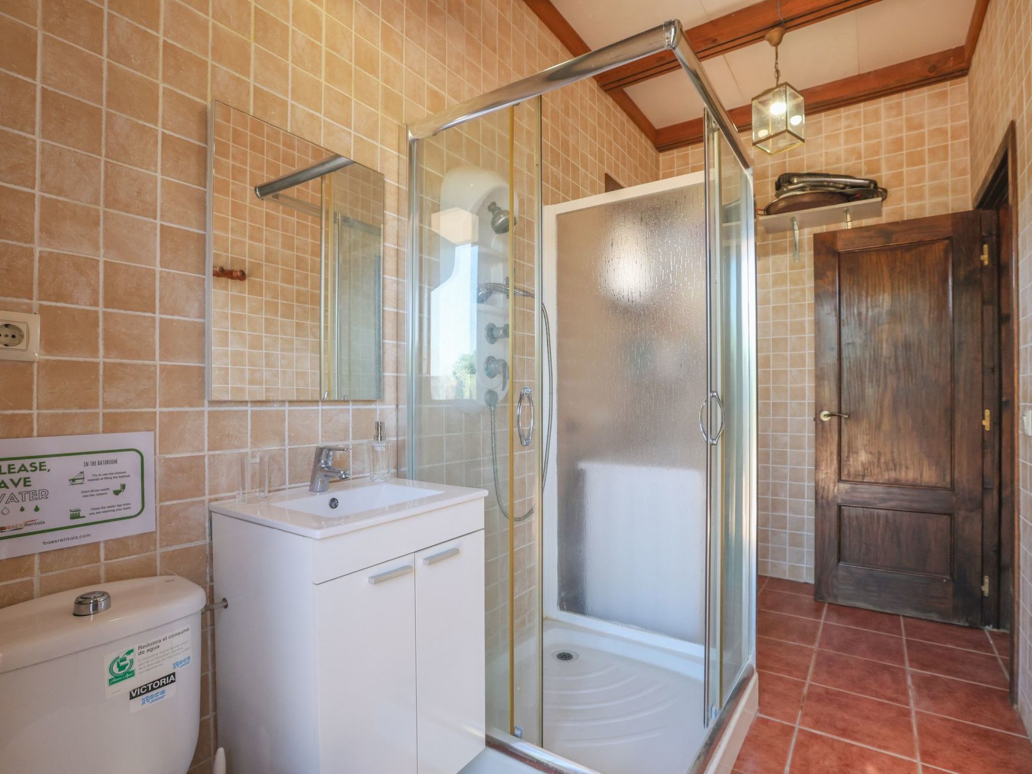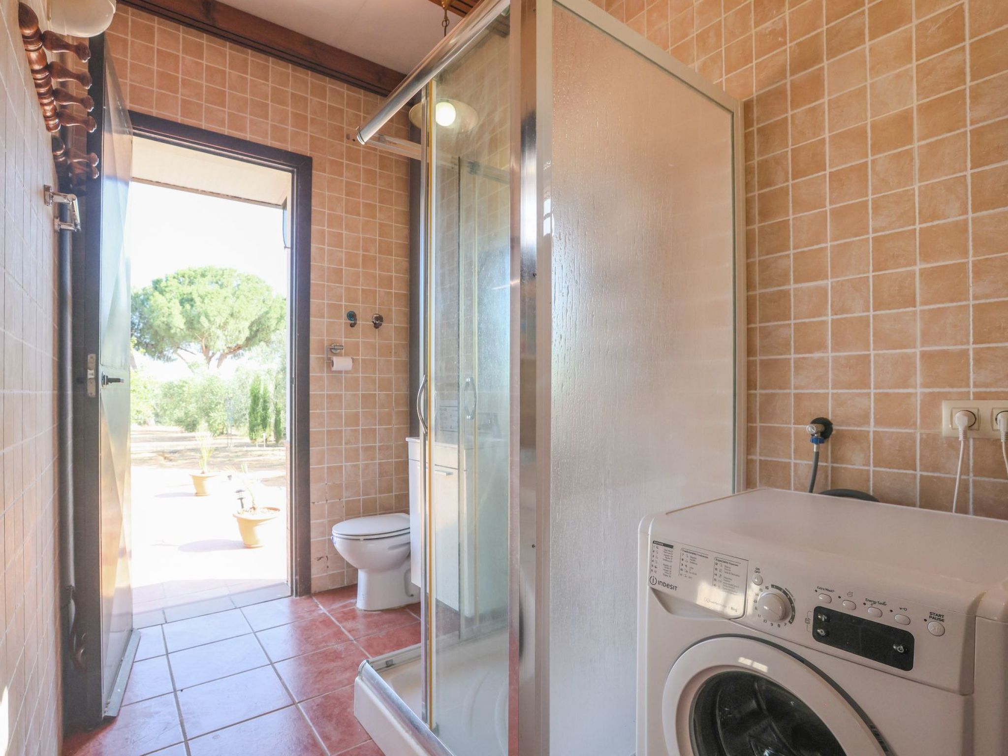 1 bathroom with shower and access to the garden.