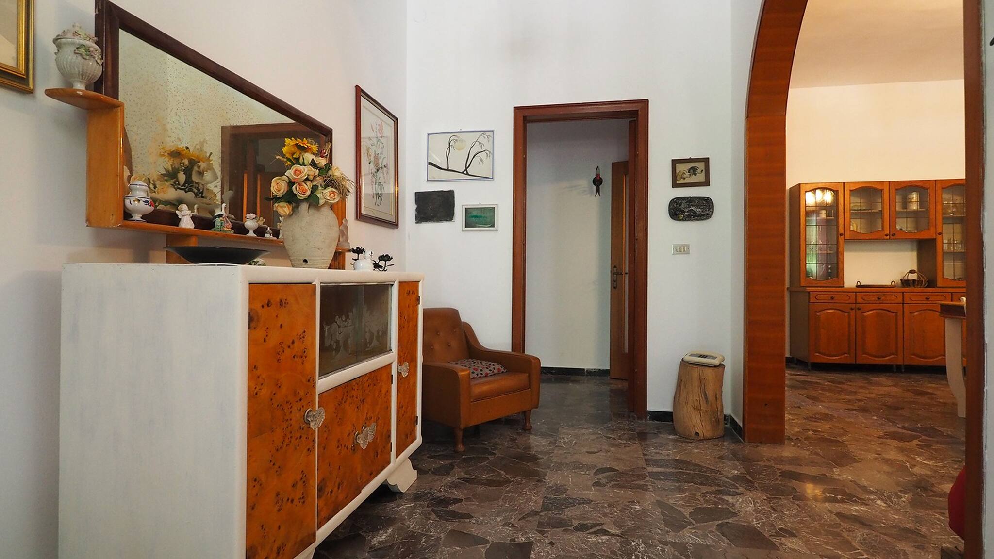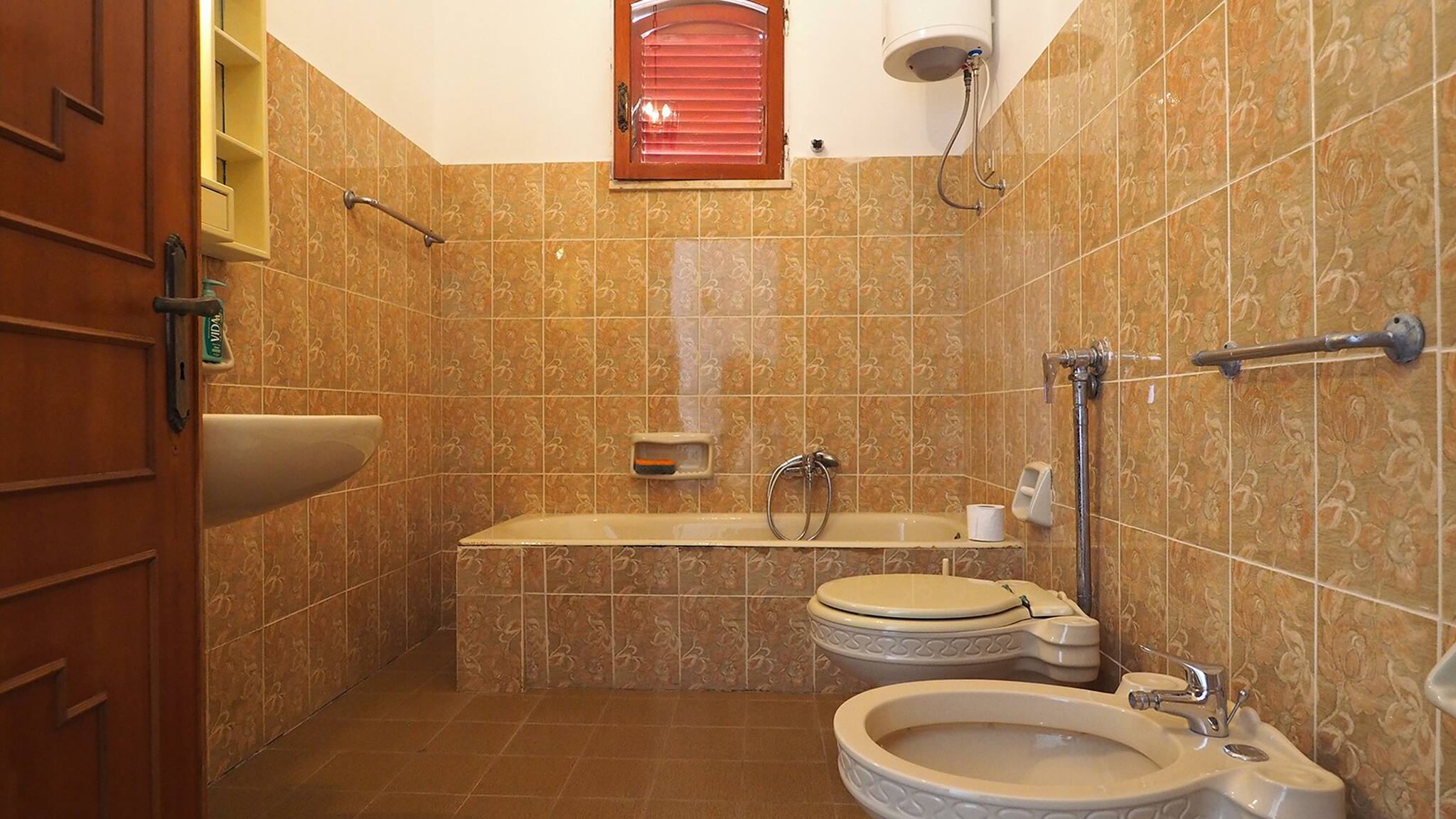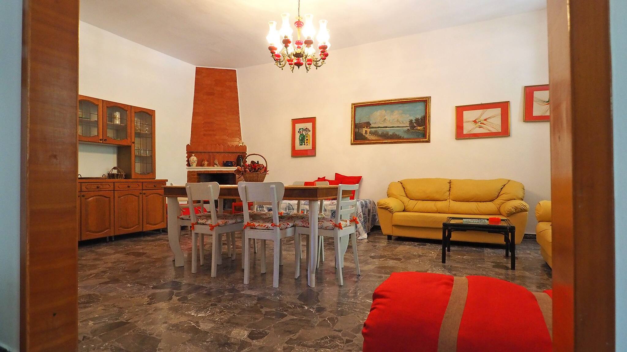 Internally, there is an entrance that opens onto a very large living room with a dining table, TV, sofas, and the possibility of adding up to three beds; then the kitchen with another dining table, two double bedrooms and one double room; two bathrooms, one with a shower and one with a shower and bathtub.