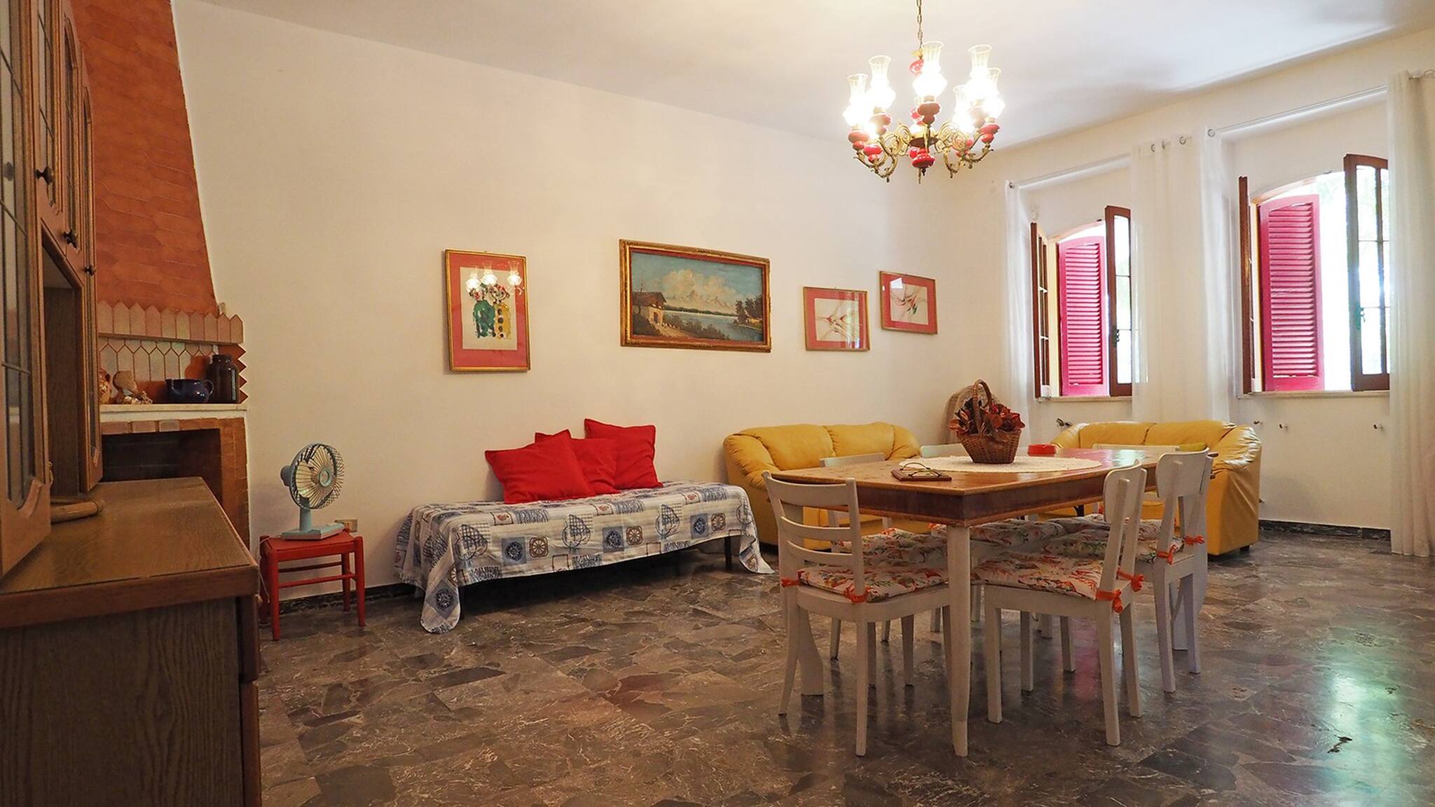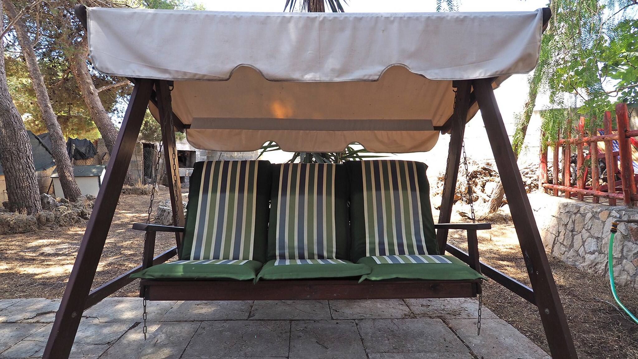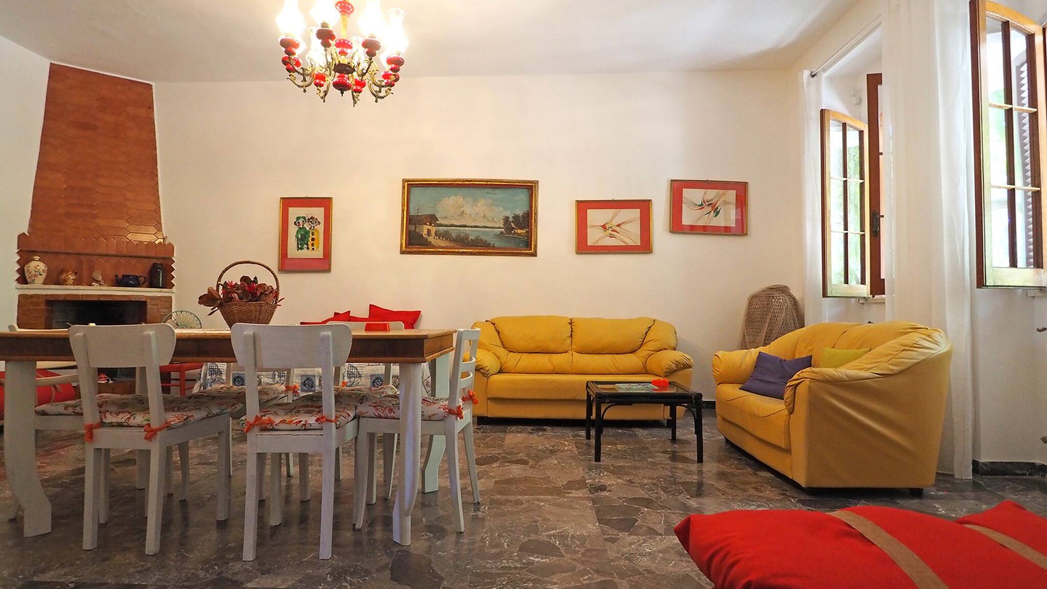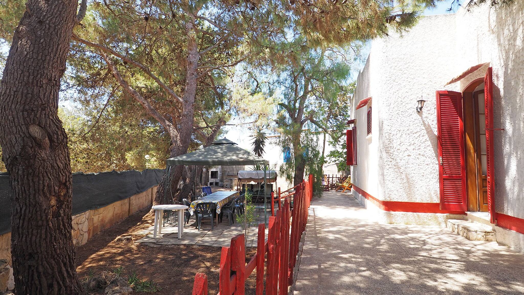 Externally, the villa has spacious surroundings equipped with garden furniture, a gazebo and an outdoor table for 10 people, a gas barbecue, an external stone fireplace, a nice swing, and an external shower convenient for returning from the beach. All of this is surrounded by greenery and naturally shaded by lush maritime pines and other trees.