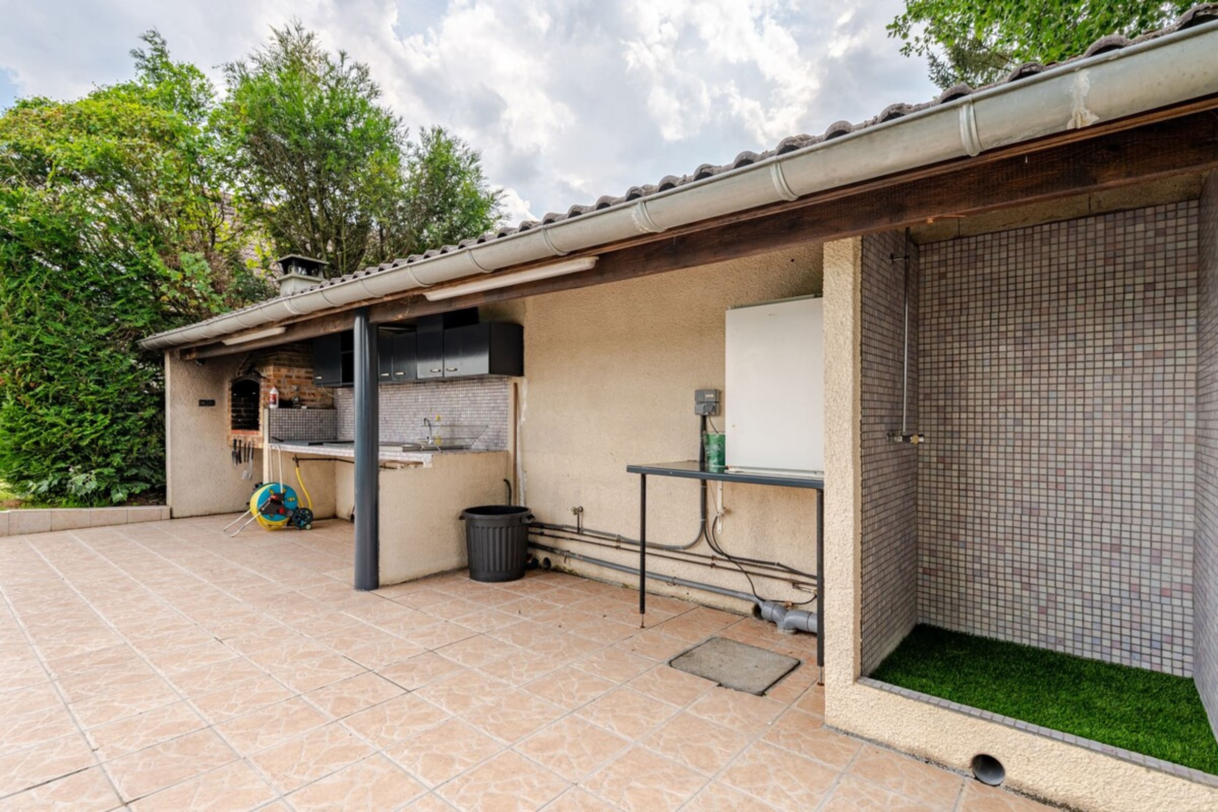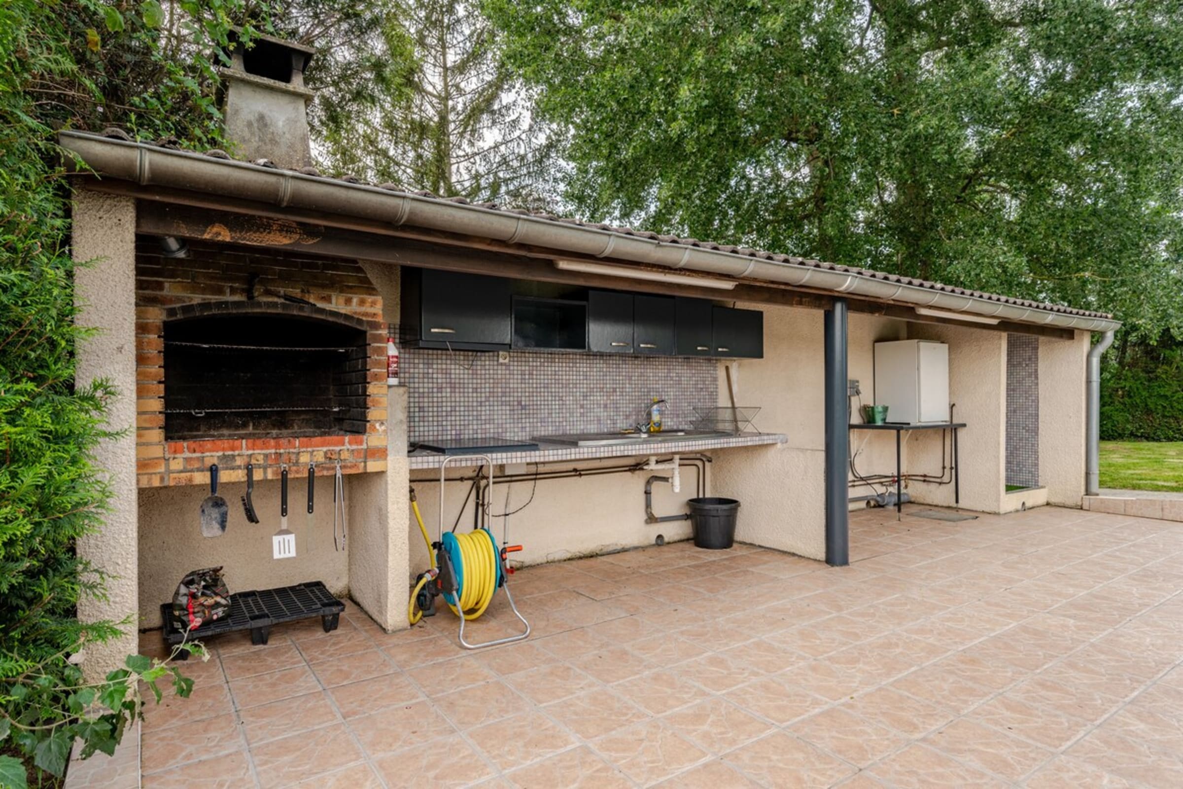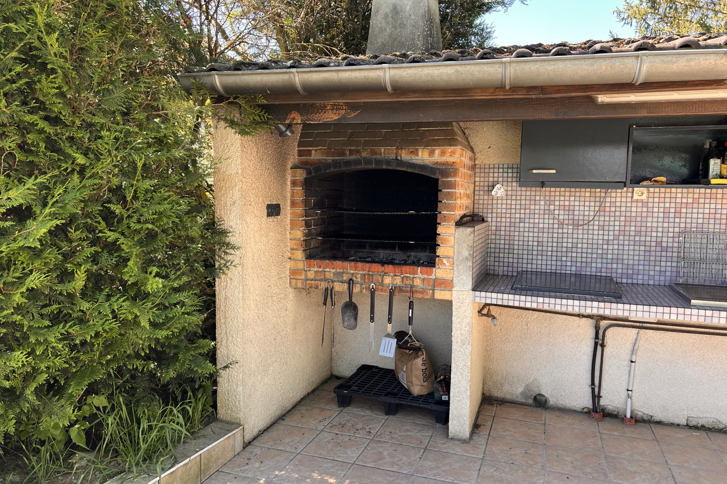 - A summer kitchen. This is equipped with a BBQ and its utensils (charcoal and firelighters not included in the rental price), a sink, a small fridge and a shower.