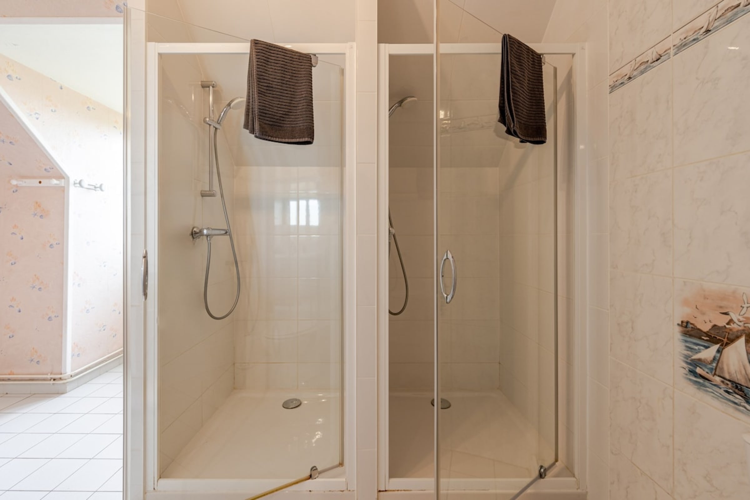 The second on the 1st floor equipped with a double sink unit, a toilet and two showers.