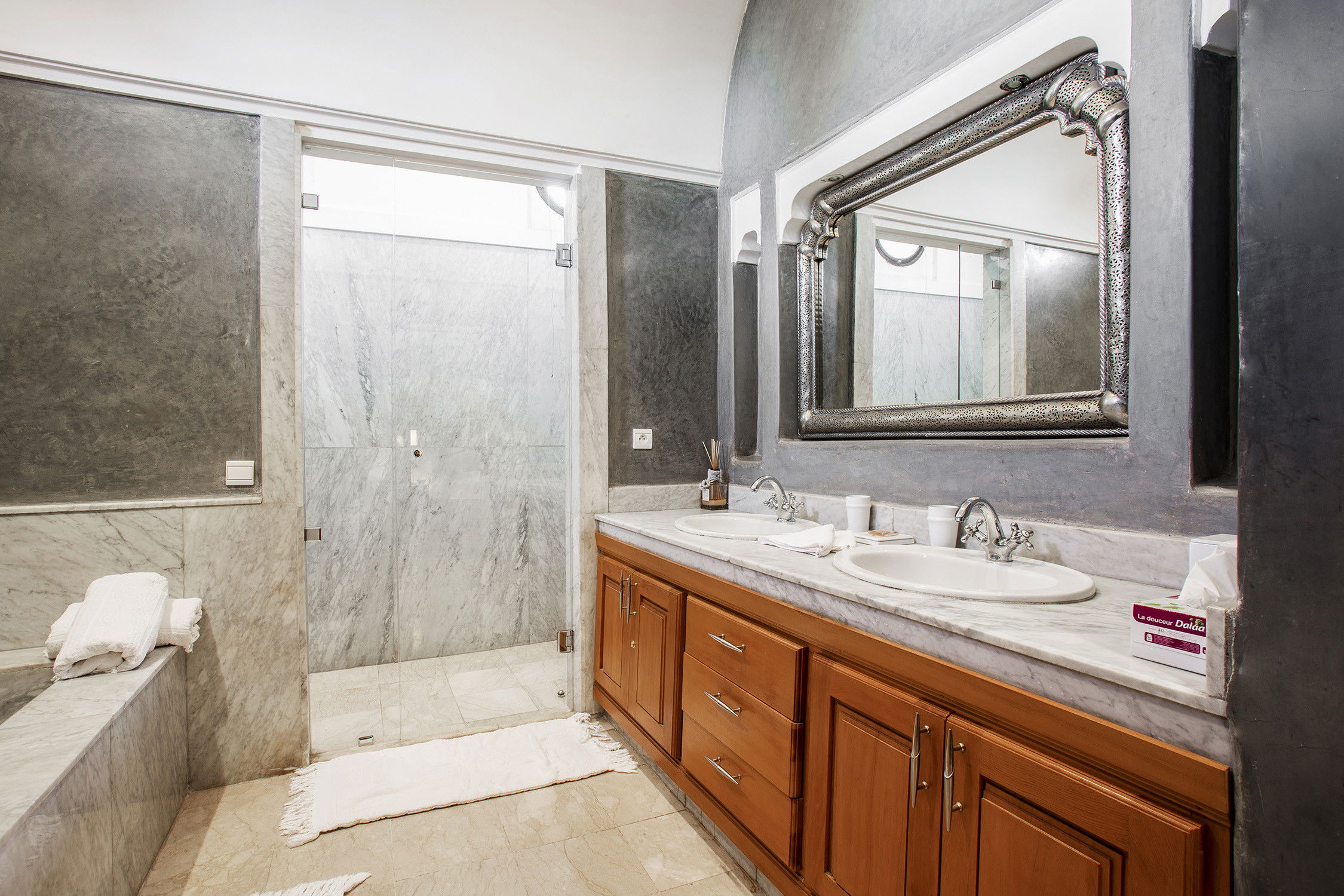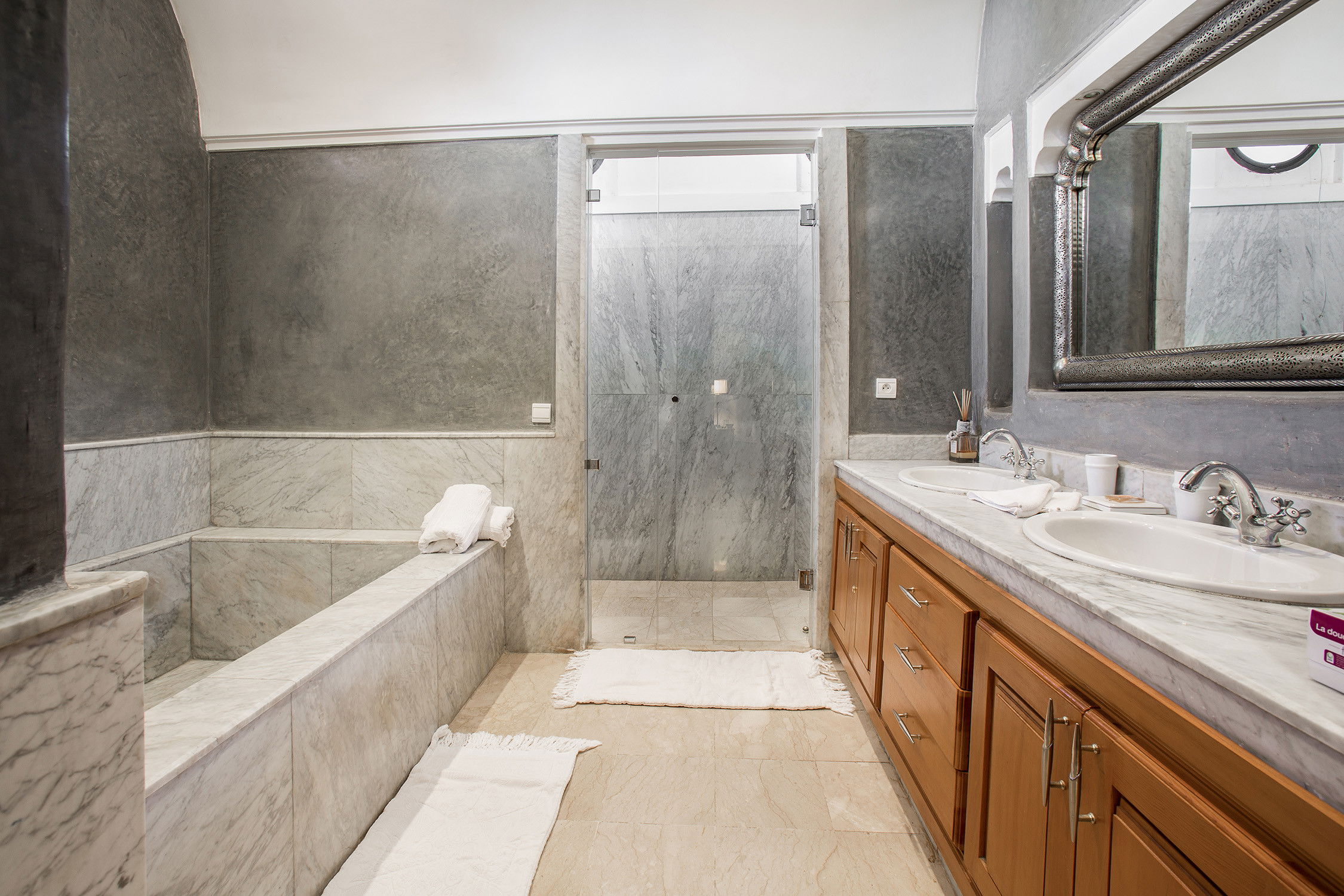Now comprising 7 bedrooms with private bathrooms, including a brand new suite on the upper floor, the villa can accommodate up to 14 people in absolute comfort. Each room combines modernity and Moroccan touches, with noble materials and carefully curated decoration.