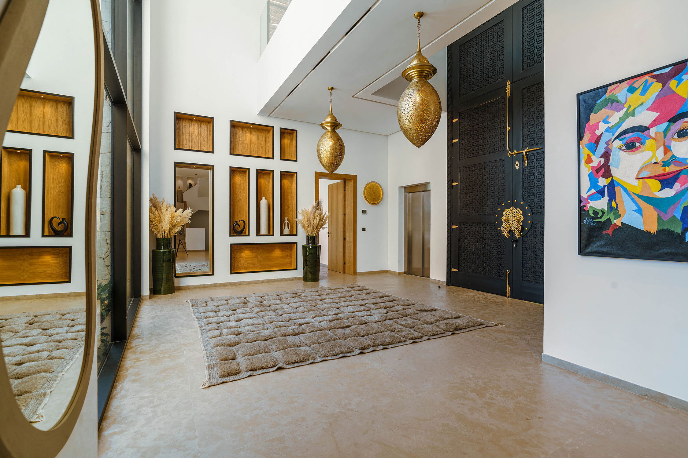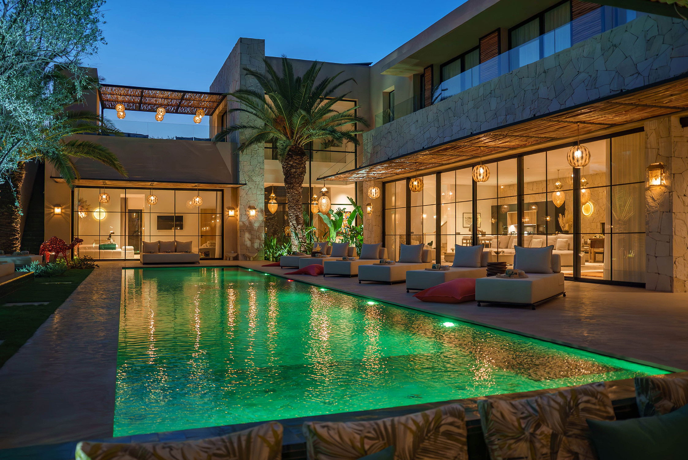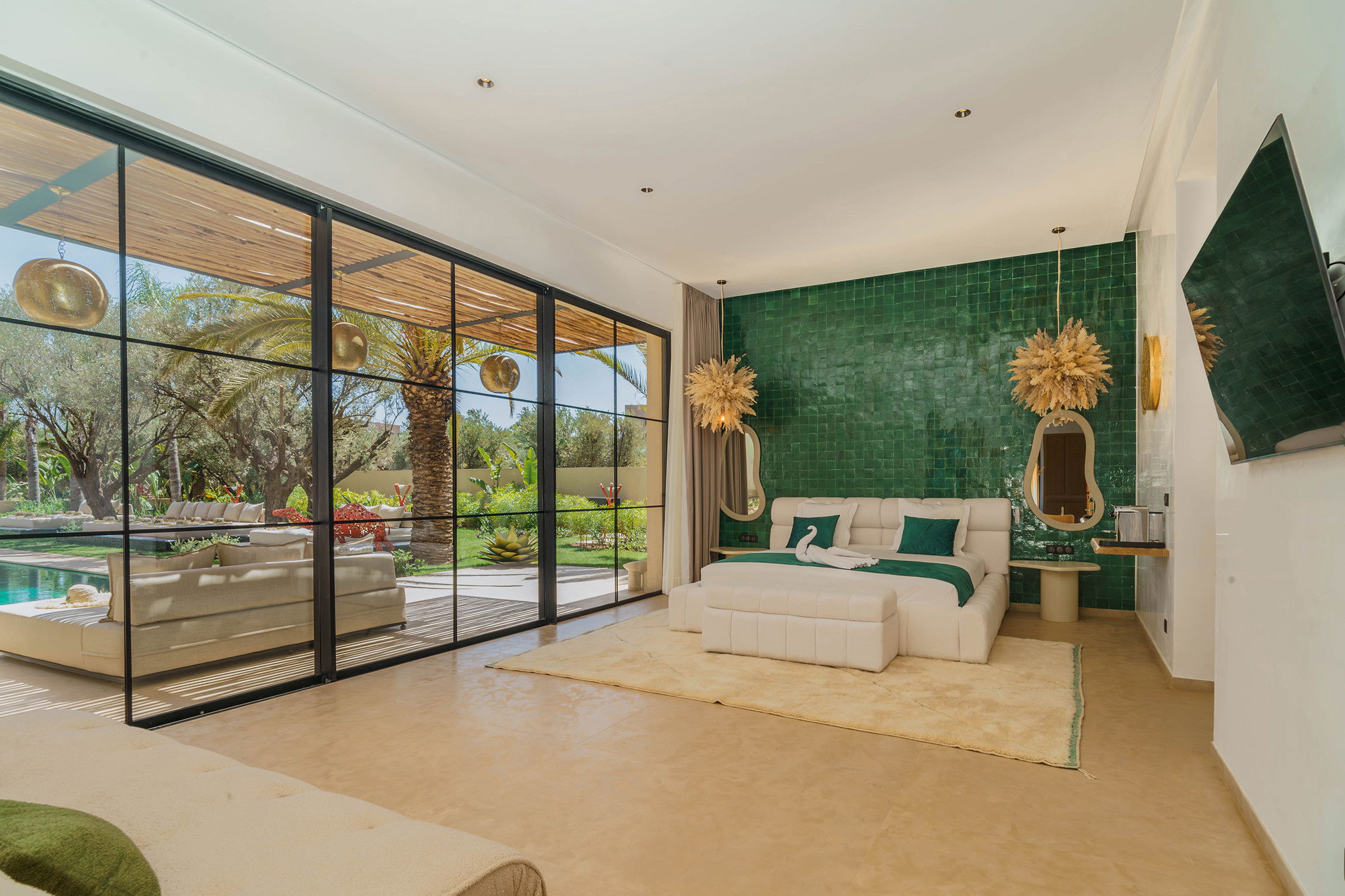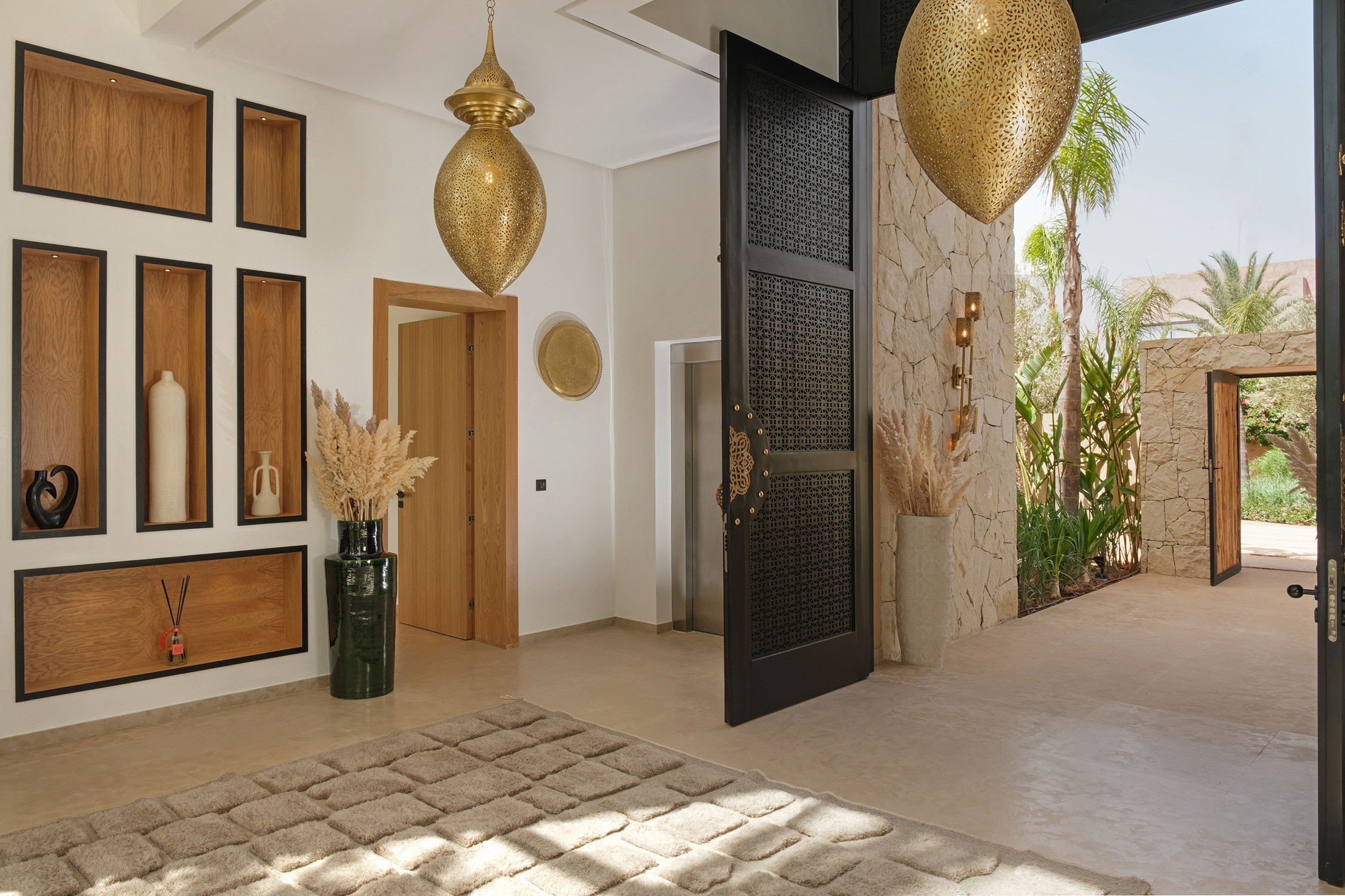 Villa Eyline is a breathtaking villa located near Marrakech, offering unparalleled views of the Atlas Mountains. This luxurious six-bedroom and a dormitory for the children, this villa is the perfect blend of traditional Moroccan decor and modern amenities, with spacious living areas, private terraces, and a large pool surrounded by lush gardens, and numerous SPA facilities: Jacuzzi, Sauna, Hammam, Gym. Ideal for families or groups, Villa Eyline provides a serene retreat on the Amelkis Golf course, just a short drive from the city’s top attractions.