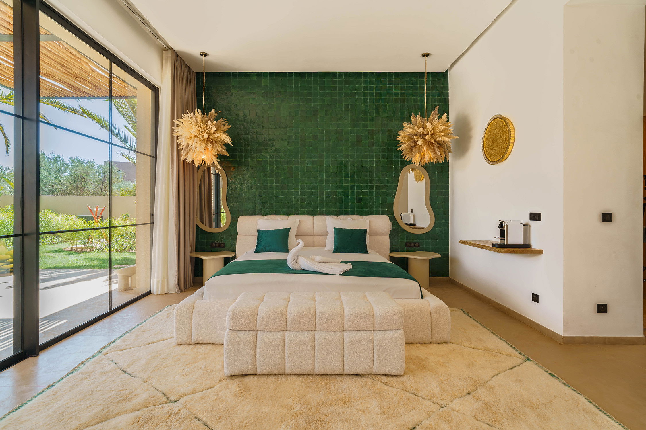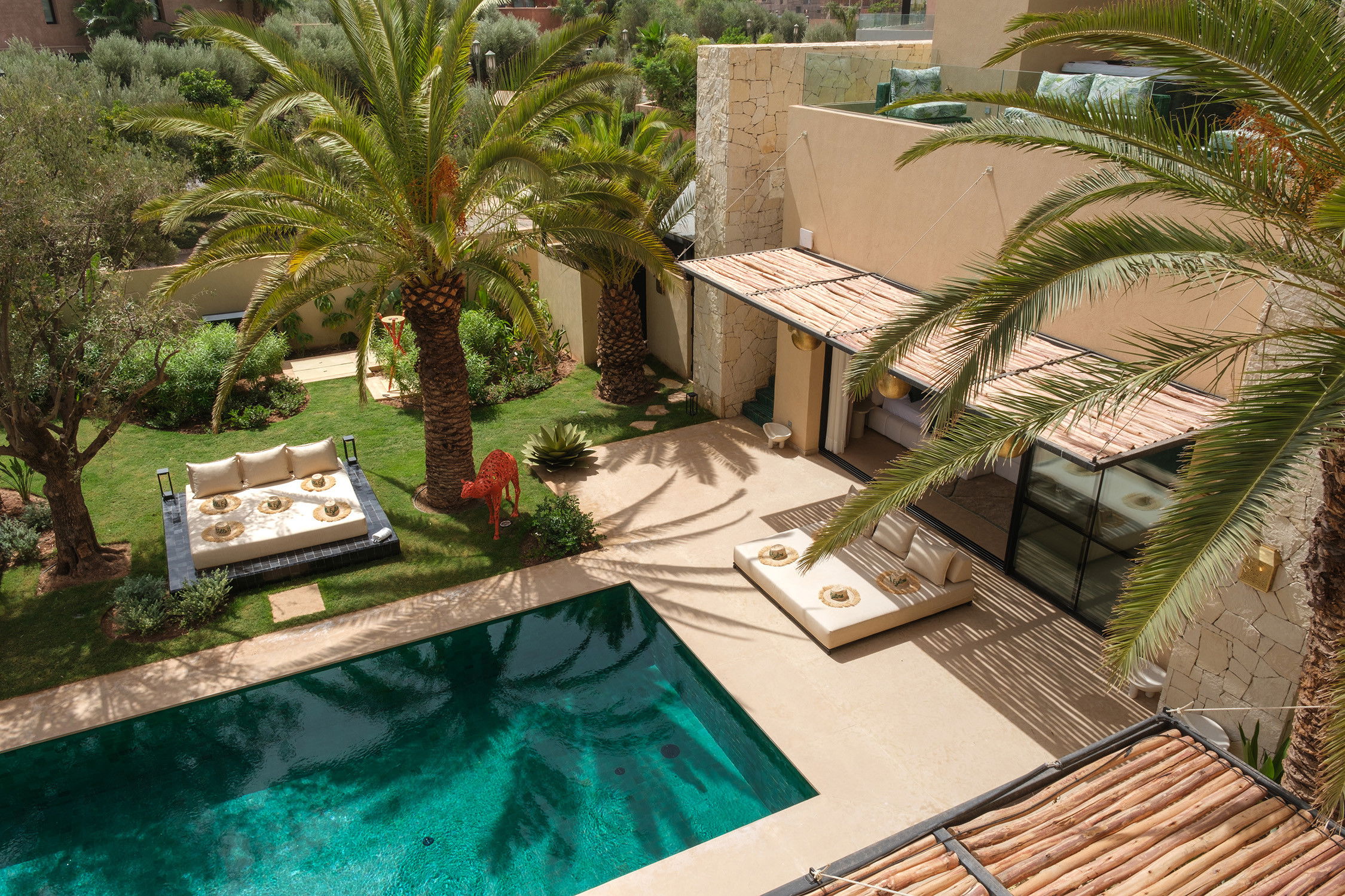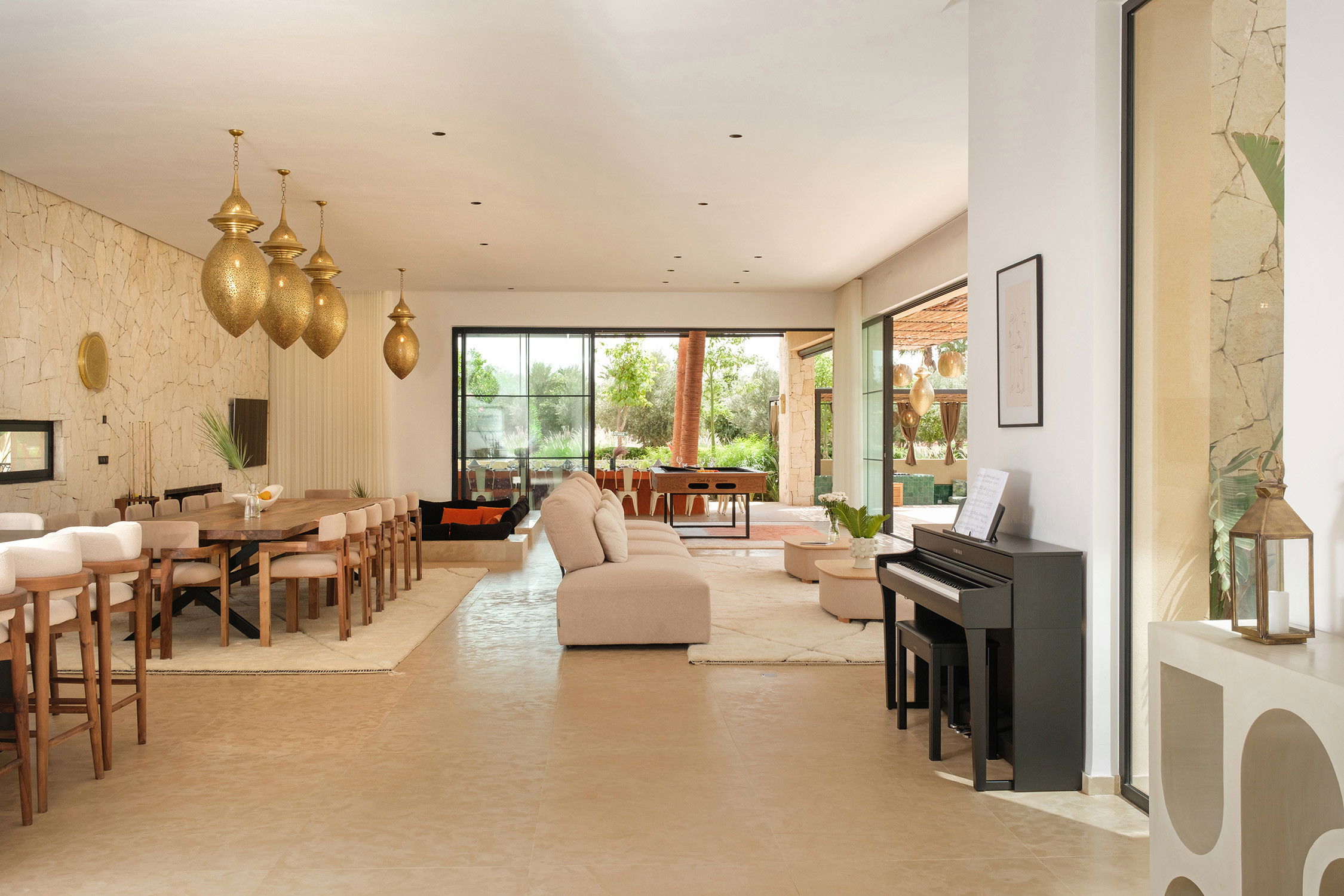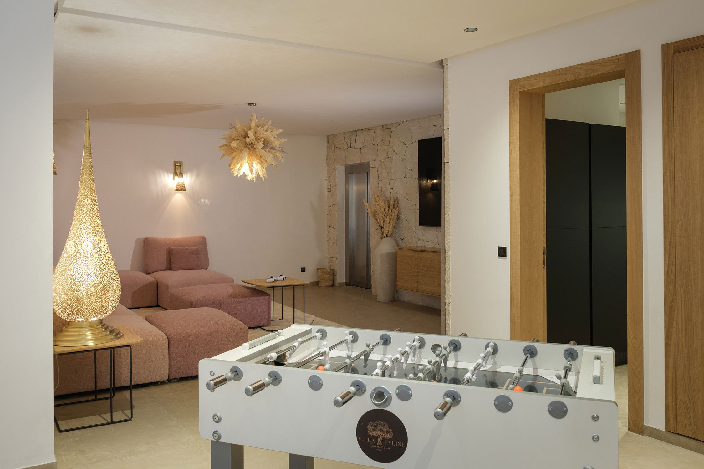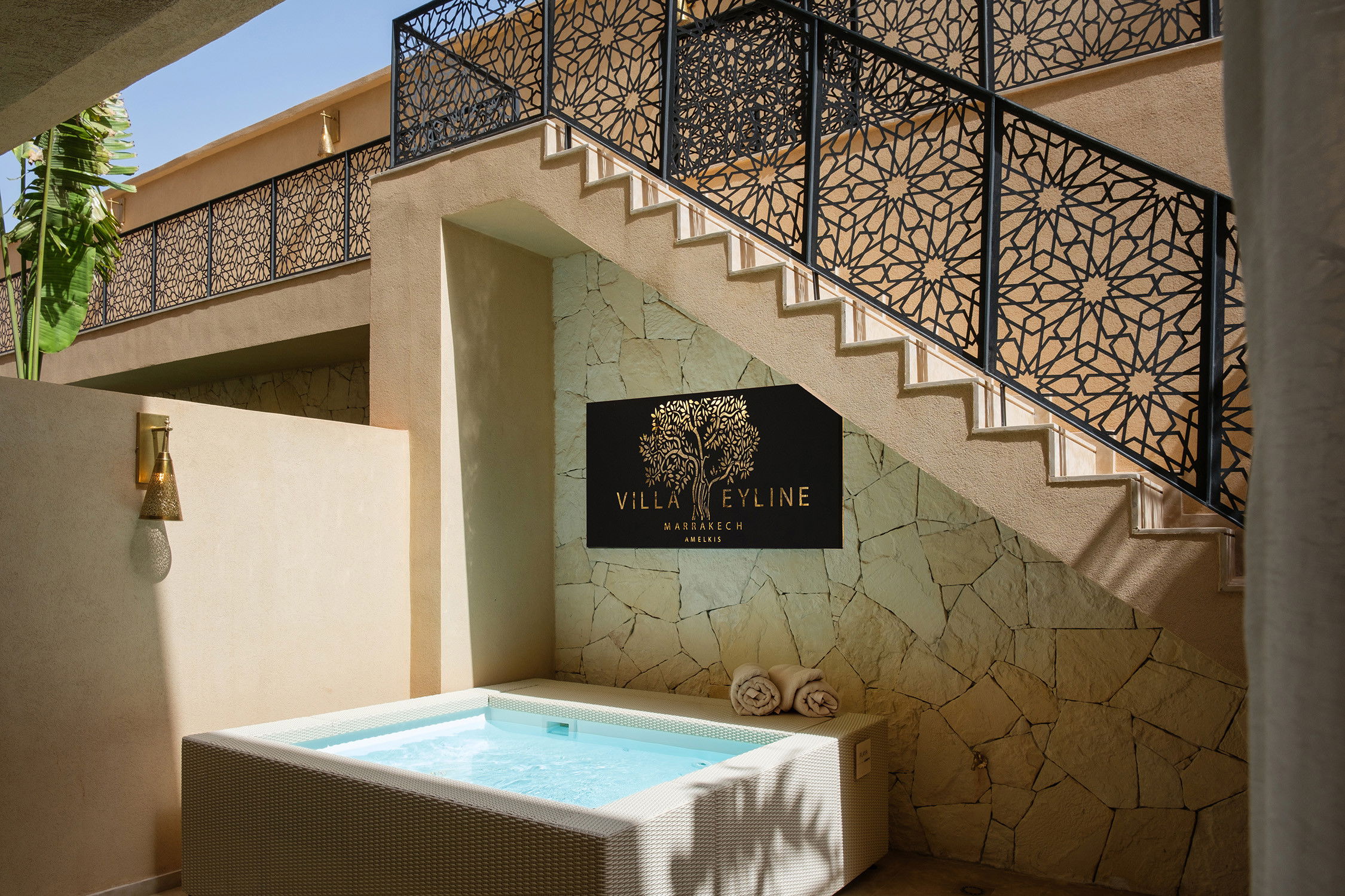 Villa Eyline is a breathtaking villa located near Marrakech, offering unparalleled views of the Atlas Mountains. This luxurious six-bedroom and a dormitory for the children, this villa is the perfect blend of traditional Moroccan decor and modern amenities, with spacious living areas, private terraces, and a large pool surrounded by lush gardens, and numerous SPA facilities: Jacuzzi, Sauna, Hammam, Gym. Ideal for families or groups, Villa Eyline provides a serene retreat on the Amelkis Golf course, just a short drive from the city’s top attractions.