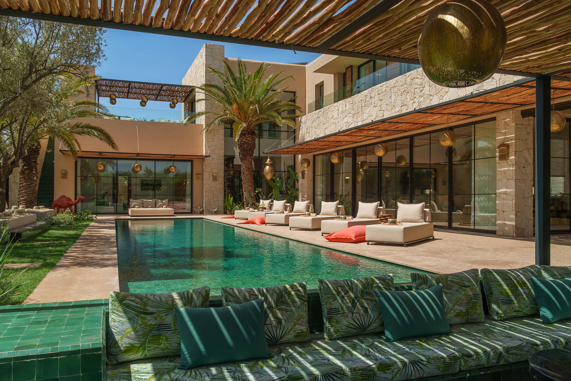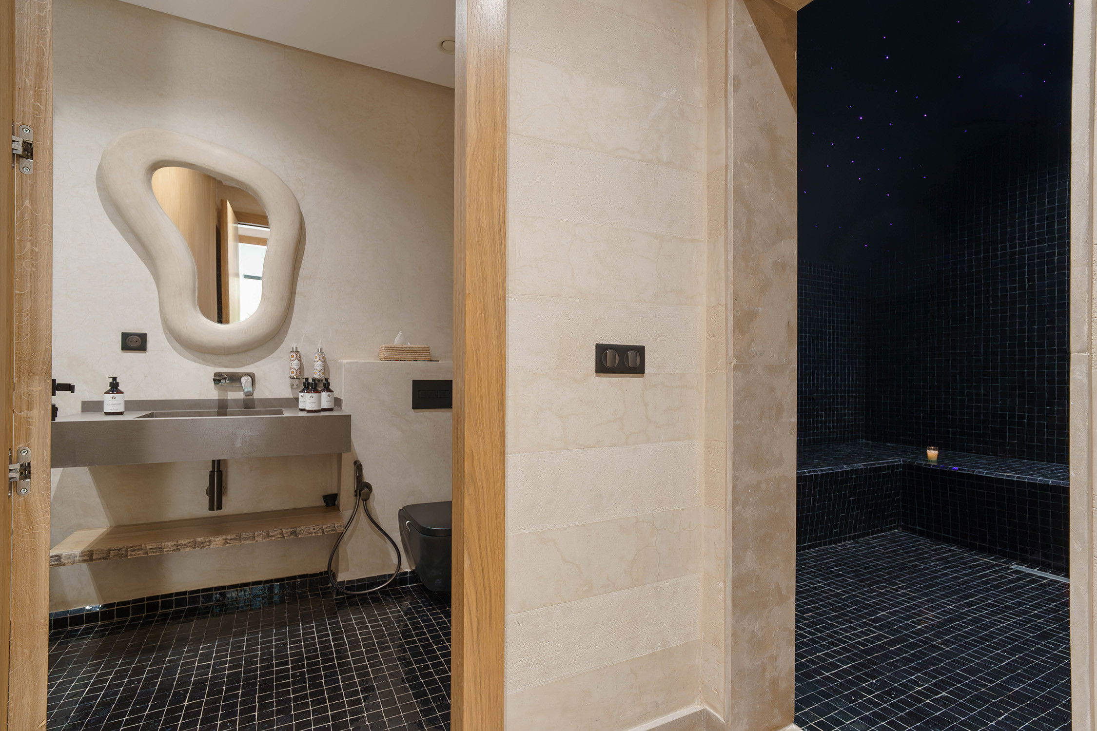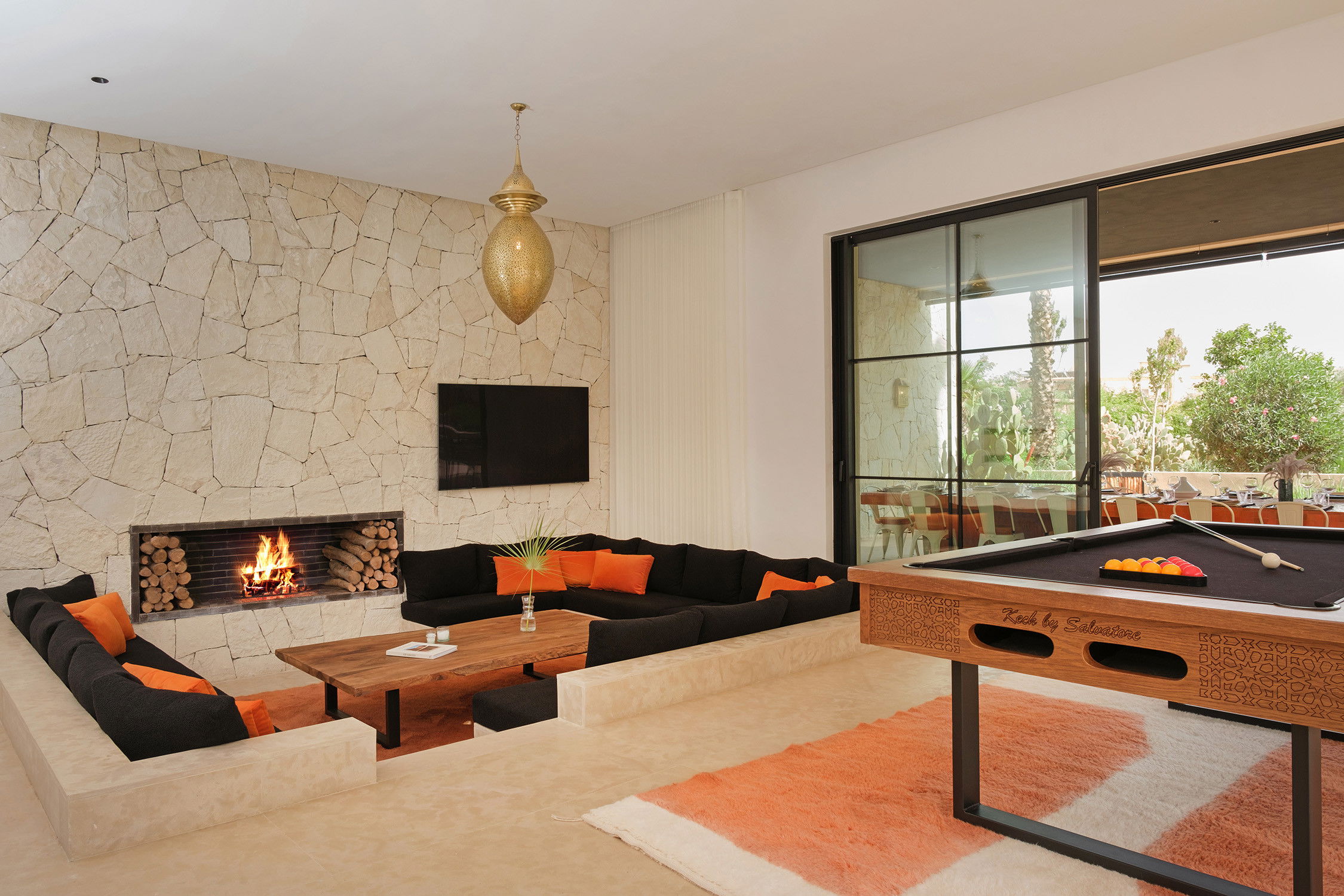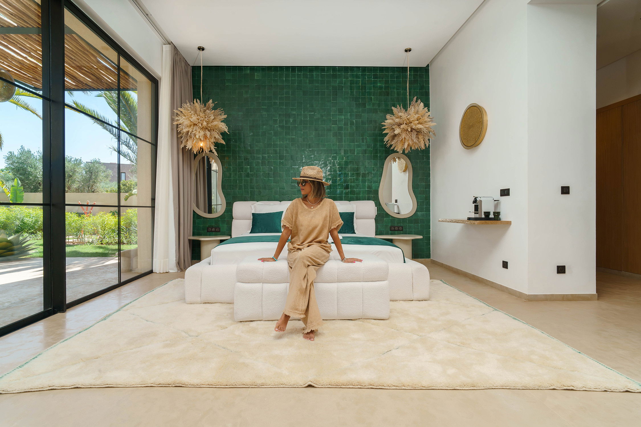 Villa Eyline is a breathtaking villa located near Marrakech, offering unparalleled views of the Atlas Mountains. This luxurious six-bedroom and a dormitory for the children, this villa is the perfect blend of traditional Moroccan decor and modern amenities, with spacious living areas, private terraces, and a large pool surrounded by lush gardens, and numerous SPA facilities: Jacuzzi, Sauna, Hammam, Gym. Ideal for families or groups, Villa Eyline provides a serene retreat on the Amelkis Golf course, just a short drive from the city’s top attractions.