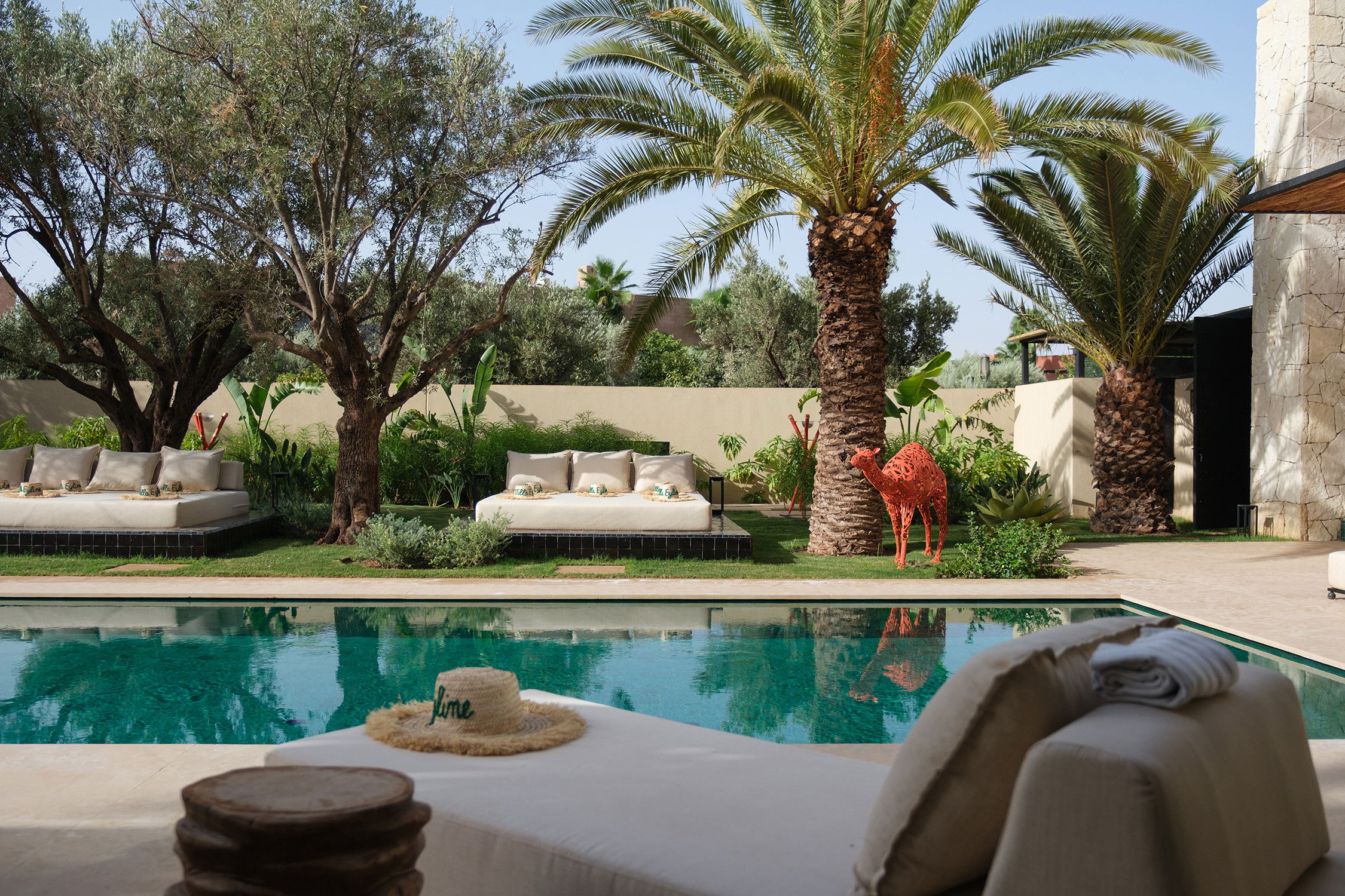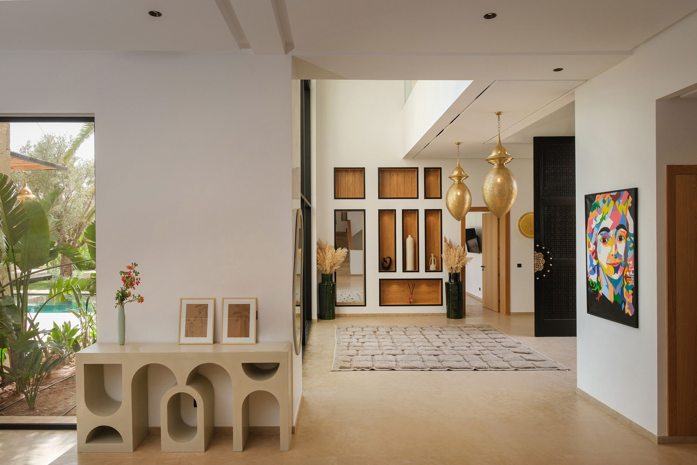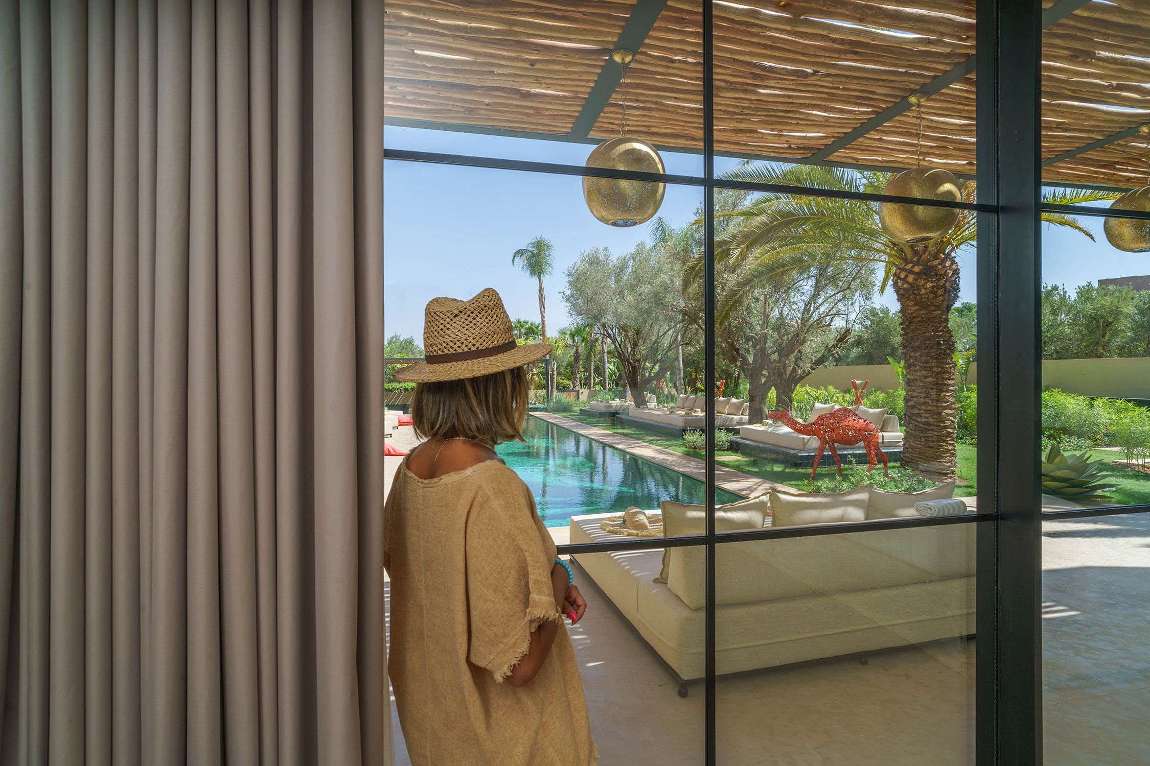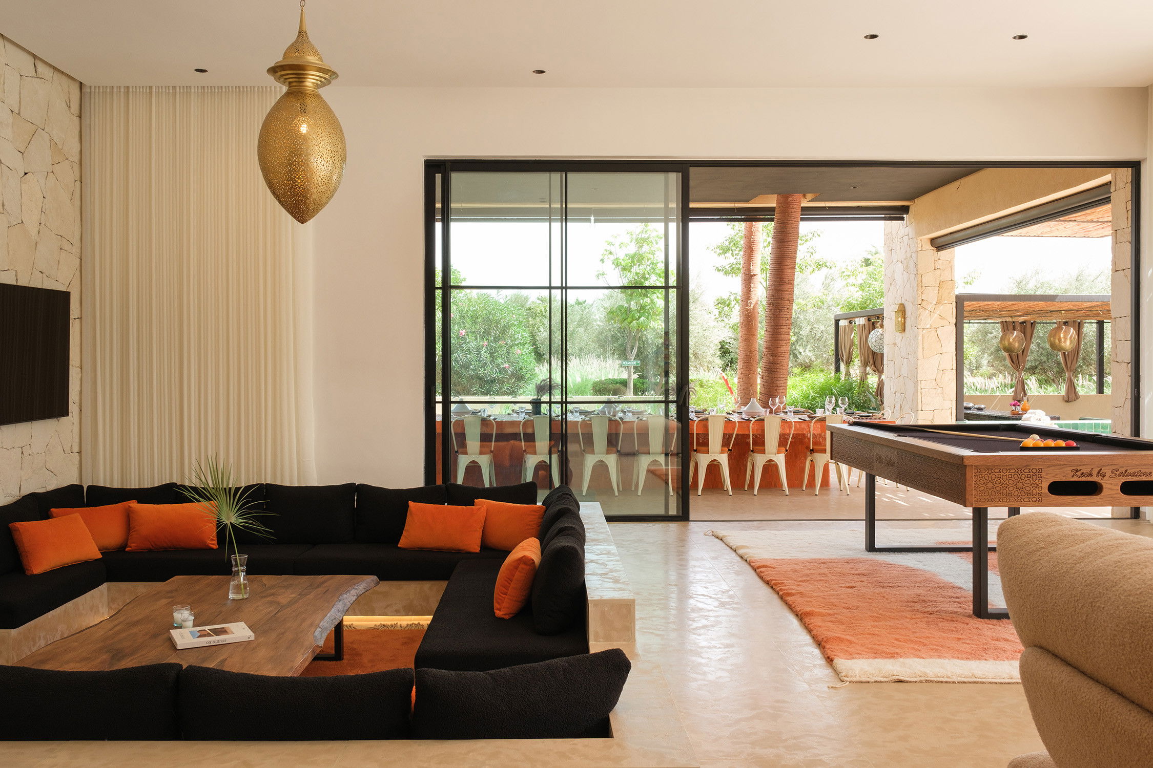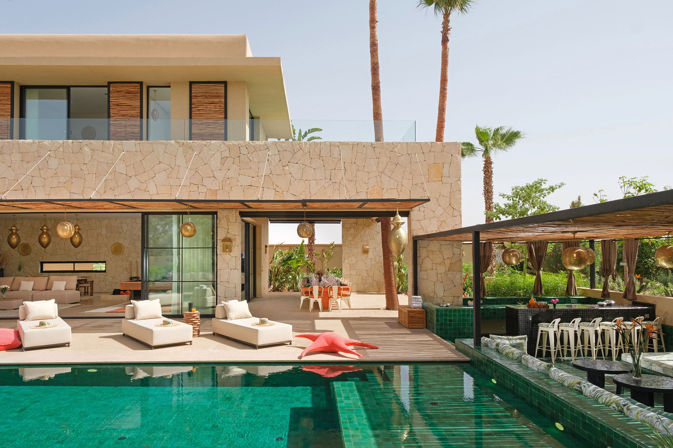 Villa Eyline is a breathtaking villa located near Marrakech, offering unparalleled views of the Atlas Mountains. This luxurious six-bedroom and a dormitory for the children, this villa is the perfect blend of traditional Moroccan decor and modern amenities, with spacious living areas, private terraces, and a large pool surrounded by lush gardens, and numerous SPA facilities: Jacuzzi, Sauna, Hammam, Gym. Ideal for families or groups, Villa Eyline provides a serene retreat on the Amelkis Golf course, just a short drive from the city’s top attractions.