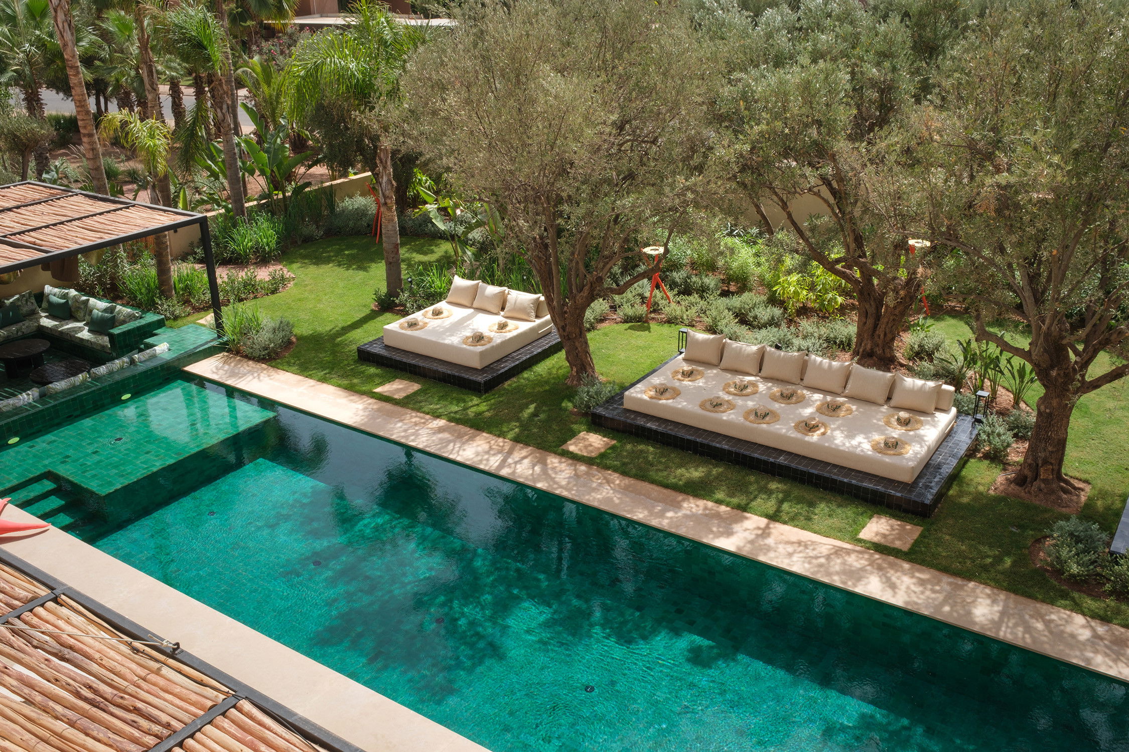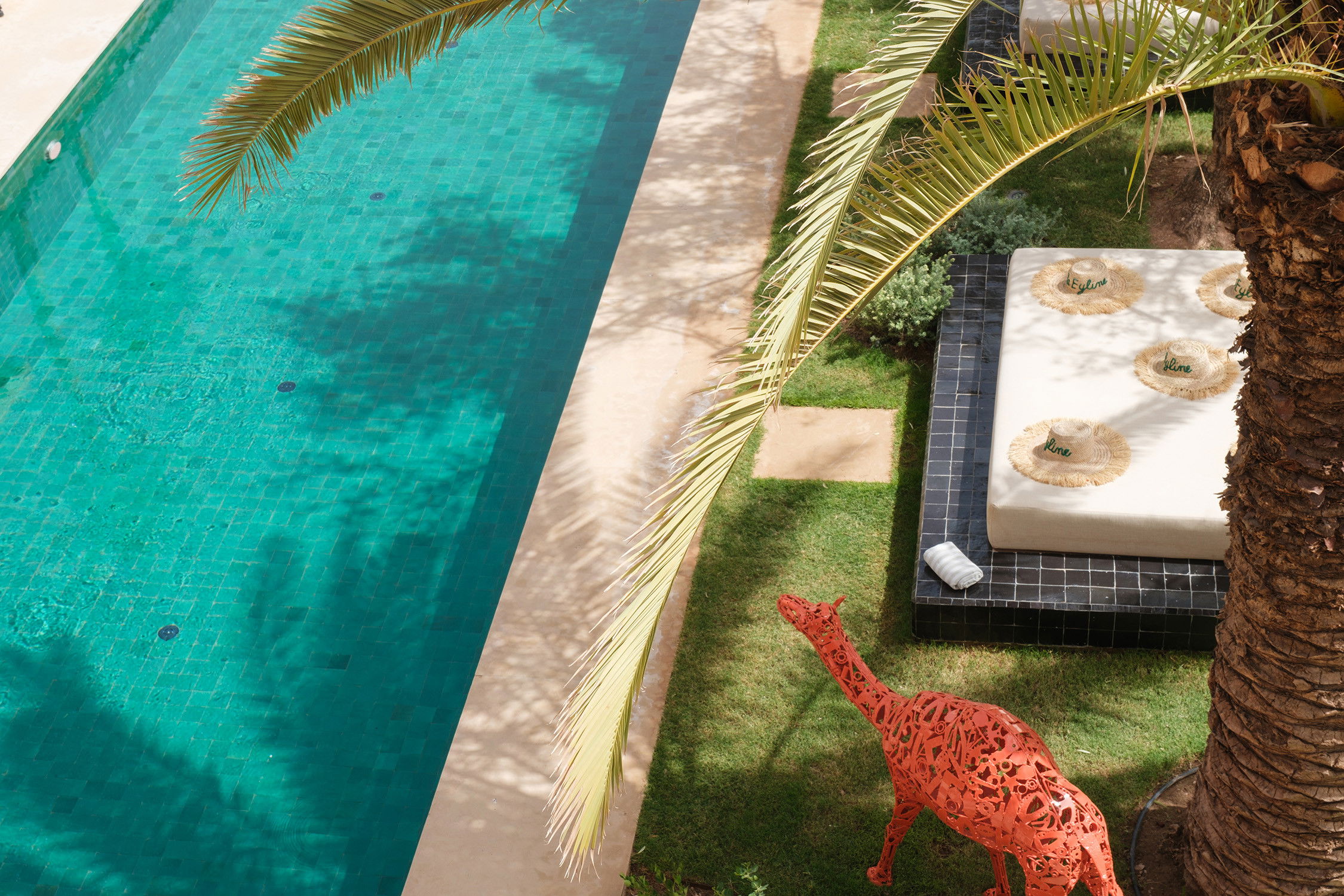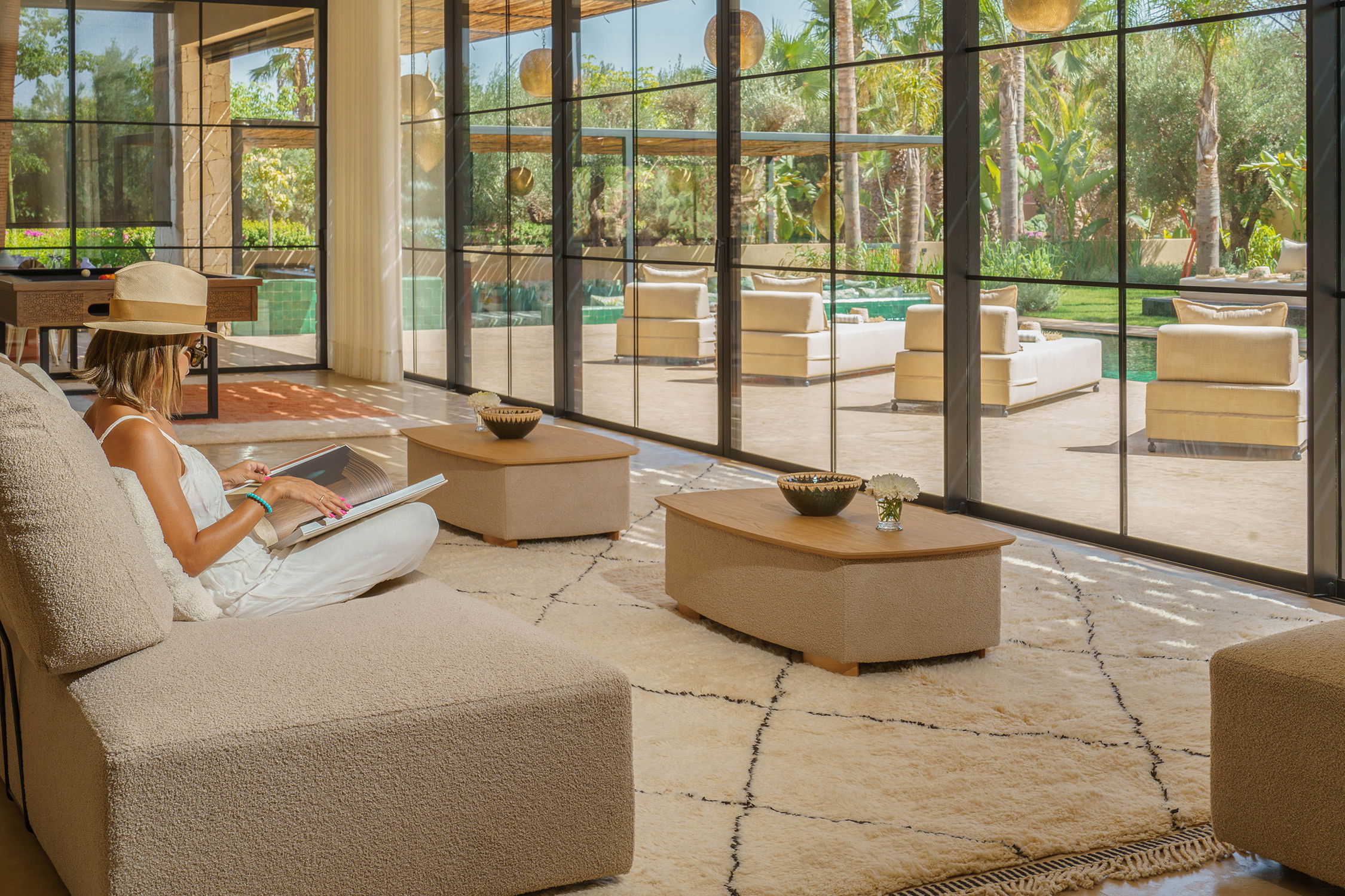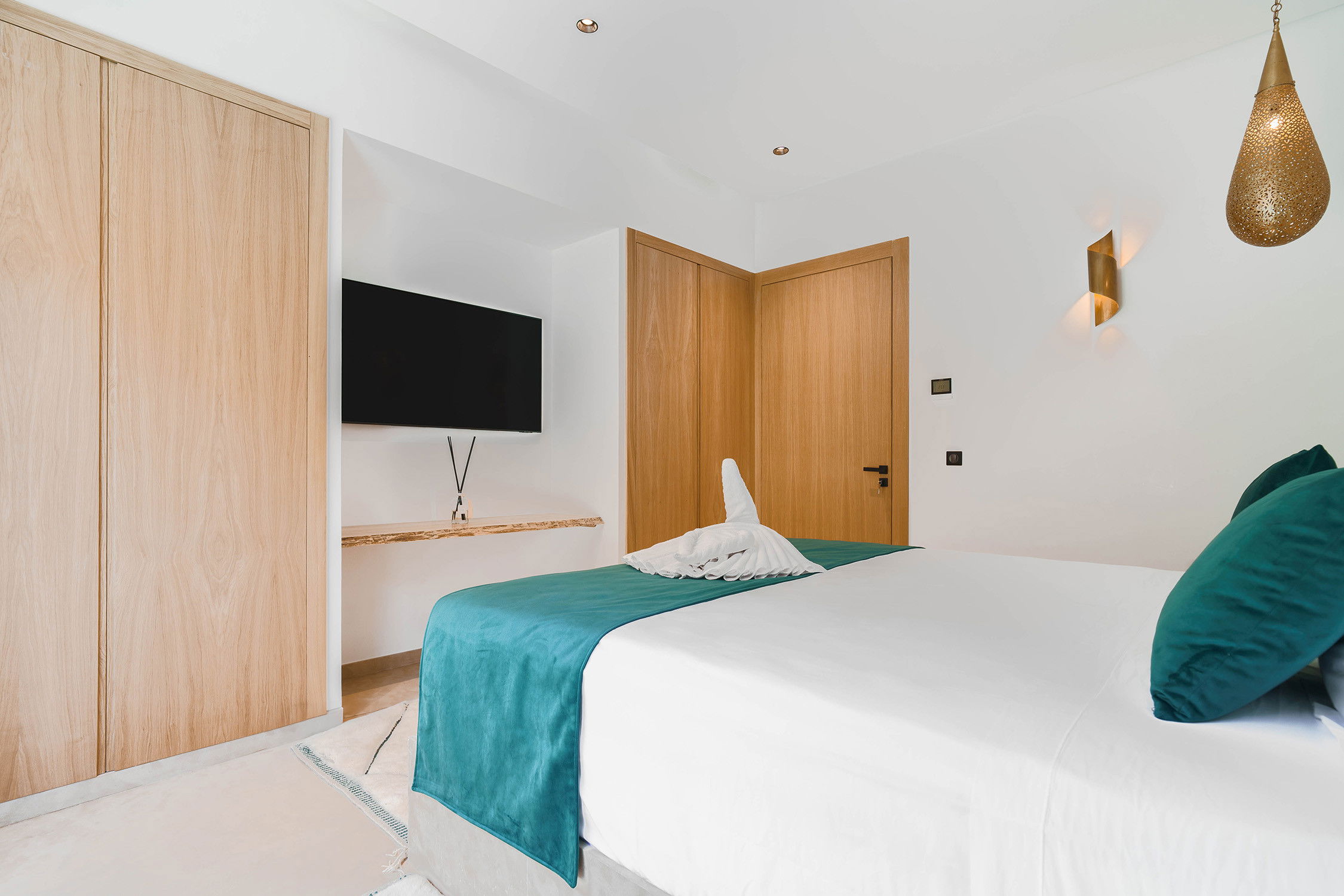 Villa Eyline is a breathtaking villa located near Marrakech, offering unparalleled views of the Atlas Mountains. This luxurious six-bedroom and a dormitory for the children, this villa is the perfect blend of traditional Moroccan decor and modern amenities, with spacious living areas, private terraces, and a large pool surrounded by lush gardens, and numerous SPA facilities: Jacuzzi, Sauna, Hammam, Gym. Ideal for families or groups, Villa Eyline provides a serene retreat on the Amelkis Golf course, just a short drive from the city’s top attractions.