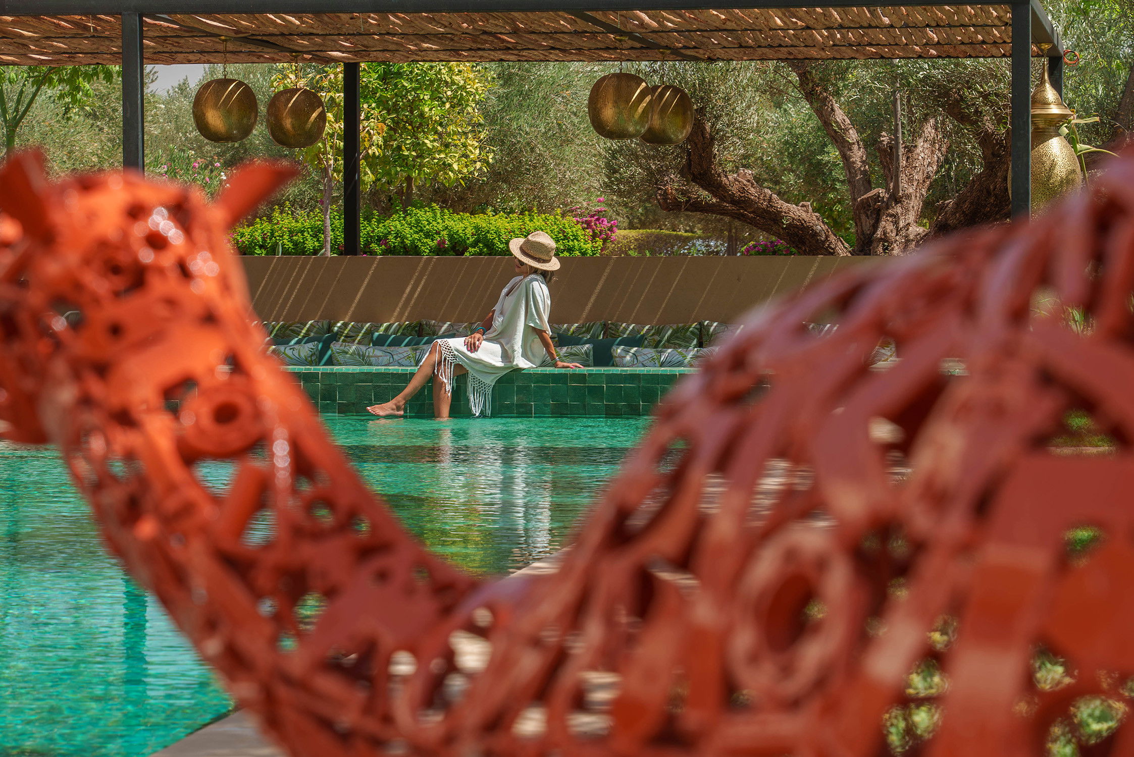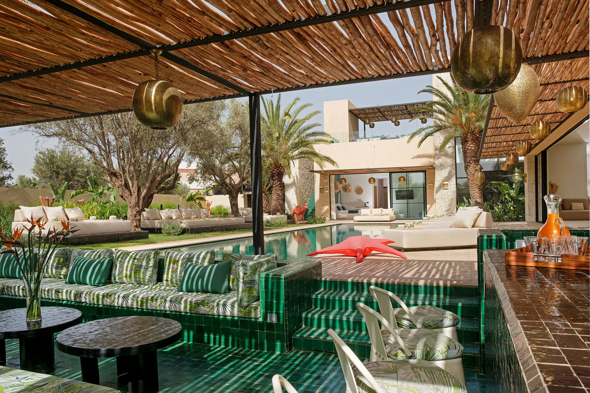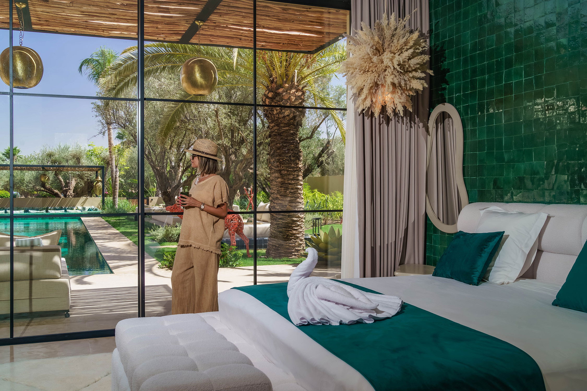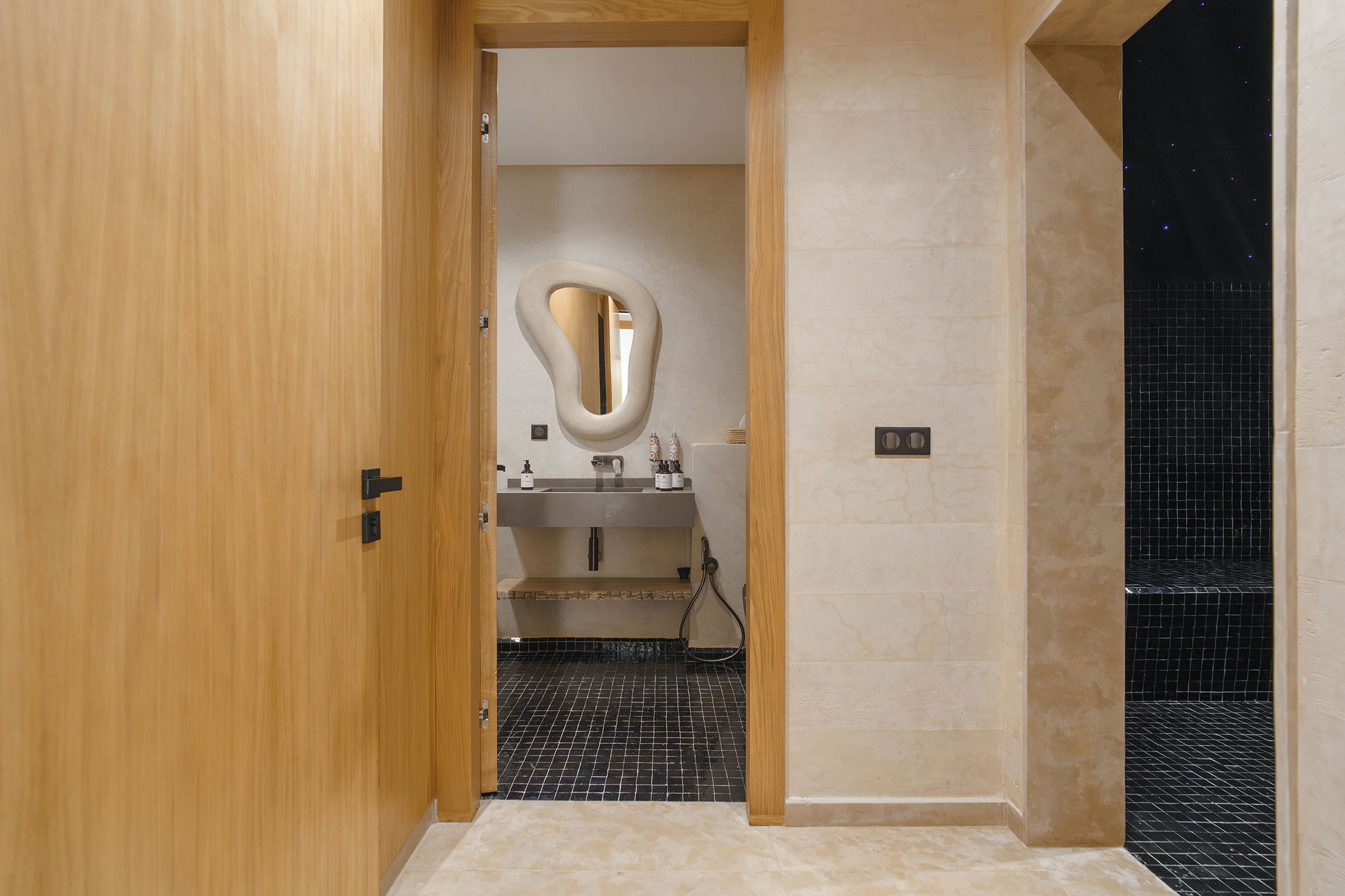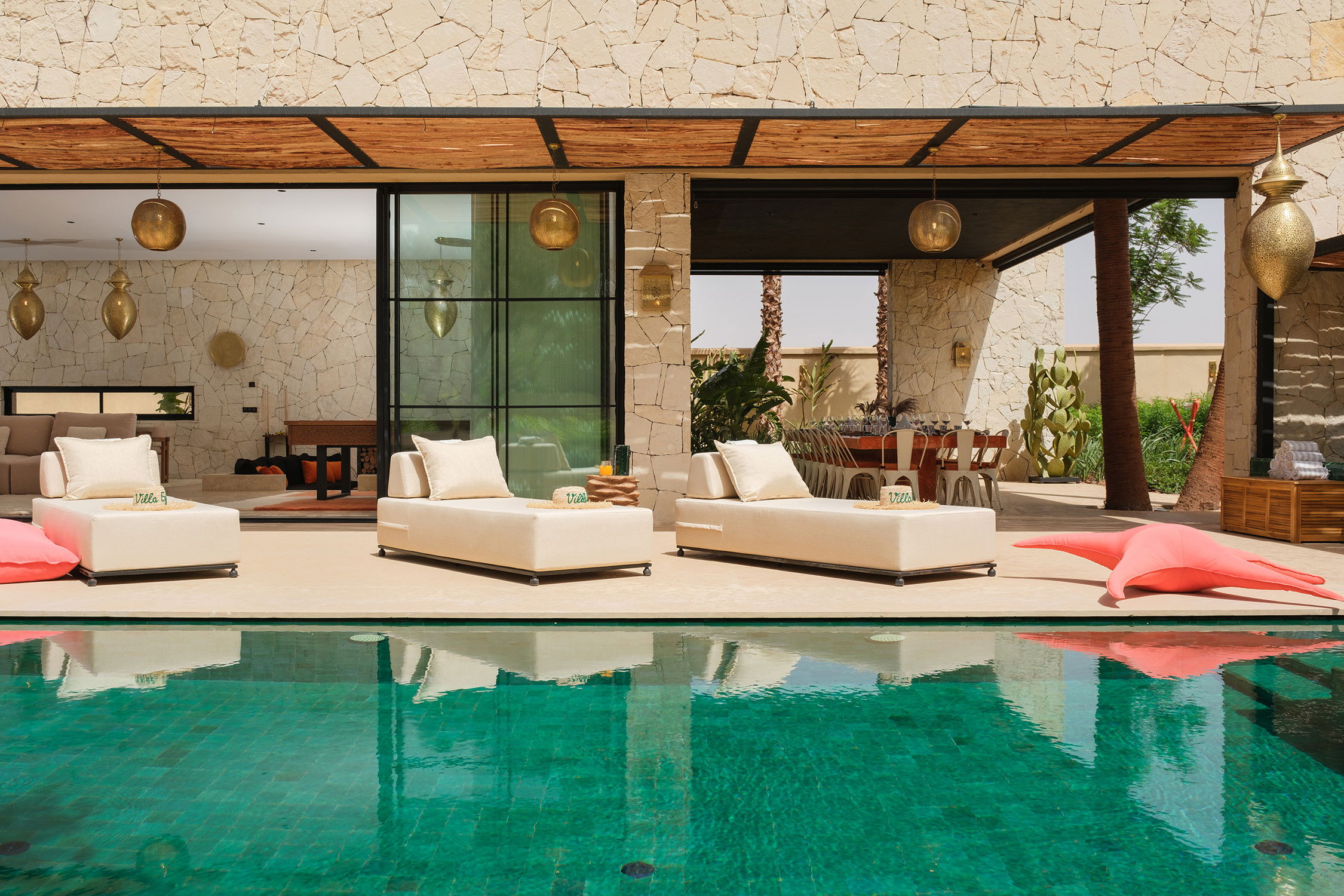 Villa Eyline is a breathtaking villa located near Marrakech, offering unparalleled views of the Atlas Mountains. This luxurious six-bedroom and a dormitory for the children, this villa is the perfect blend of traditional Moroccan decor and modern amenities, with spacious living areas, private terraces, and a large pool surrounded by lush gardens, and numerous SPA facilities: Jacuzzi, Sauna, Hammam, Gym. Ideal for families or groups, Villa Eyline provides a serene retreat on the Amelkis Golf course, just a short drive from the city’s top attractions.