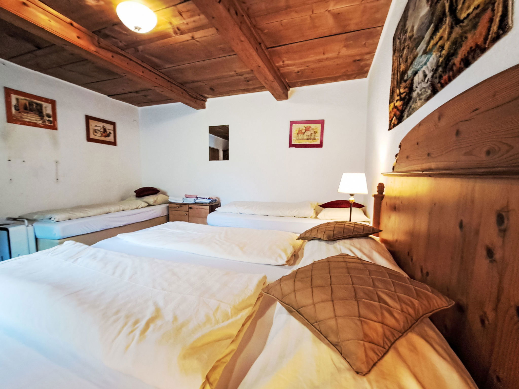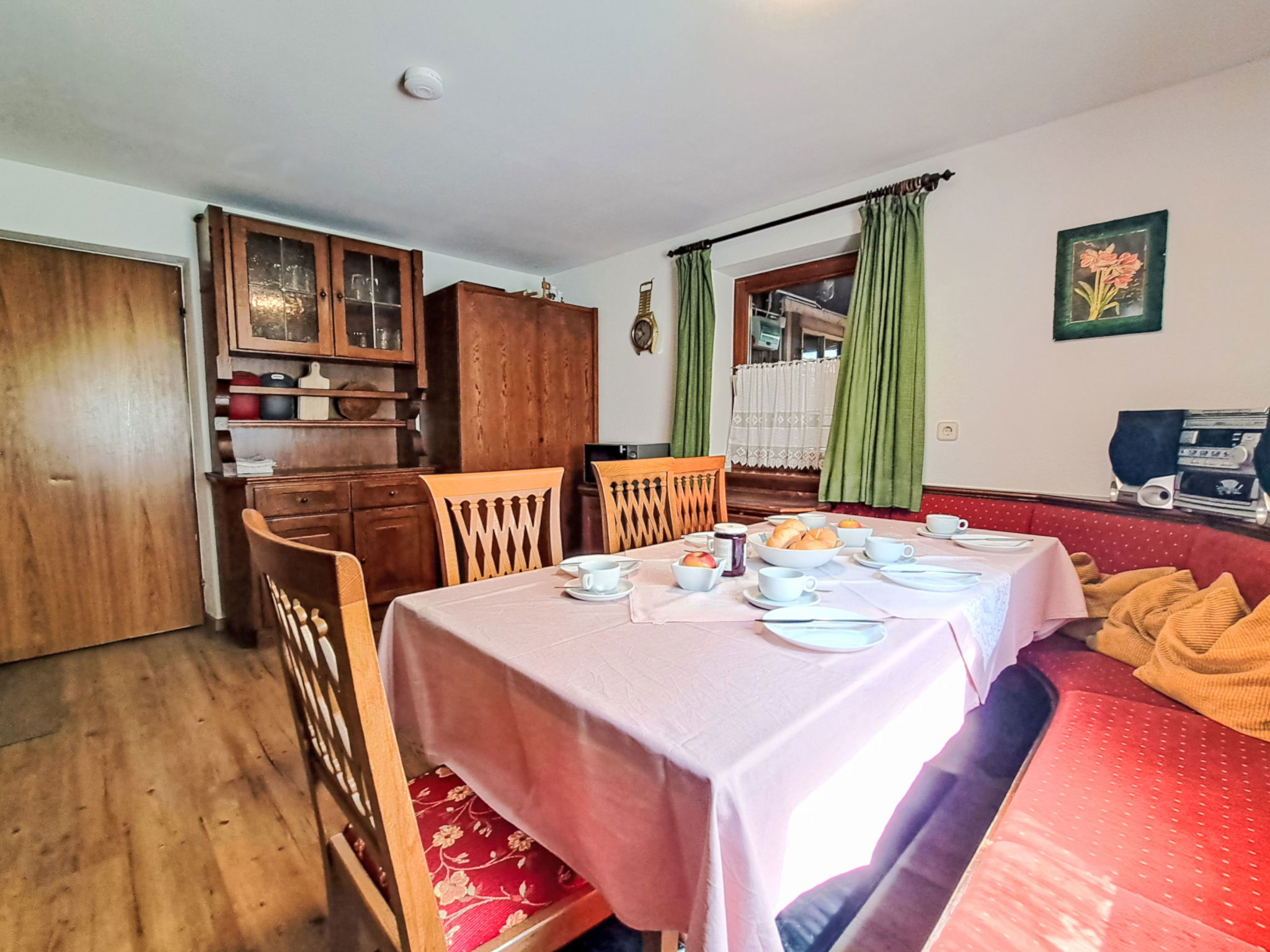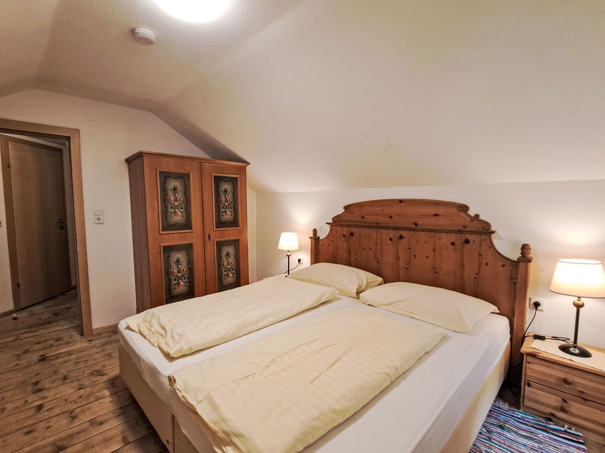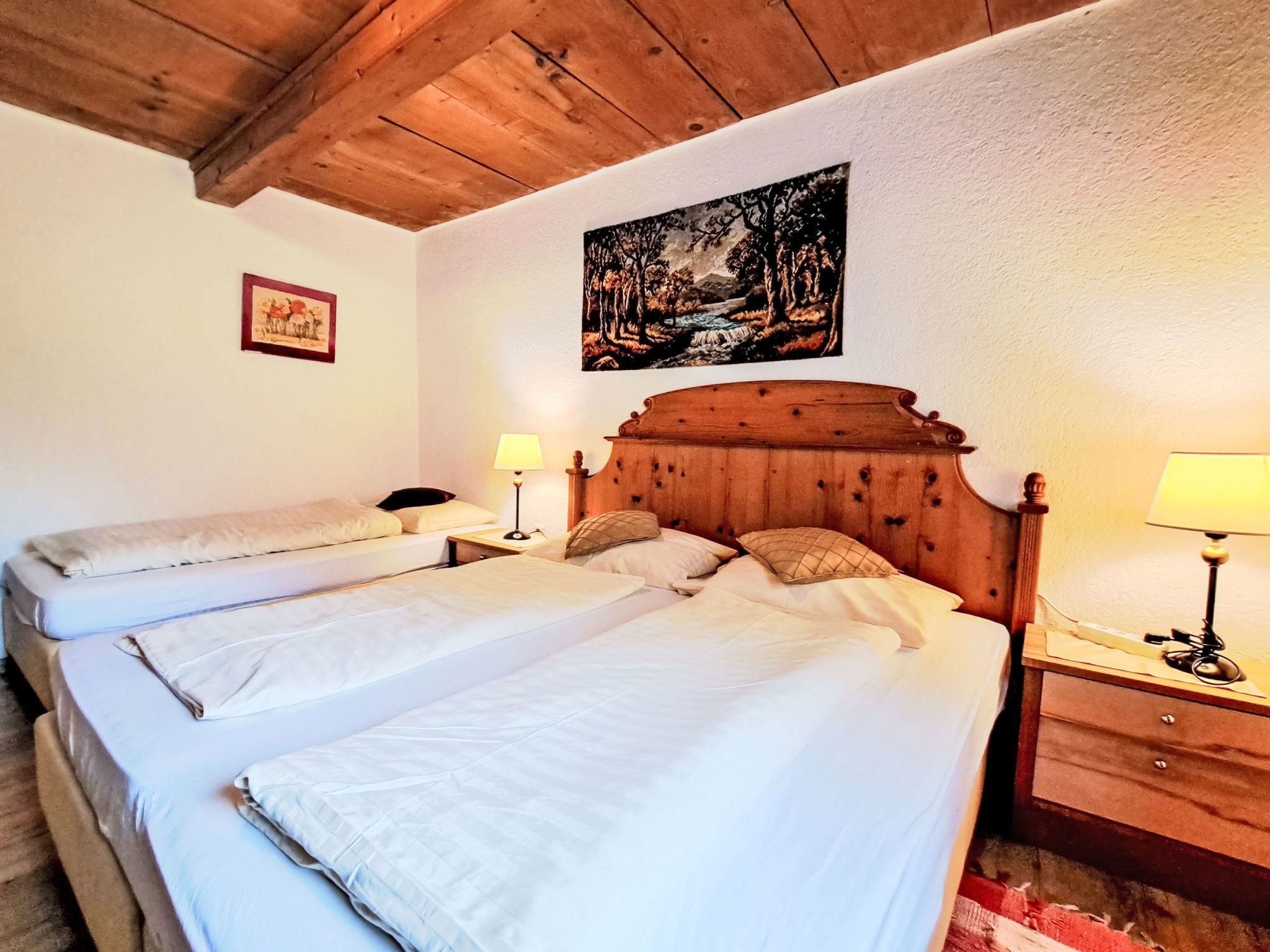6-room house 170 m2 on 3 levels. Practical and cosy furnishings: living/dining room with dining nook, satellite TV, radio, CD-player, DVD and wood-burning stove. 1 room with 2 beds and 1 double bed. Kitchen (4 hot plates, oven, dishwasher, toaster, kettle, electric coffee machine) with dining nook and wood-burning stove. Shower, sep. WC. Upper floor: 1 room with 1 bed, 1 double bed and electric heater. 1 room with 1 bed and 1 double bed. Exit to the balcony. 1 double bedroom. Shower, sep. WC. 2nd upper floor: 1 room with sloping ceilings with 1 bed and 1 double bed. Shower, sep. WC. Heating not available in all rooms. Wooden floors, carpet. Balcony, terrace. Barbecue, deck chairs (5). Beautiful view of the countryside. Facilities: sauna, children's high chair, baby cot. Please note: non-smoking house. Maximum 2 pets/ dogs allowed.