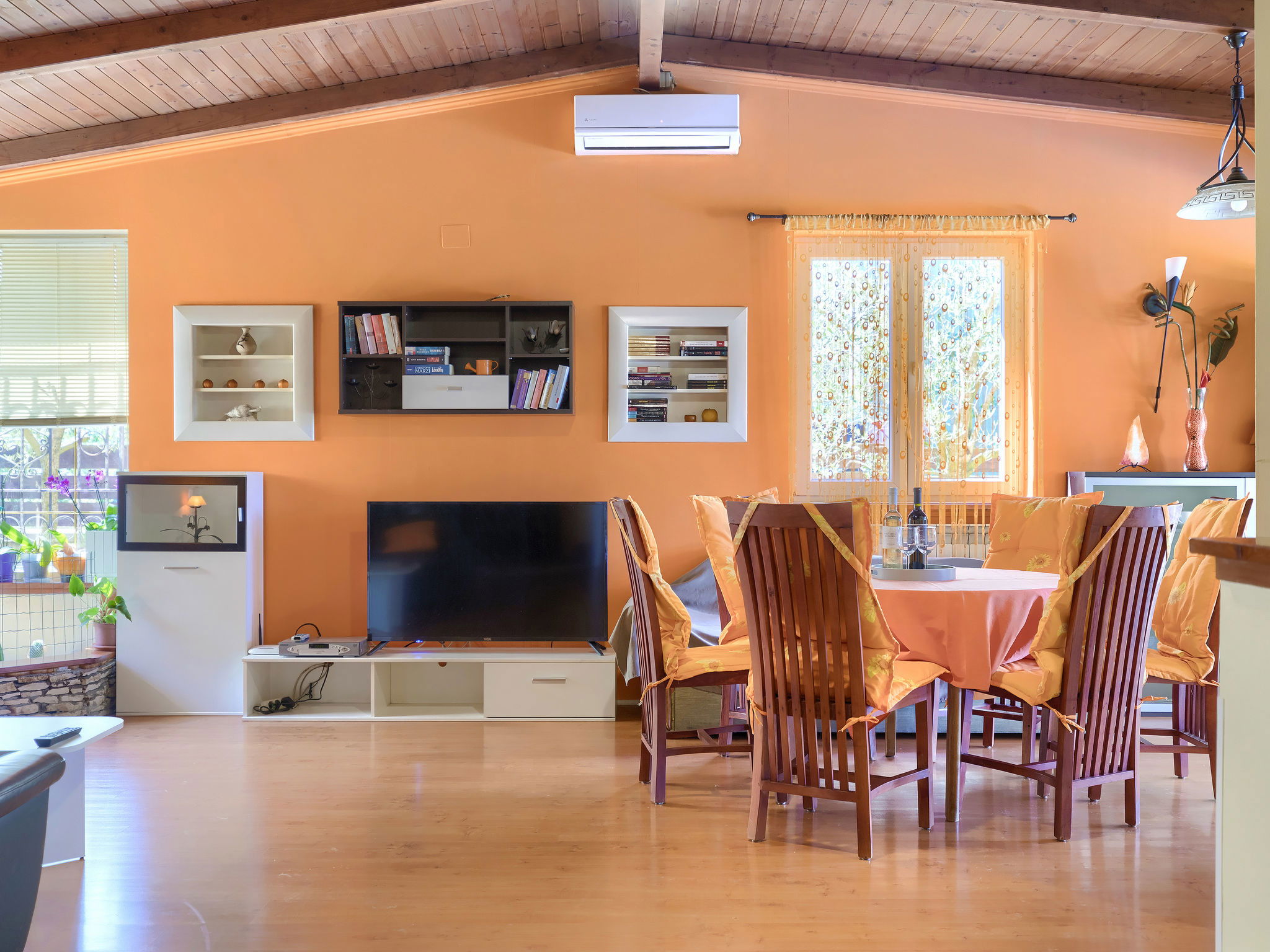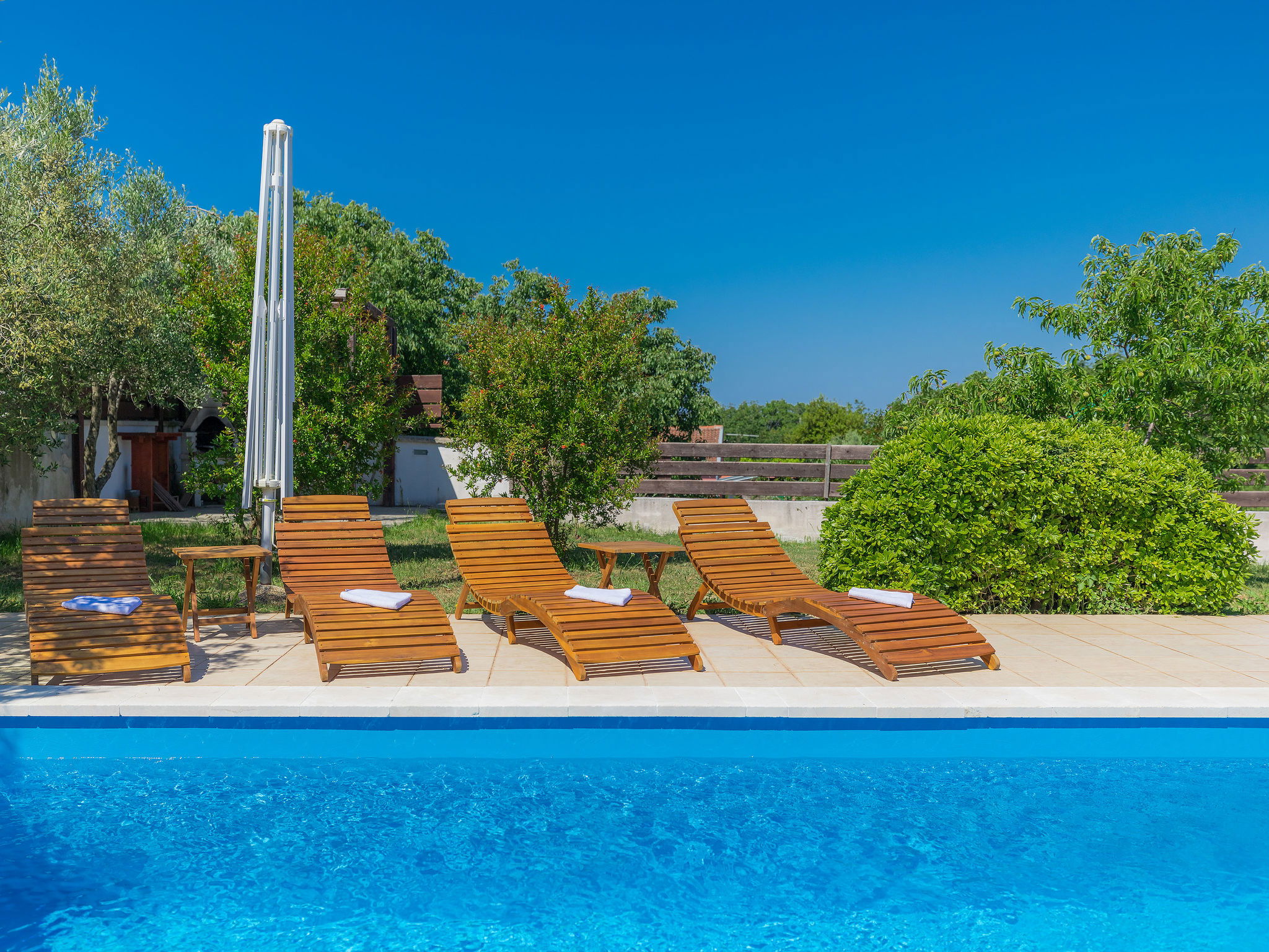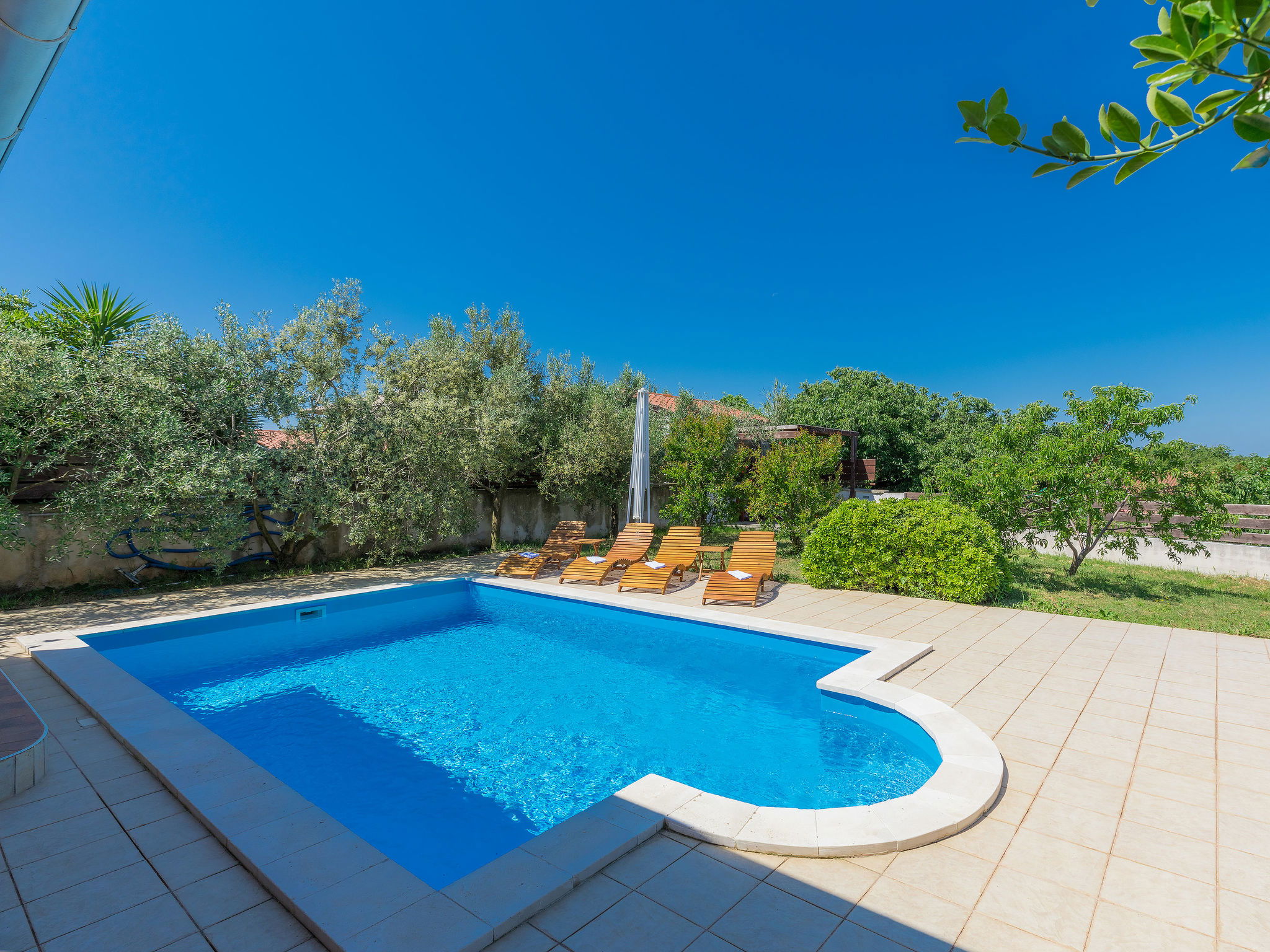 Single-family house "Cherry". 800 m from the centre of Ližnjan, 3 km from the centre of Medulin, 10 km from the centre of Pula, 1.5 km from the sea, 1.5 km from the beach. Private: property 600 m2 (fenced) with lawn, swimming pool (6 x 4 m, depth 130 cm, seasonal availability: 01.May. - 07.Oct.). Outdoor shower, barbecue. In the house: internet access, washing machine, tumble dryer. Motor access to the house (150 m via unmade road). Parking (for 2 cars) on the premises. Shop 300 m, restaurant 400 m, bus stop 900 m, pebble beach 1.5 km, rocky beach 1.5 km. Marina 13 km. Please note: the owner lives on the same property.