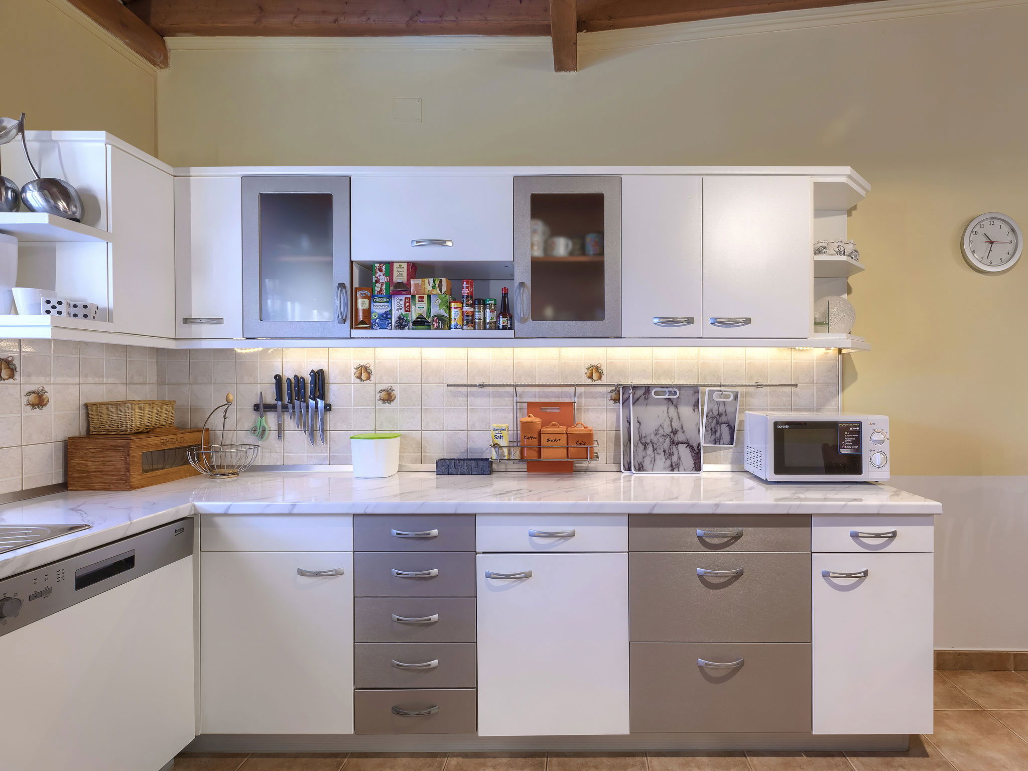 3-room house 116 m2. Living/dining room with 1 double sofabed, satellite TV and air conditioning. Exit to the terrace. 1 room with 1 double bed. 1 room with 1 french bed. Open kitchen (1 hot plate, oven, dishwasher, 3 gas rings, toaster, kettle, microwave, freezer, electric coffee machine). Bath/WC, sep. WC. Gas heating. Terrace 20 m2, roofed. Terrace furniture, deck chairs. Facilities: iron. Internet (WiFi, free). Maximum 2 pets/ dogs allowed. KLASA:UP/I335-03/20-01/384 RED.BROJ 6878