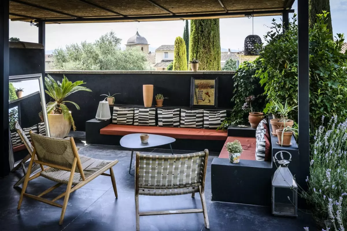 A shaded garden, a pergola with Moroccan lounge area and a gas griddle are perfect for convivial meals.