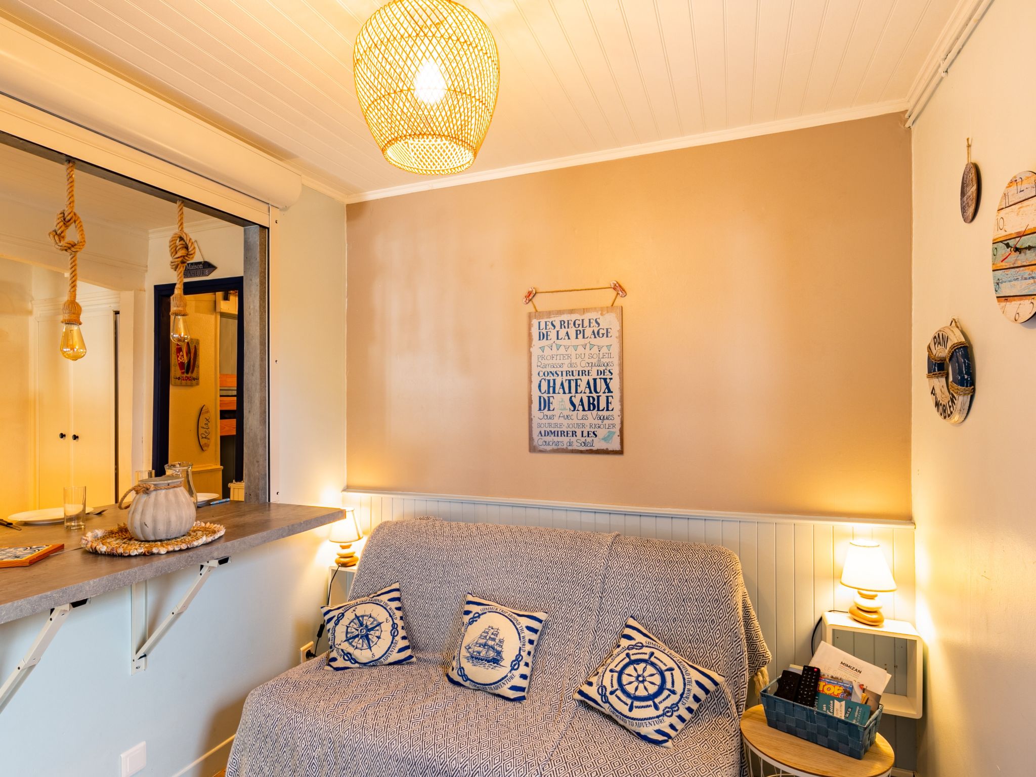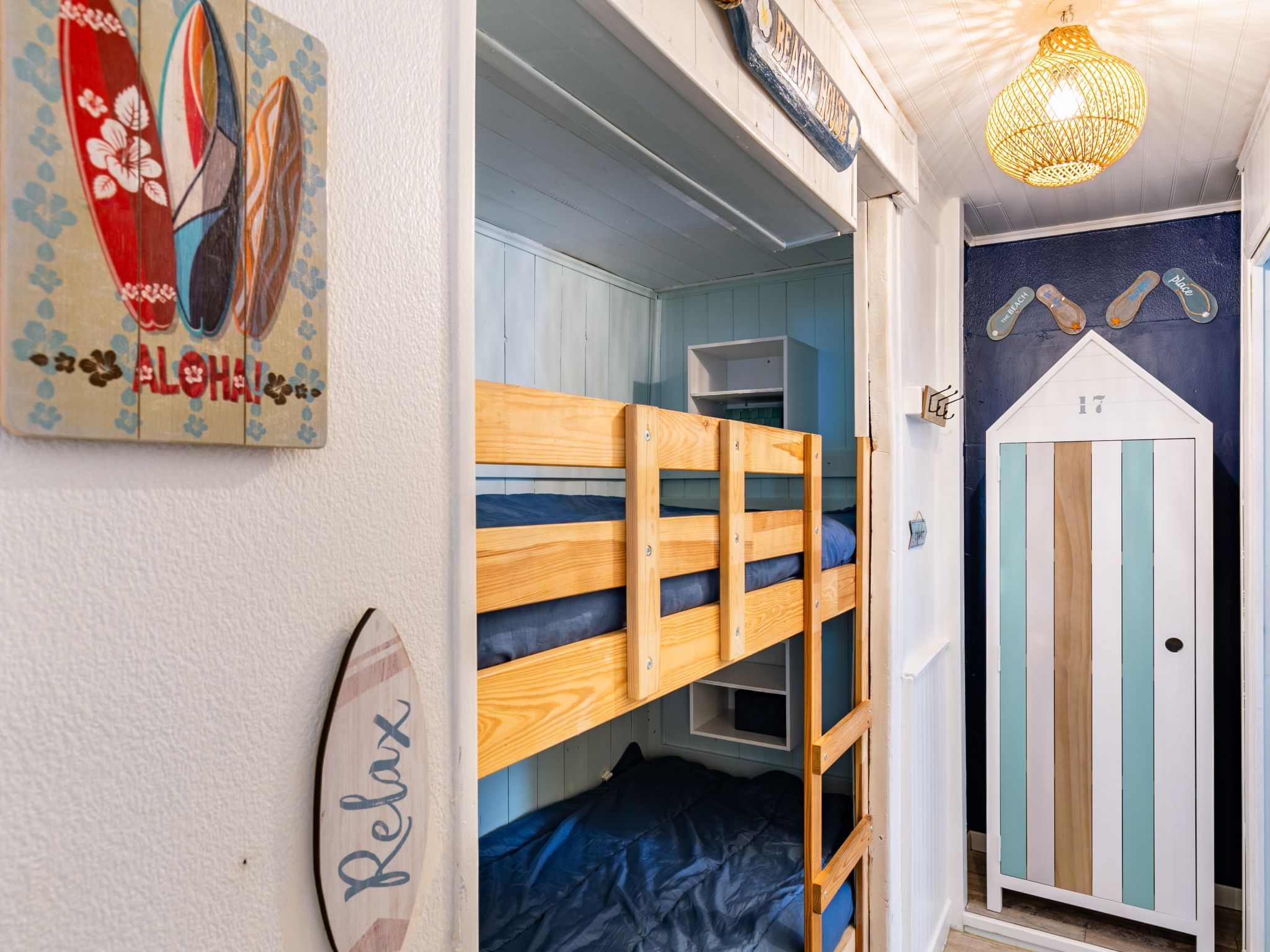 "Agur", 3-room terraced house 37 m2, on the ground floor. Comfortable and beautiful furnishings: lounge with 1 double sofabed (1 x 140 cm, length 190 cm), TV and international TV channels (flat screen). 1 room with 1 french bed (160 cm, length 200 cm), TV (flat screen). Sleeping alcove with 1 x 2 bunk beds (90 cm, length 190 cm). Open kitchen (dishwasher, 1 induction hot plates, 3 gas rings, toaster, kettle, microwave, electric coffee machine) with hatch. 2 showers/WC. Electric heating. Terrace furniture. Facilities: washing machine, iron, children's high chair, baby cot. Internet (WiFi). Parking space n 10 accès délicat (1 car). Please note: non-smoking house. 1 small pet/ dog allowed. Instead of an enclosed bedroom, some sleeping areas are located in an open-plan area (gallery, alcove, etc.).