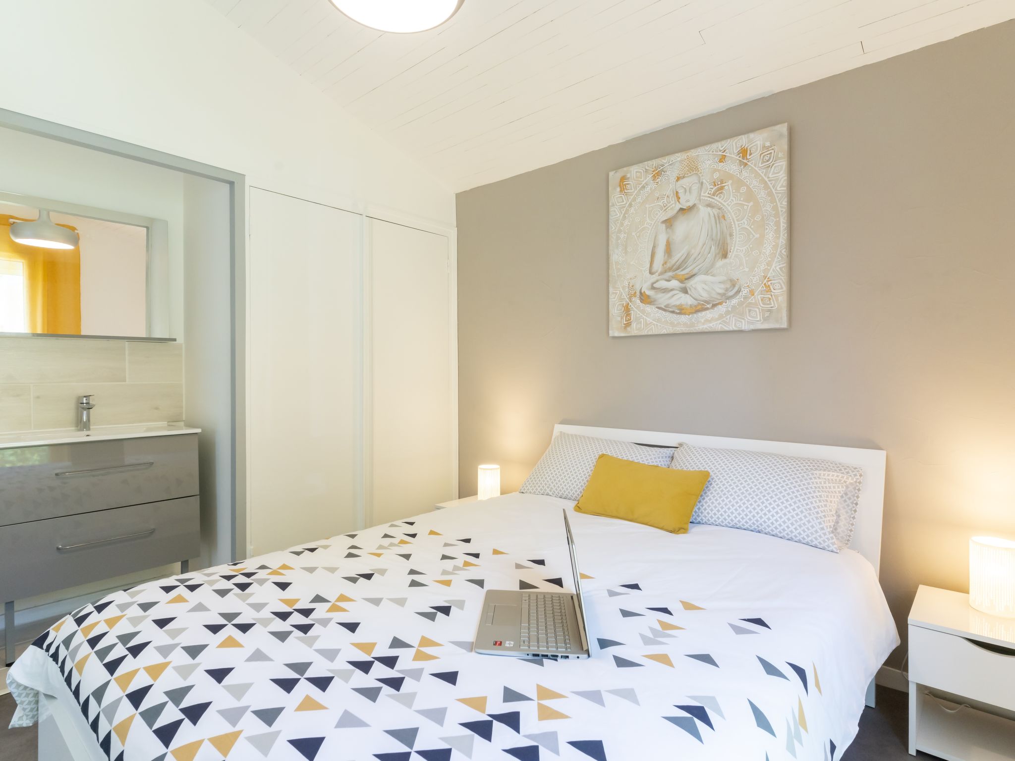 4-room house 90 m2. Modern furnishings: living/dining room with TV and international TV channels (flat screen). Exit to the garden, to the terrace. 1 room with 1 french bed (1 x 140 cm, length 190 cm), hand-basin. 1 room with 1 french bed (1 x 140 cm, length 190 cm). 1 room with 1 french bed (1 x 160 cm, length 200 cm). Open kitchen (4 hot plates, oven, dishwasher, toaster, microwave, freezer, electric coffee machine, Capsules for coffee machine (filtre) extra) with electric heating. Shower, sep. WC. Large terrace 20 m2, large garden 400 m2, south facing position and west facing position. Terrace furniture, barbecue. Facilities: washing machine, iron, baby cot, hair dryer. Internet (WiFi, free). Parking. Please note: non-smoking house. 1 small pet/ dog allowed. Smoke alarm. 899082754