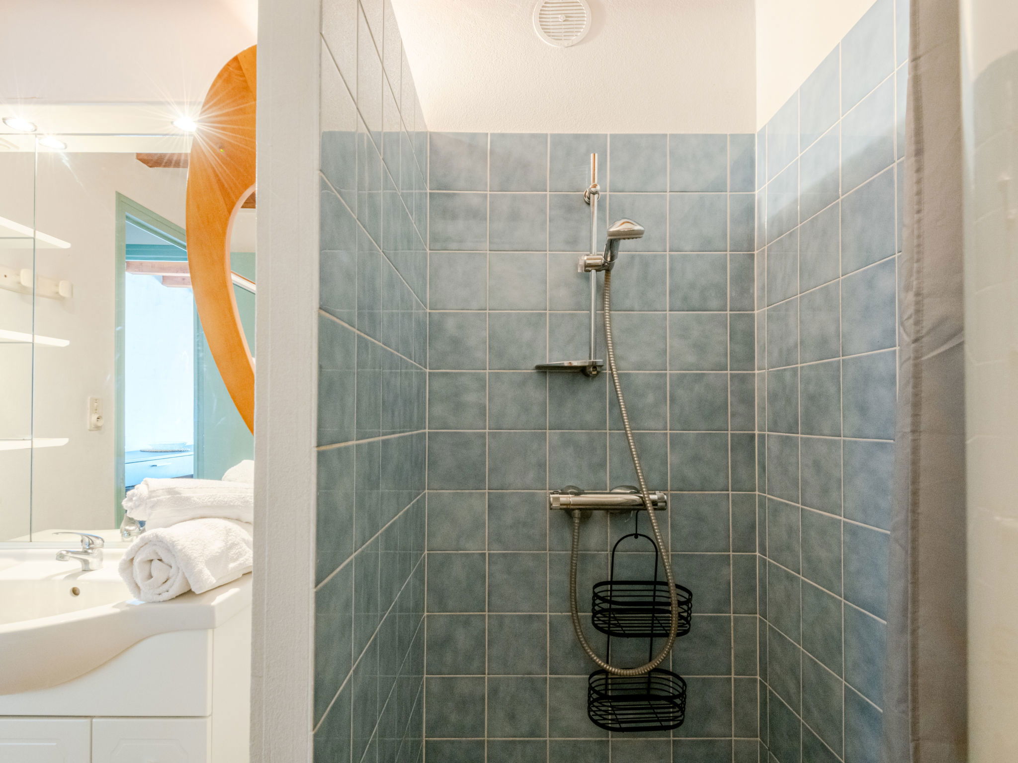 3-room terraced house 50 m2 on 2 levels. Simple and rustic furnishings: living/dining room with TV and international TV channels (flat screen). Exit to the terrace. Kitchenette (1 hot plate, mini-oven, oven, 4 gas rings, toaster, kettle, microwave, electric coffee machine, Capsules for coffee machine (filtre)). Shower, sep. WC. Heating not available in all rooms. Upper floor: 1 room with sloping ceilings with 2 beds (90 cm, length 190 cm). 1 room with sloping ceilings with 1 bed (90 cm, length 190 cm), 1 french bed (1 x 140 cm, length 190 cm). Terrace. Terrace furniture, deck chairs (1). Facilities: Internet (WiFi, free). Please note: maximum 1 pet/ dog allowed. Smoke alarm.