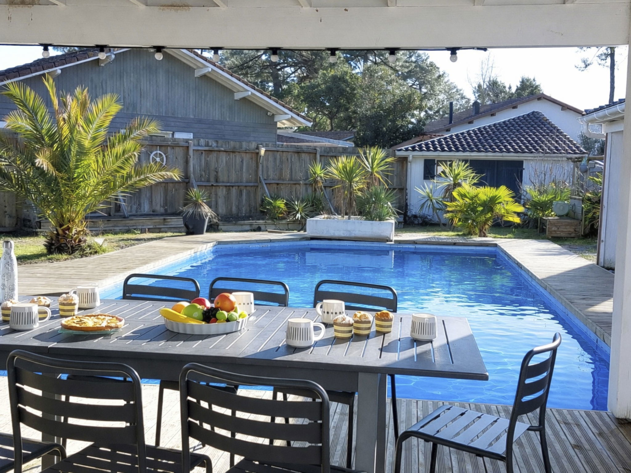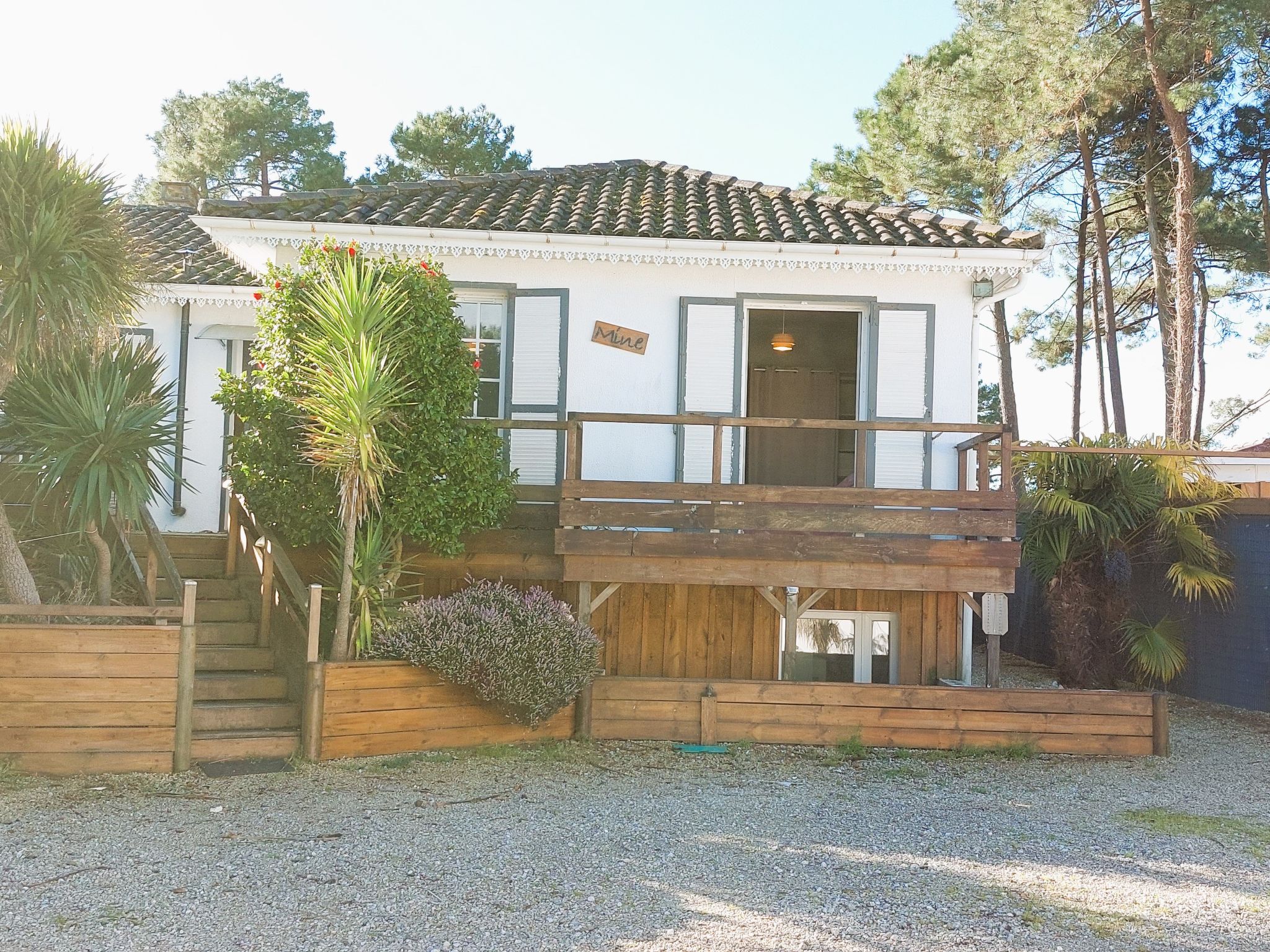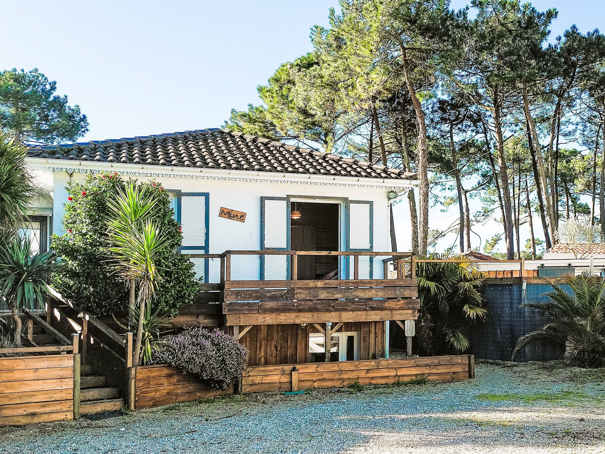 Single-family house. 200 m from the edge of the forest, 900 m from the sea, 10 km from the lake, 900 m from the beach, in a cul-de-sac. Private: property (fenced), swimming pool (10 x 5 m, depth 150 - 150 cm, seasonal availability: 01.Jun. - 30.Sep.). Shop 600 m, grocery, supermarket, bakery, pedestrian zone 900 m, bus stop "Office de tourisme" 900 m, railway station "Labouheyre" 30 km, sandy beach "sud digue" 900 m. Golf course (9 hole) 10 km, surf school 900 m, riding stable 10 km. Nearby attractions: Arcachon 70 km, Biscarrosse 35 km, Casino Mimizan Plage 2.5 km, Marqueze 40 km.