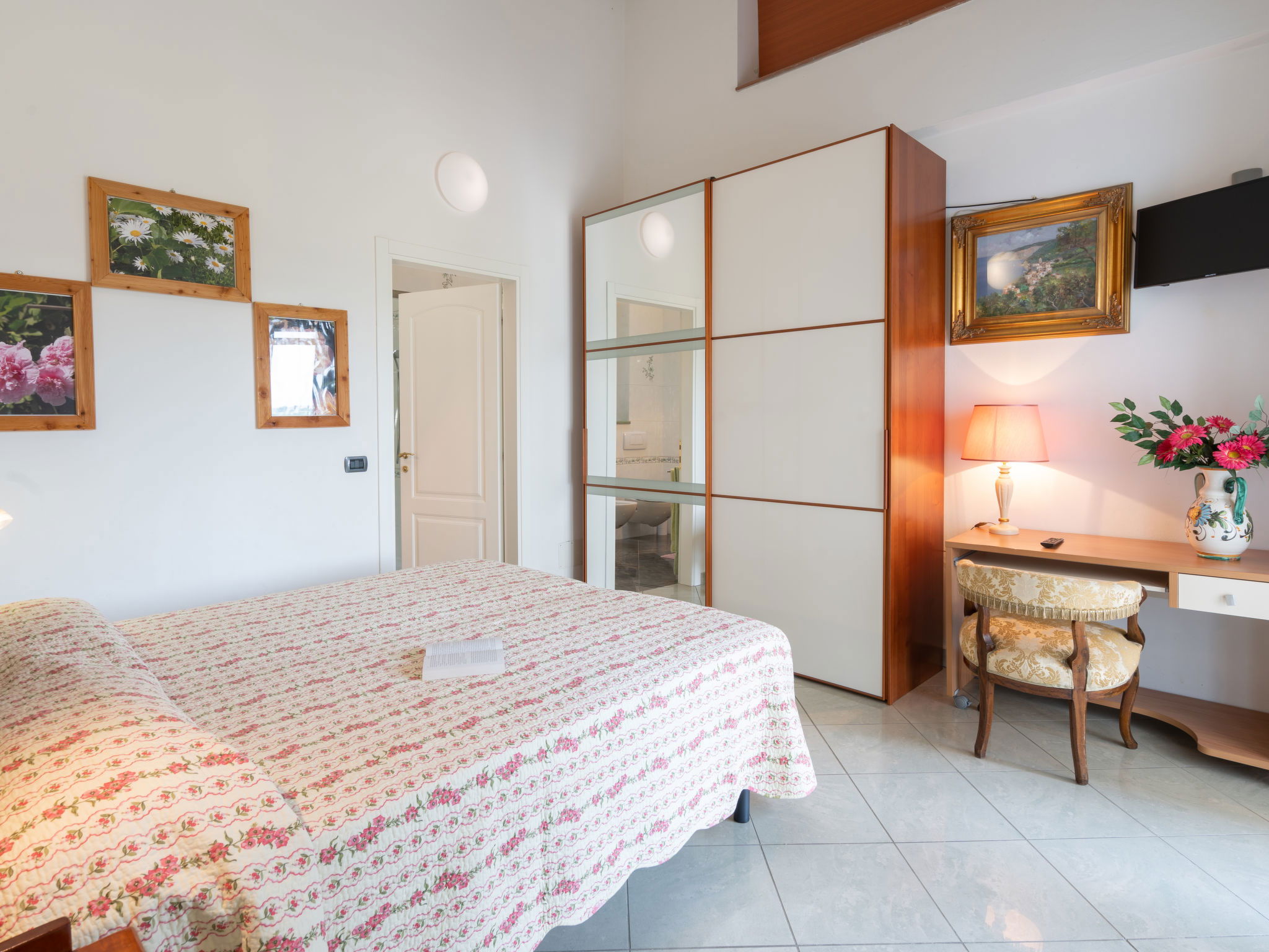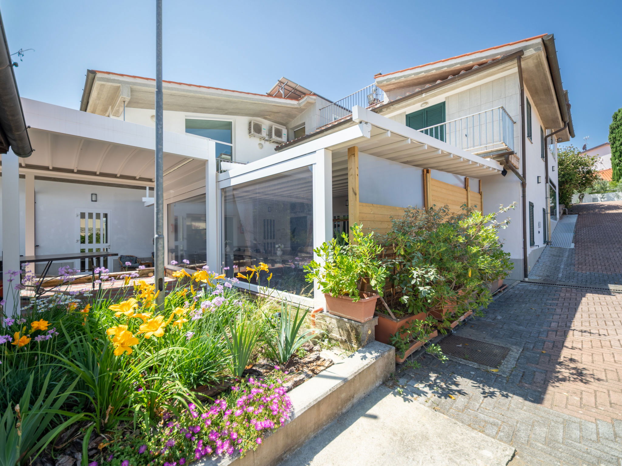 "La Rosa per 9 pax", 5-room semi-detached house 200 m2 on 2 levels, on the ground floor. Entrance hall. 2 double bedrooms, each room with shower/bidet/WC, digital TV and air conditioning. Kitchen (5 hot plates, oven, dishwasher, microwave, freezer) with dining table, digital TV and air conditioning. Shower/bidet/WC. Upper floor: large living room with digital TV. Exit to the terrace. 1 double bedroom with shower/bidet/WC and air conditioning. 1 room with 3 beds, digital TV and air conditioning. Shower/bidet/WC. Terrace furniture, barbecue. Panoramic view of the countryside. Facilities: washing machine. Internet (WiFi, free). Suitable for families. Maximum 2 pets/ dogs allowed. IT048028B4MRCE4JE3