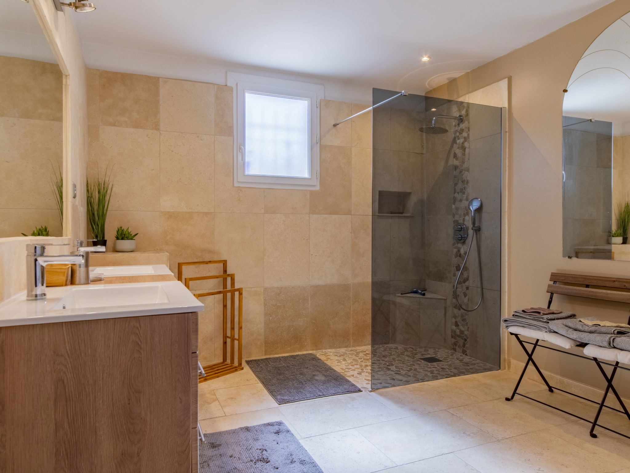 Villa "A l'Ombre du Soleil". On the outskirts, in a quiet position, 110 km from the sea, 6 km from the lake, 110 km from the beach. Private: garden 2'500 m2 (fenced), swimming pool fenced (4 x 8 m, depth 140 - 160 cm, seasonal availability: 01.May. - 30.Sep.). Unconventional pool shape. Paddling pool, parking (for 4 cars). Carport. Shop, grocery 700 m, supermarket 3.7 km, restaurant 3.2 km, bakery 2.4 km, bus stop 3.9 km, railway station 3.9 km, sandy beach "La Grande Motte" 110 km, thermal baths 6.5 km. Sports harbour 50 km, golf course (18 hole) 19 km, tennis 2.4 km, riding stable 7.5 km. Nearby attractions: Avignon 24 km, L'Isle Sur La Sorgue 13 km, Cavaillon 24 km, Parc Spirou 6 km, Grottes de Thouzon 10 km, Parc Aquatique Wave Island 6 km. Well-known ski regions can easily be reached: Station du Mont Serein 41 km. Well-known lakes can easily be reached: Lac de Monteux 6 km, Lac du Paty 21 km. Hiking paths: Via Ferrata de Cavaillon 24 km, Parc Naturel Régional du Mont Ventoux 27 km, Parc Régional du Luberon 25 km. The owner does not accept any youth groups. Residence with electric gates.