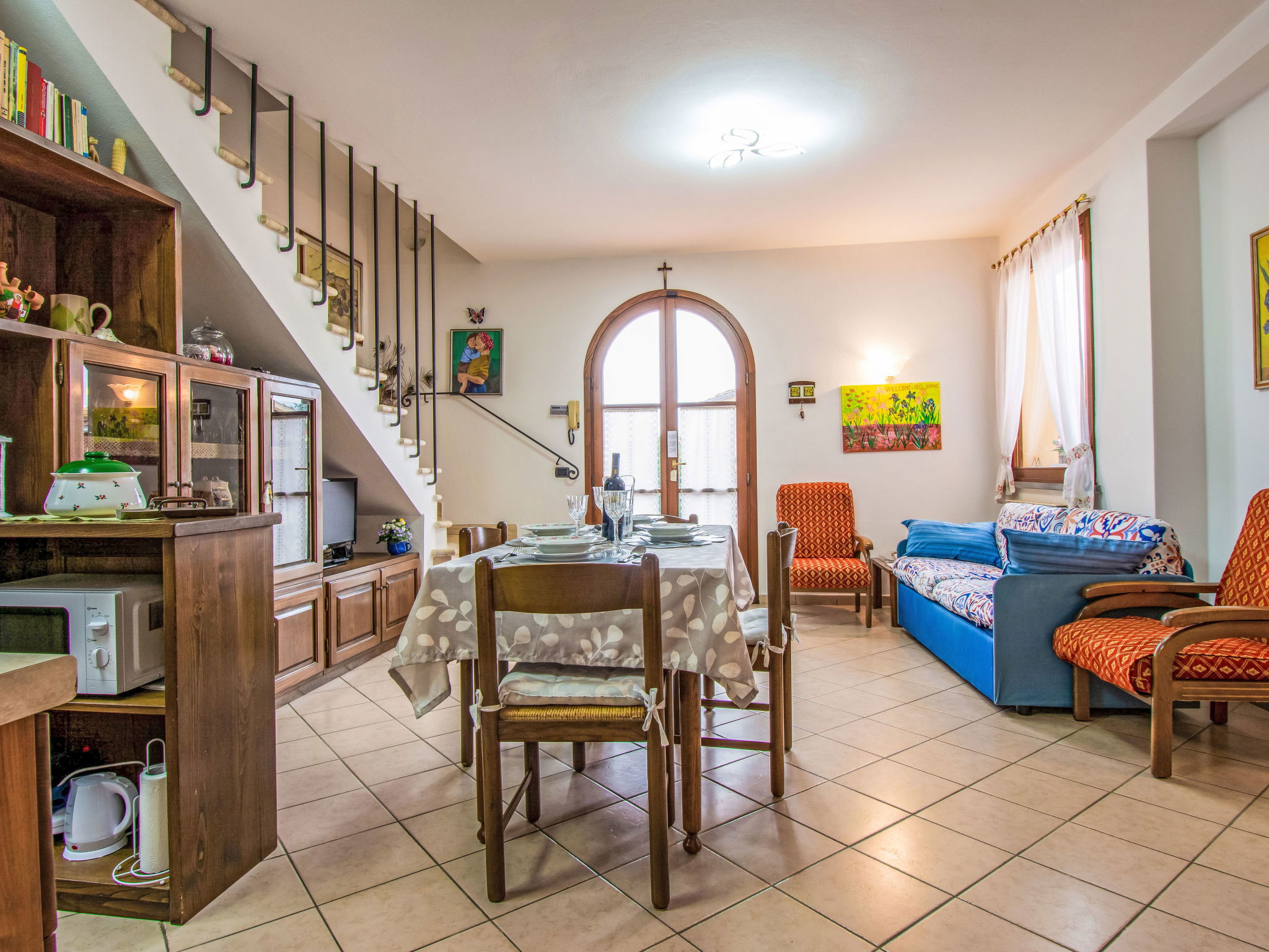 "Delfina", 4-room house 85 m2. Comfortable and cosy furnishings: living room with TV. Exit to the garden. 1 room with 1 double bed and air conditioning. Kitchen (4 hot plates, oven, dishwasher, toaster, kettle, microwave, electric coffee machine). Shower/bidet/WC. Upper floor: 1 room with 1 double bed, TV and air conditioning. Bath/bidet/WC. Porch. Barbecue, deck chairs. Facilities: washing machine, mosquito net, children's high chair, baby cot, hair dryer. Internet (WiFi, free). Please note: maximum 1 small pet/ dog allowed. Smoke alarm, fire extinguisher. IT050022C2EL2GZHX9