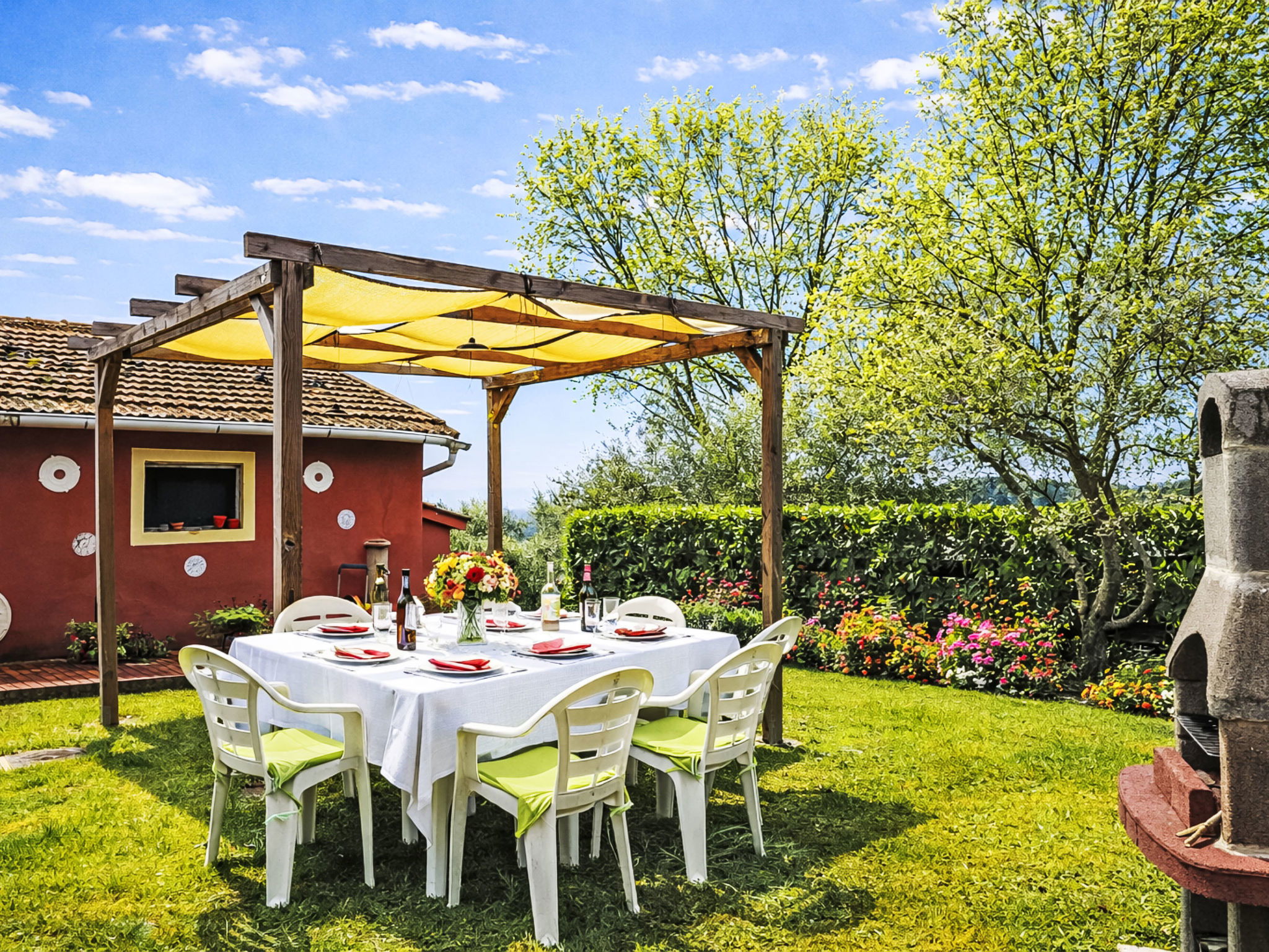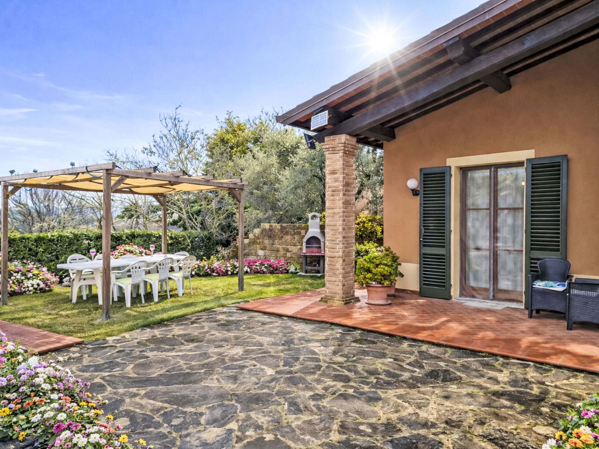 Cosy, comfortable single-family house "Delfina", 98 m a.s.l., 2 storeys. In the district of Marti 5 km from the centre of Montopoli in Val d' Arno, in a quiet position in the residential district. Private: natural state property 3'000 m2 (fenced), natural garden 70 m2 (fenced), swimming pool (5 x 10 m, depth 120 - 220 cm, seasonal availability: 15.Apr. - 15.Oct.) with salt-electrolysis pool-cleaning system. Arbour, garden furniture. In the house: air conditioning, washing machine, heating available only from 15.Nov. - 15.Apr.. Parking on the premises. Grocery 2 km, supermarket 4 km, restaurant 1 km, bus stop 600 m, railway station 4 km. Nearby attractions: Pisa 38 km, Firenze 58 km, Lucca 48 km, Forte dei Marmi 70 km, Siena 85 km, San Gimignano 45 km. Please note: baby equipment on request (included). The owner lives on the same property.
