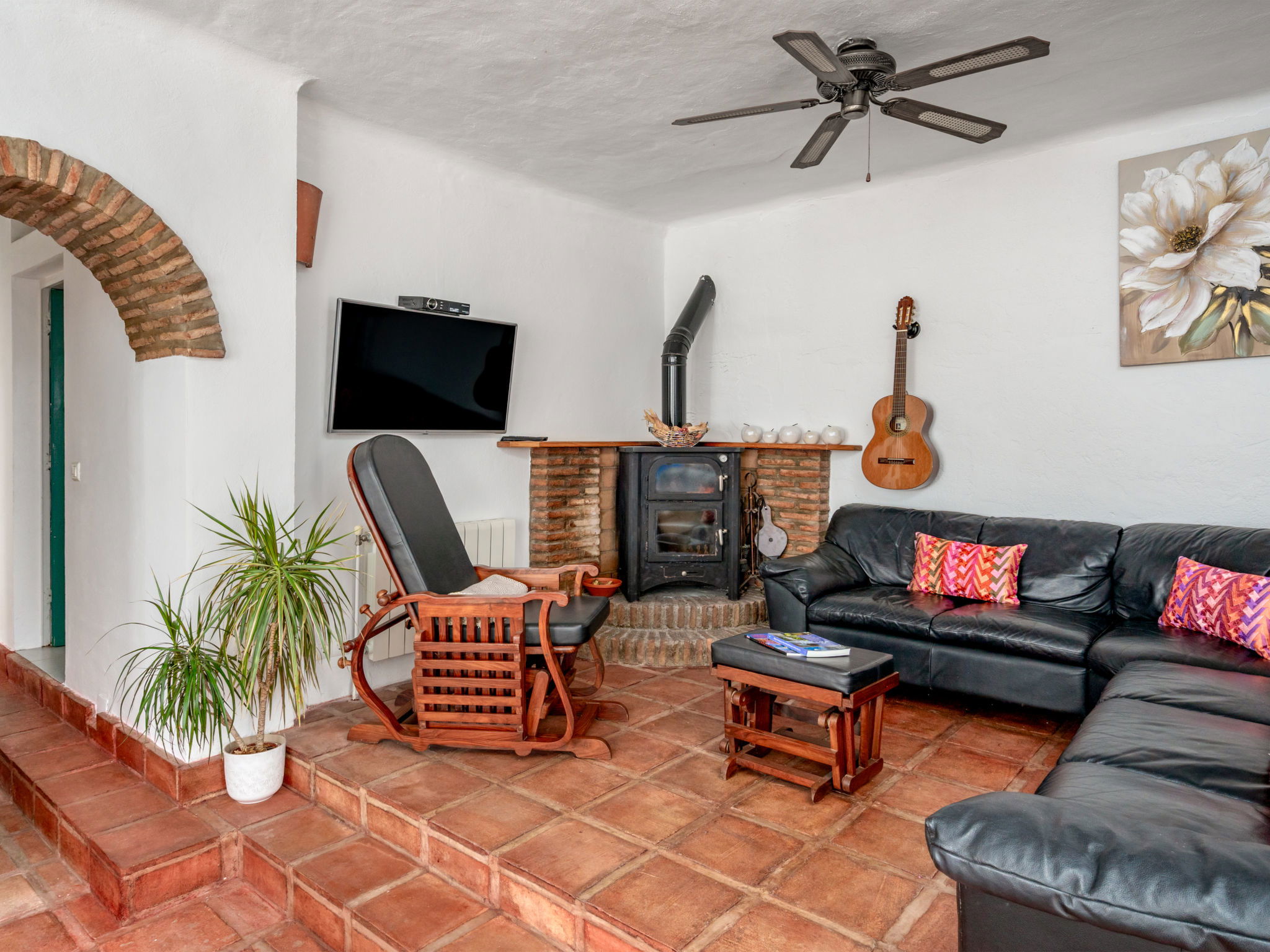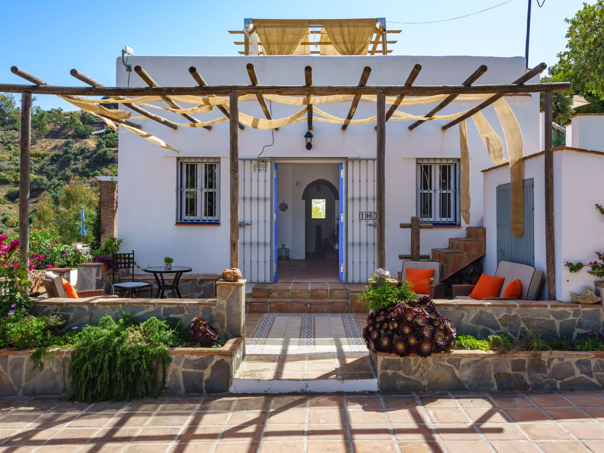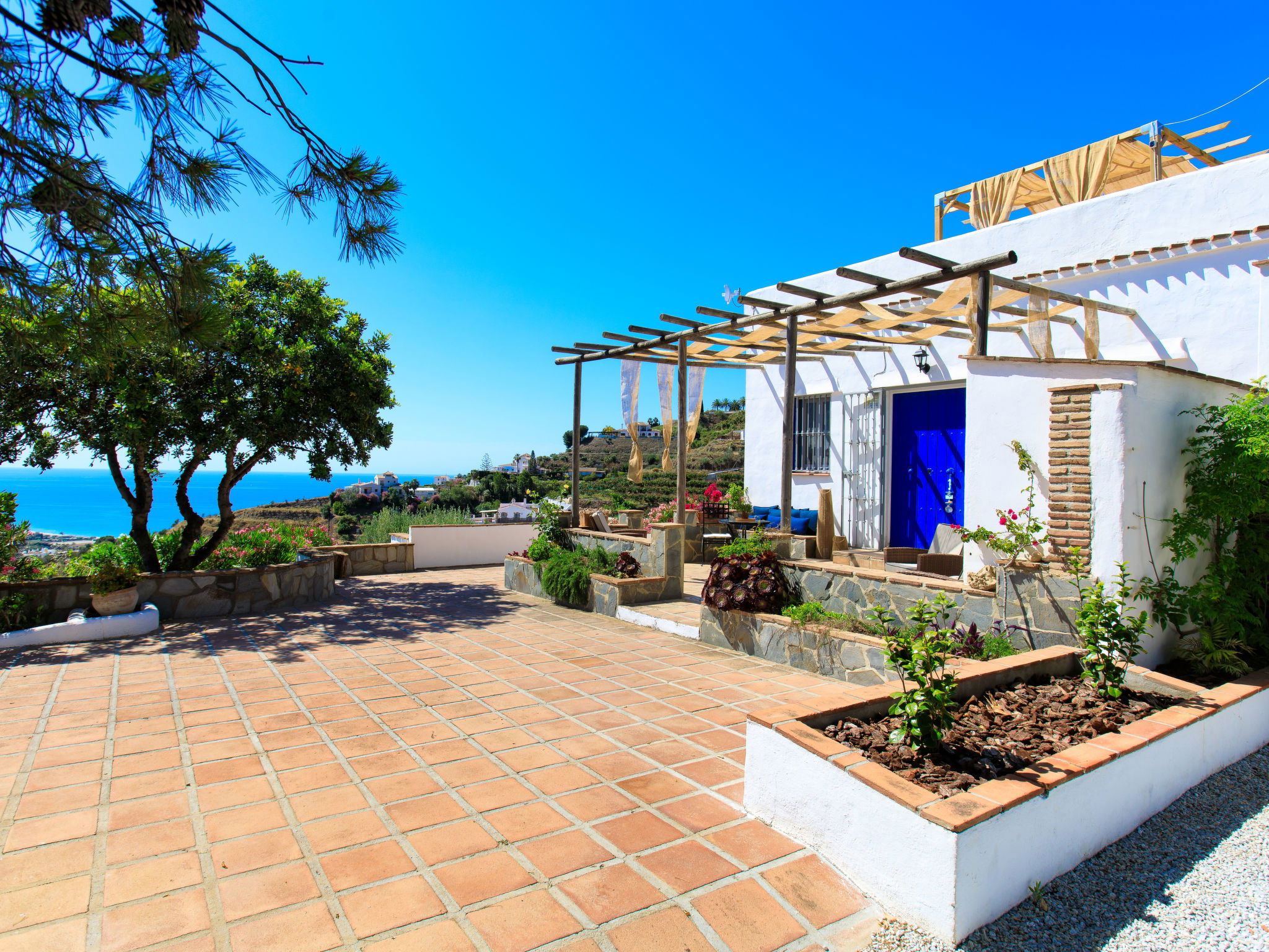 Beautiful, comfortable cottage "Camelia Blanca", surrounded by trees and fields. Outside the resort, 4 km from the centre of Nerja, 4 km from the sea, 4 km from the beach. Private: large terraced garden, orchard 2'000 m2. Outdoor shower, hot tub, pool house with WC, arbour, pergola, barbecue, parking (for 3 cars). Shop 4 km, grocery 4 km, shopping centre 23 km, restaurant 40 km, bakery 4 km, bus stop "Torrox" 4 km, railway station "Malaga" 55 km, ferry "Malaga" 50 km, pebble beach "Playazo" 3.5 km, diving center 4 km. Sports harbour 17 km, golf course (17 hole) 23 km. Nearby attractions: Frigiliana, Competa, Maro, Cuevas de Nerja, Torre del Mar, Almuñecar. Well-known ski regions can easily be reached: Sierra Nevada. Hiking paths: Sierra Almijara, Sierra Tejeda. Please note: car recommended. The owner does not accept any youth groups. Loading and unloading of baggage is possible at the holiday house.