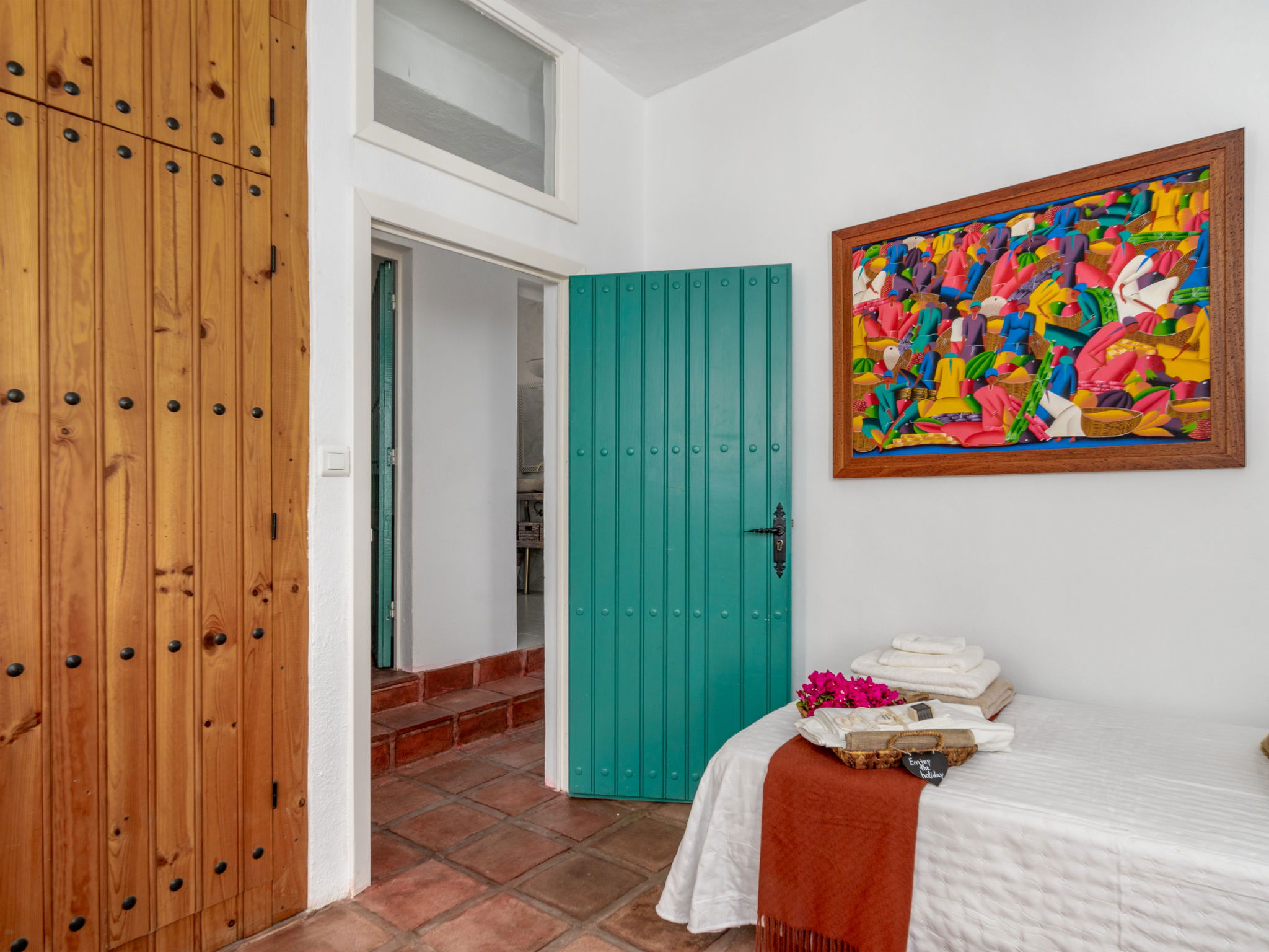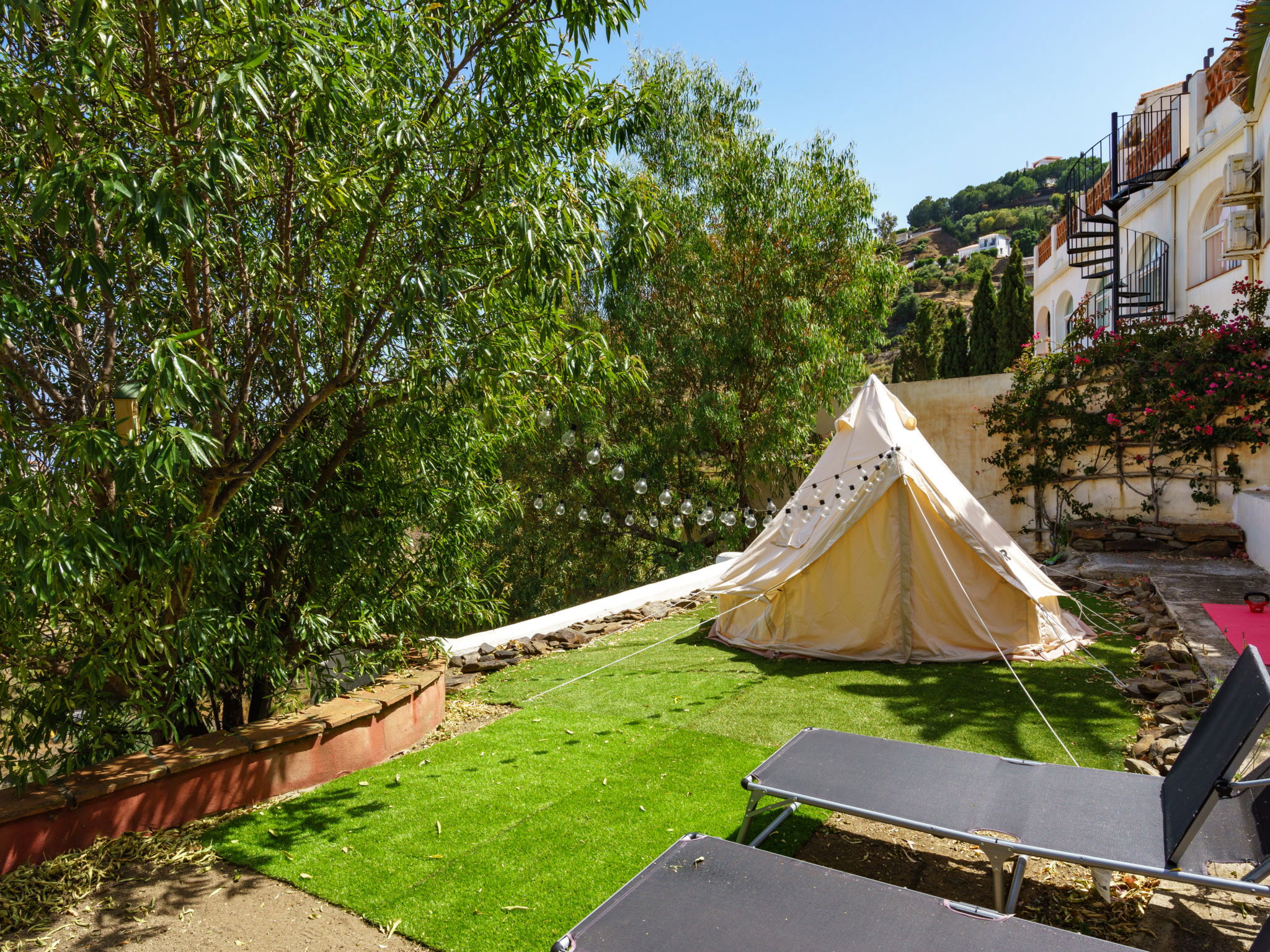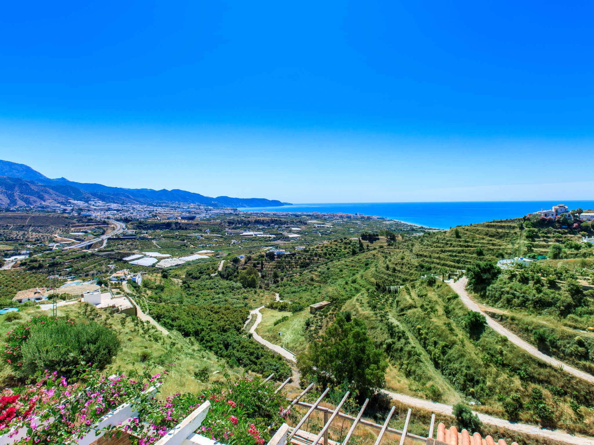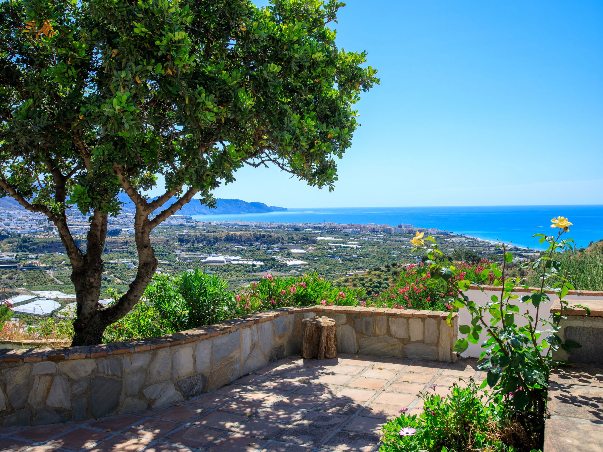 Beautiful, comfortable cottage "Camelia Blanca", surrounded by trees and fields. Outside the resort, 4 km from the centre of Nerja, 4 km from the sea, 4 km from the beach. Private: large terraced garden, orchard 2'000 m2. Outdoor shower, hot tub, pool house with WC, arbour, pergola, barbecue, parking (for 3 cars). Shop 4 km, grocery 4 km, shopping centre 23 km, restaurant 40 km, bakery 4 km, bus stop "Torrox" 4 km, railway station "Malaga" 55 km, ferry "Malaga" 50 km, pebble beach "Playazo" 3.5 km, diving center 4 km. Sports harbour 17 km, golf course (17 hole) 23 km. Nearby attractions: Frigiliana, Competa, Maro, Cuevas de Nerja, Torre del Mar, Almuñecar. Well-known ski regions can easily be reached: Sierra Nevada. Hiking paths: Sierra Almijara, Sierra Tejeda. Please note: car recommended. The owner does not accept any youth groups. Loading and unloading of baggage is possible at the holiday house.