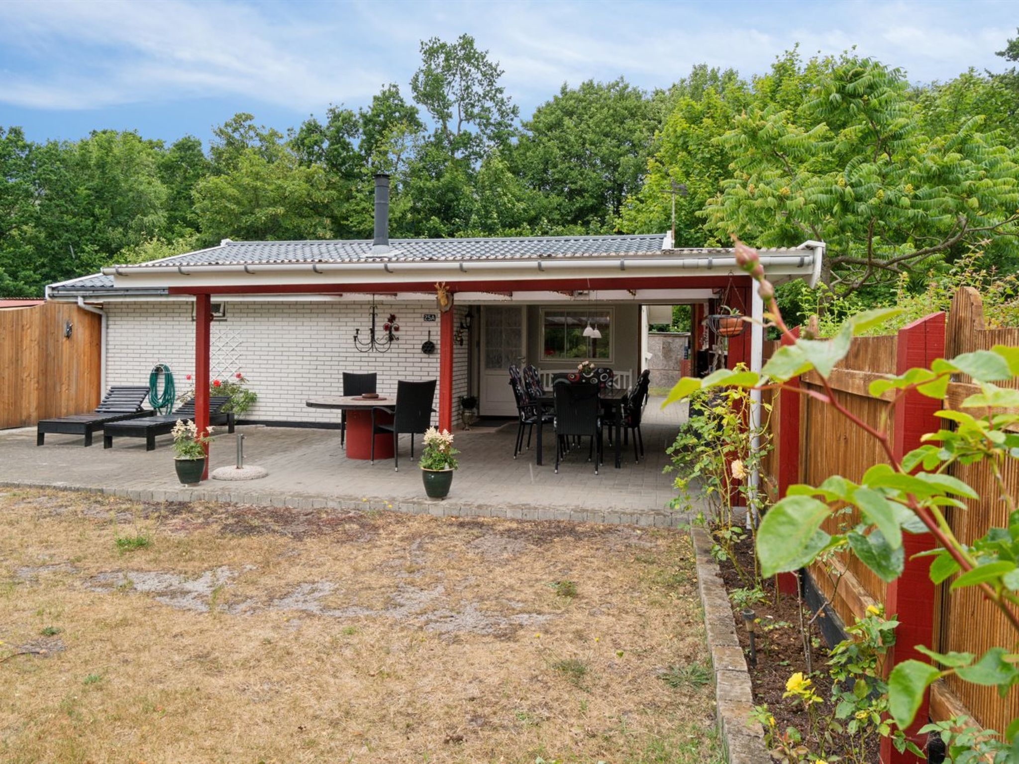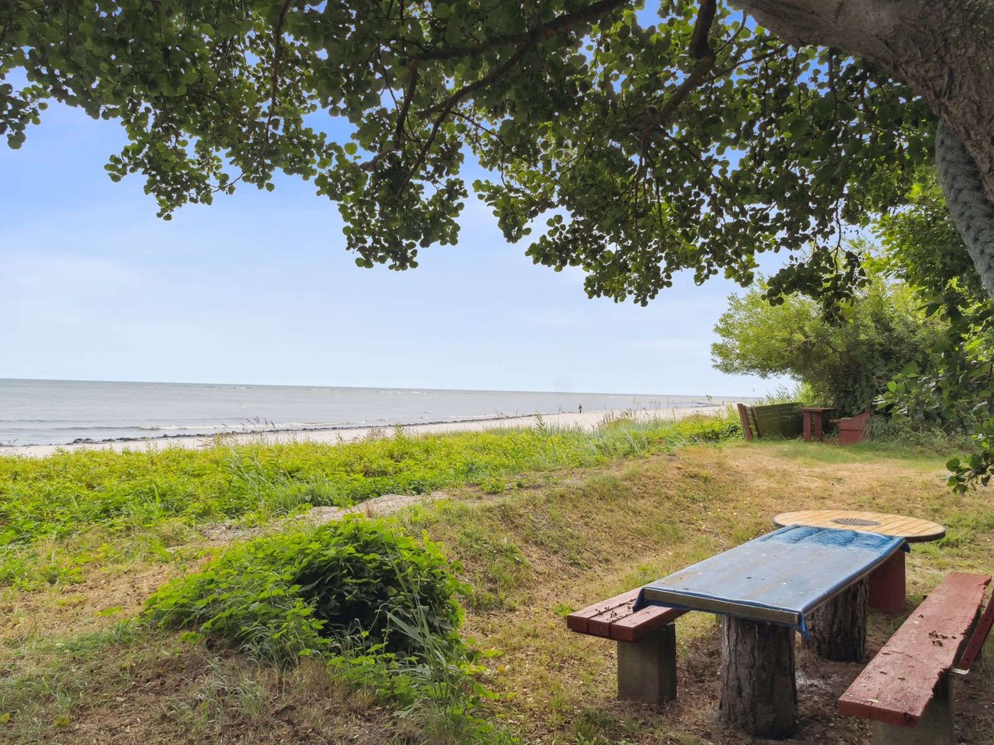 Single-family house, built in 1960. 50 m from the sea. Private: natural state property 200 m2, well-kept garden. Barbecue, children's playground (swing). In the house: trampoline, washing machine, tumble dryer. Parking at the house. E-charging station. Grocery 500 m. Golf course 6 km. The owner does not accept any youth groups.