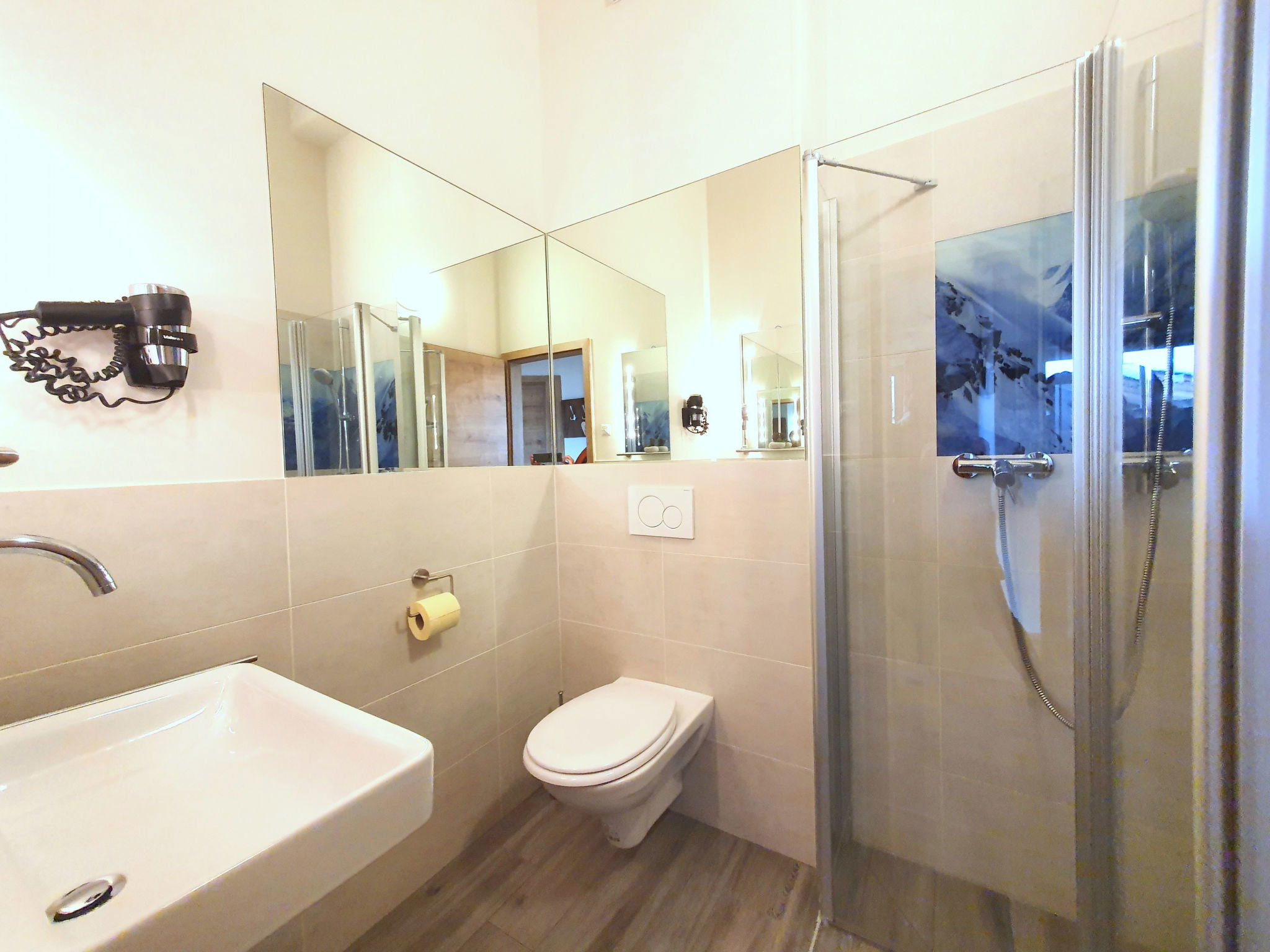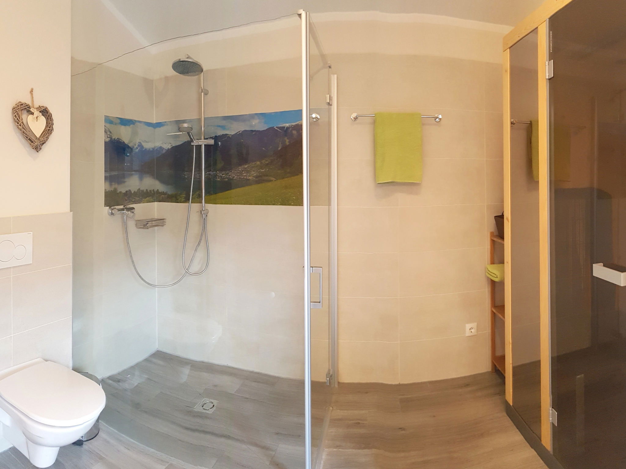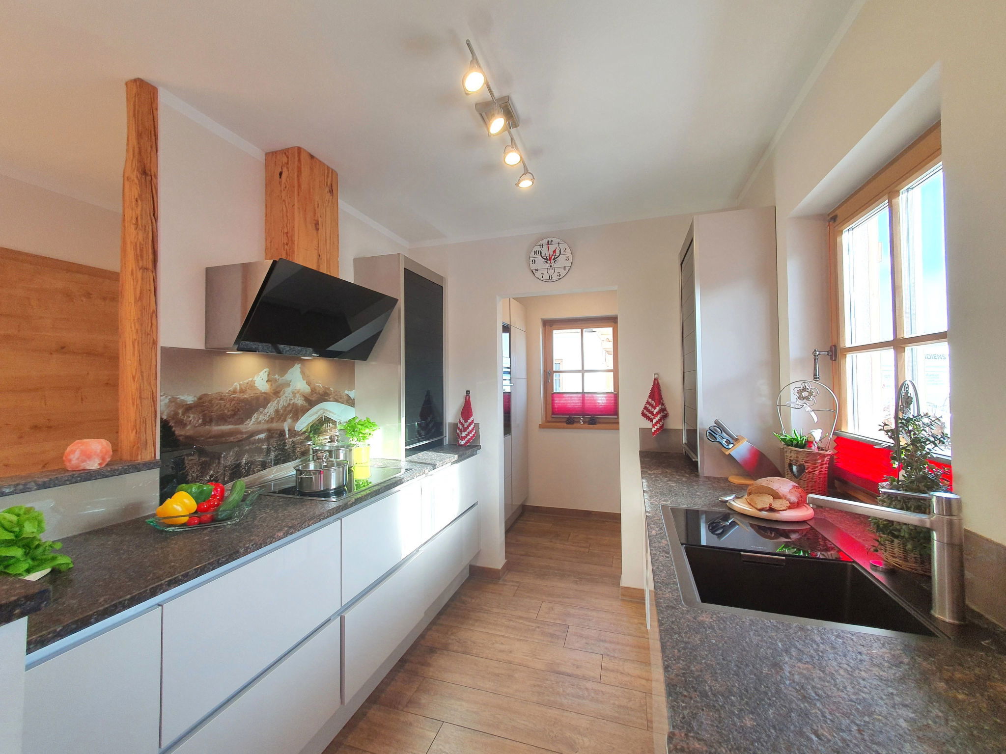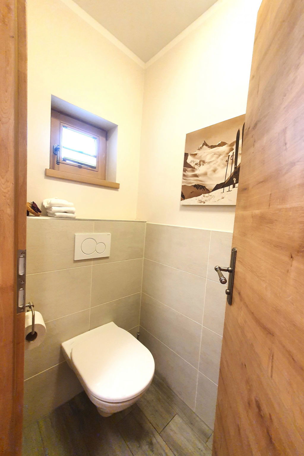 "5_Nid - Chalet Salzburg", 4-room house 110 m2. Object suitable for 8 adults. Living room with 1 sofabed, 1 pull-out bed and TV. 1 room with 1 french bed and TV. 1 room with 1 french bed. 1 room with 1 x 2 bunk beds. Open kitchen (oven, dishwasher, 4 induction hot plates, toaster, kettle, microwave, freezer, electric coffee machine). 2 showers/WC. Balcony, terrace. Barbecue. View of the mountains and the garden. Facilities: washing machine, dryer, iron, hair dryer. Internet (WiFi, free). Parking (2 cars). Please note: non-smokers only. Maximum 3 pets/ dogs allowed. Smoke alarm.