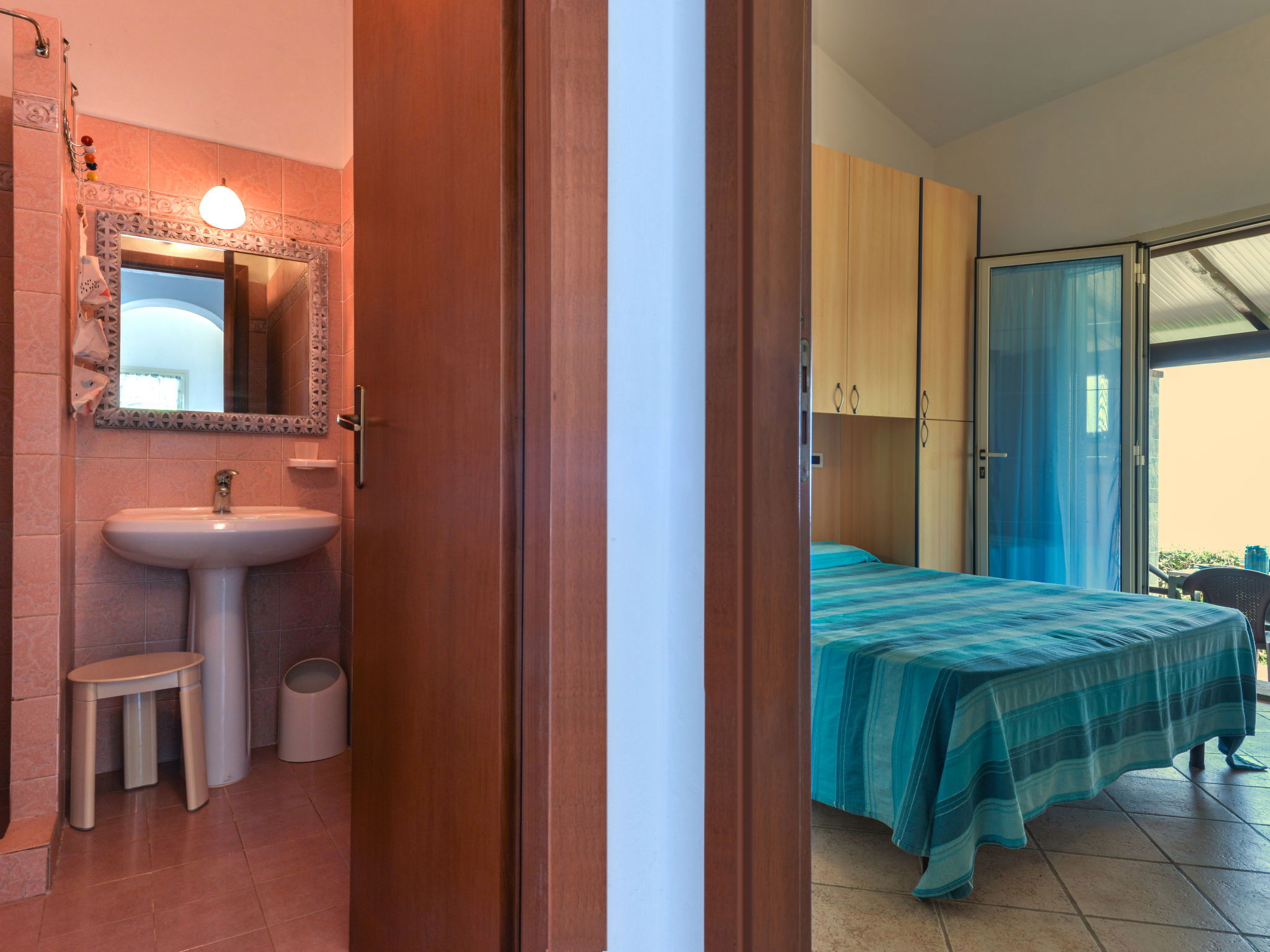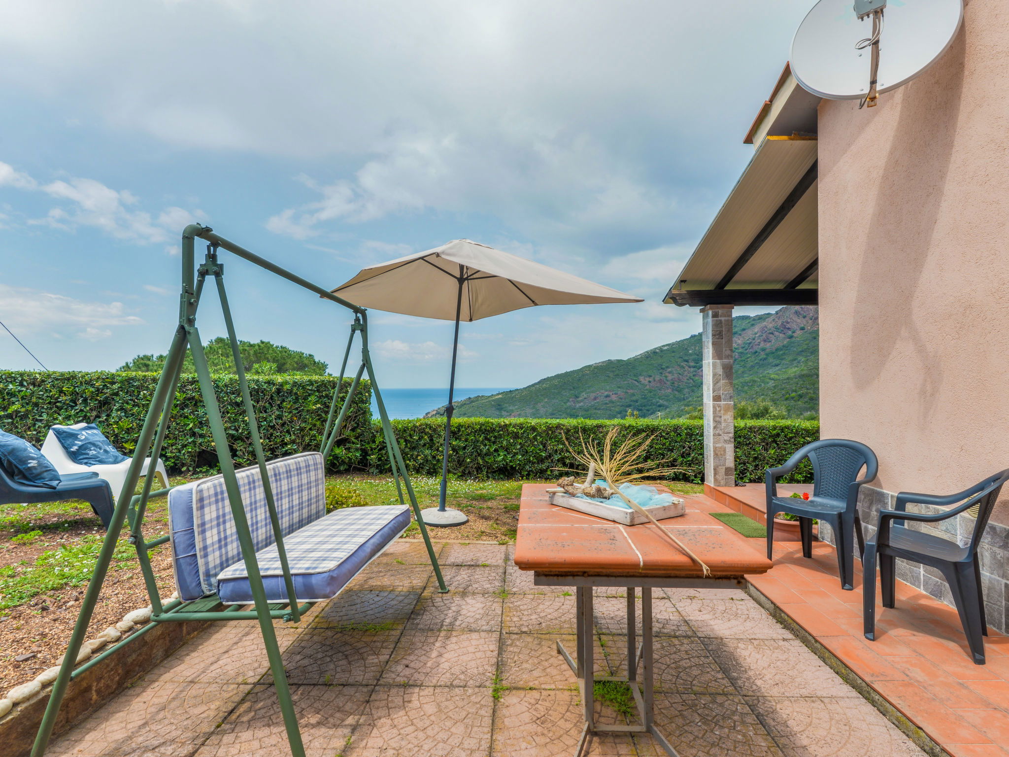 Semi-detached house "La Paradisa", detached, surrounded by trees. 2 houses in the residence. 5 apartments in the residence. 750 m from the centre of Nisportino, 4 km from the centre of Nisporto, 9 km from the centre of Rio Marina, in an elevated position on a slope, 750 m from the sea. For shared use: terraced garden (not fenced) with trees, natural garden. Outdoor shower, barbecue. Steep motor access. 50 m stepped path to the house. Parking at the house at 50 m. Grocery 4 km, restaurant 4 km, bus stop 5 km, ferry "Cavo" 16 km, sandy beach "Nisportino" 750 m. Please note: car recommended. Suitable for families. Groups of teenagers on request only. Loading and unloading of baggage is possible at the holiday house.