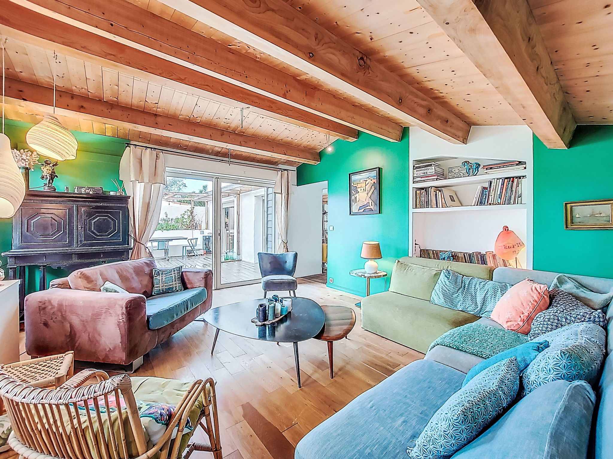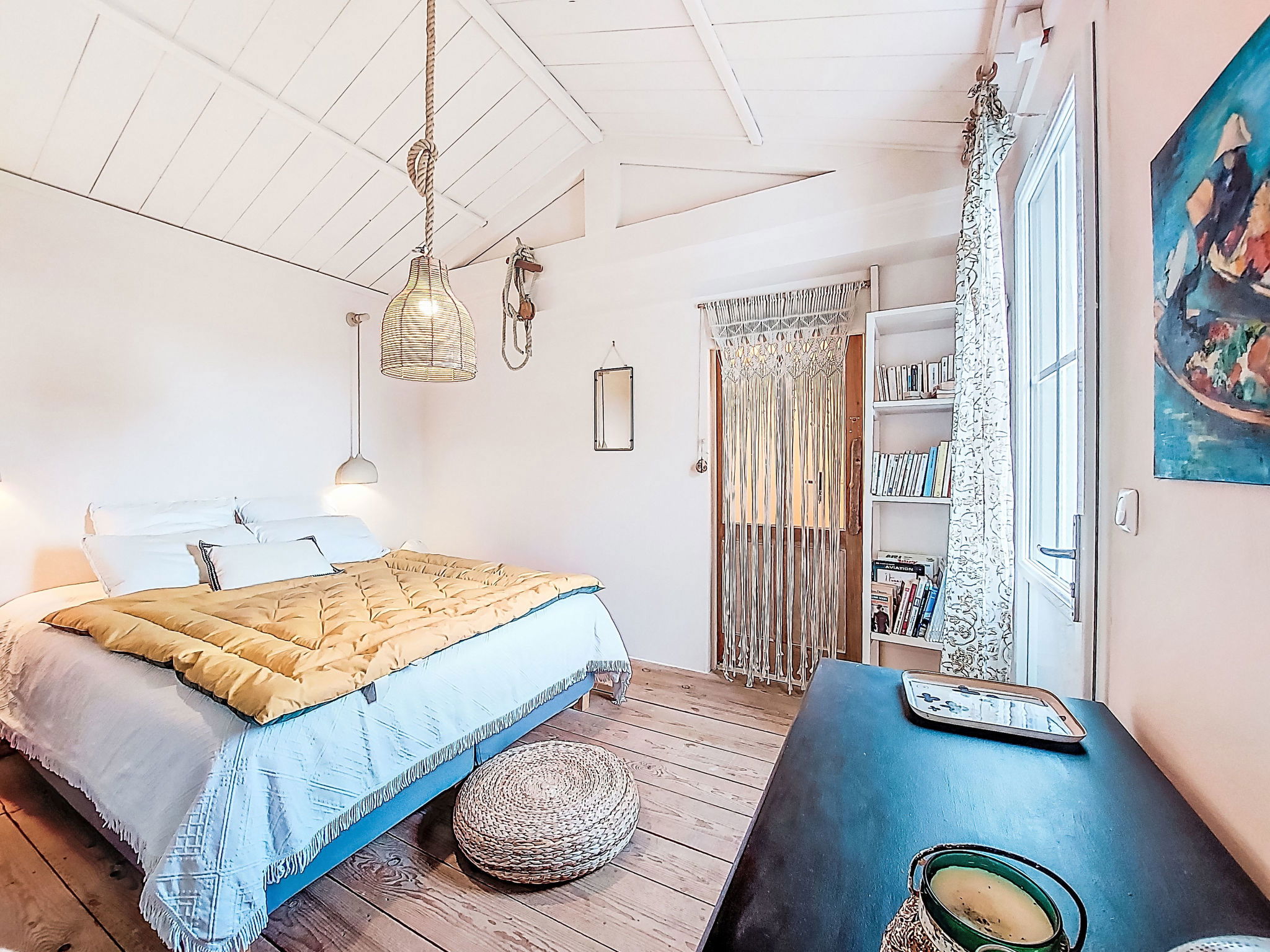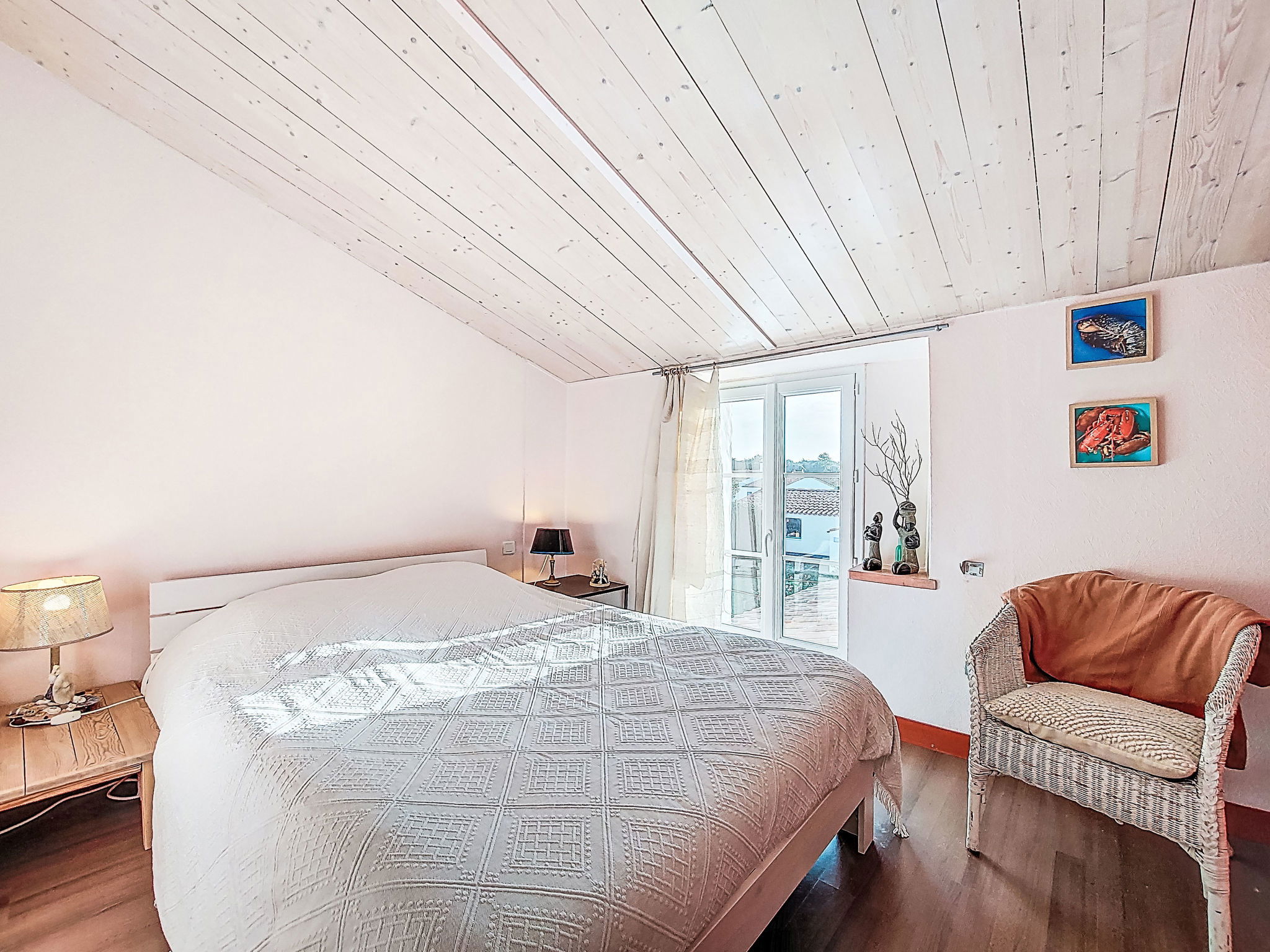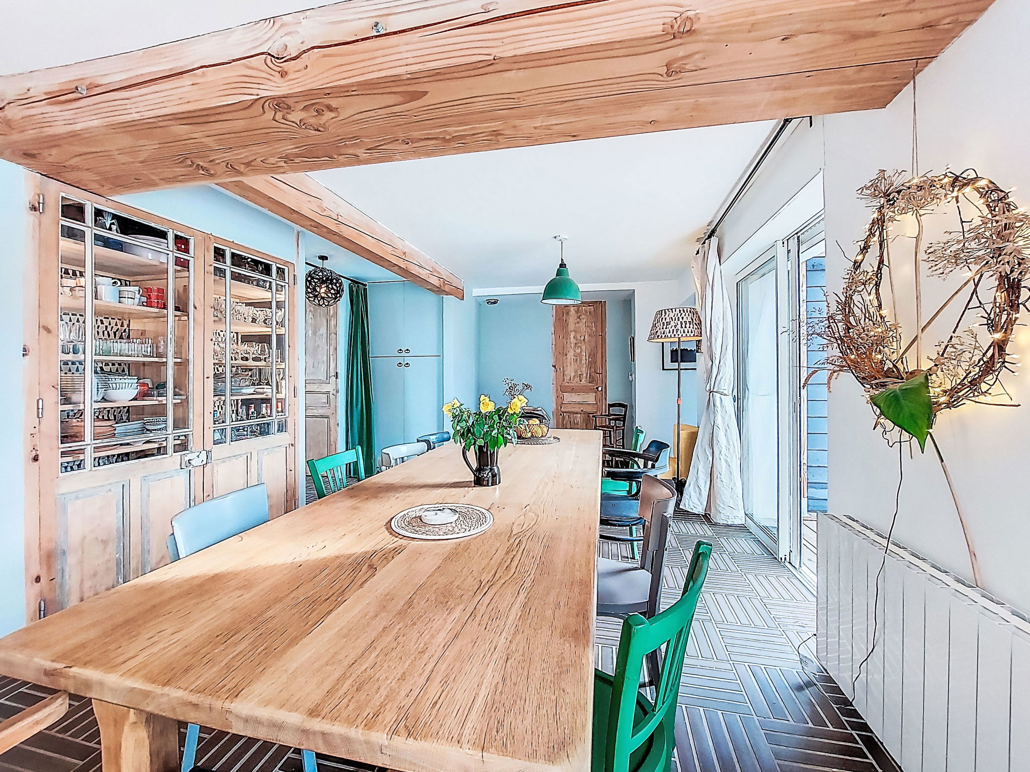 6-room house 165 m2. Renovated, very beautiful furnishings: large living/dining room with Scandinavian wood stove (only for decoration), TV (flat screen). Exit to the terrace. 1 room with 1 french bed (160 cm, length 200 cm), shower/WC. 1 room with 1 french bed (160 cm, length 200 cm), shower. Office. Open kitchen (oven, dishwasher, 5 gas rings, toaster, kettle, microwave, freezer, electric coffee machine). 2 sep. WC's. Upper floor: (exterior staircase) living/sleeping room with 2 beds (90 cm, length 190 cm), kitchen corner. 1 room with sloping ceilings with 1 french bed (140 cm, length 190 cm). 1 room with sloping ceilings with 2 beds (90 cm, length 190 cm). Shower, sep. WC. Electric heating. Large terrace, south facing position. Terrace furniture, barbecue, deck chairs (4). Facilities: washing machine, dryer, iron, baby cot for up to 2 year olds, hair dryer. Internet (WiFi, free). Parking (2 cars). Please note: non-smoking house. Maximum 2 pets/ dogs allowed. Smoke alarm. No internal connecting door between the floors. Offer by a private individual according to Art. 155, IV of CGI.