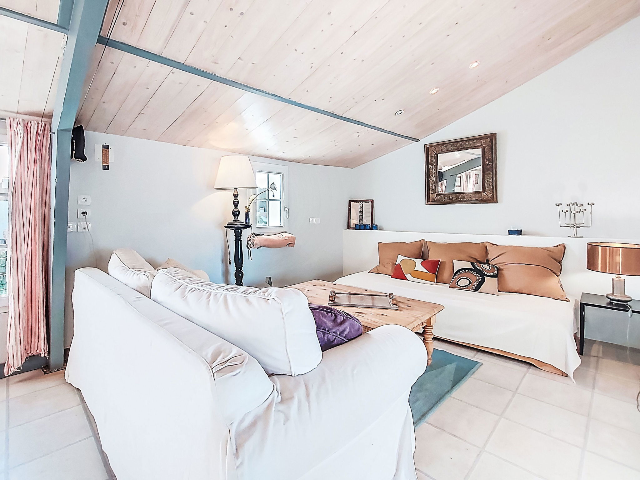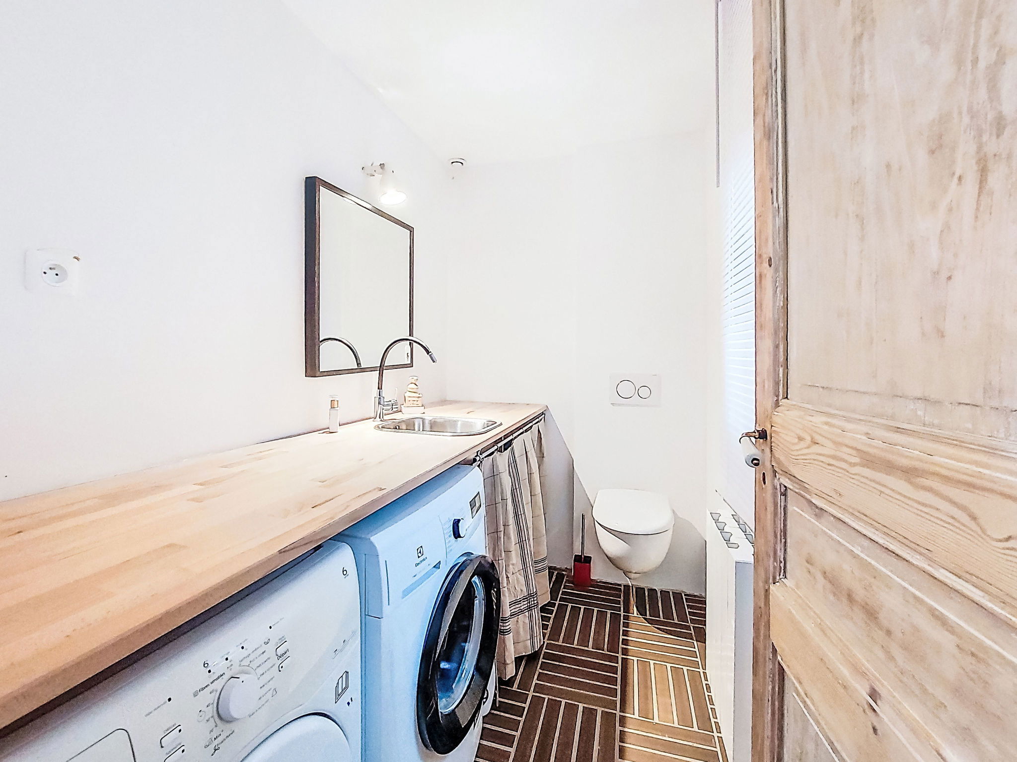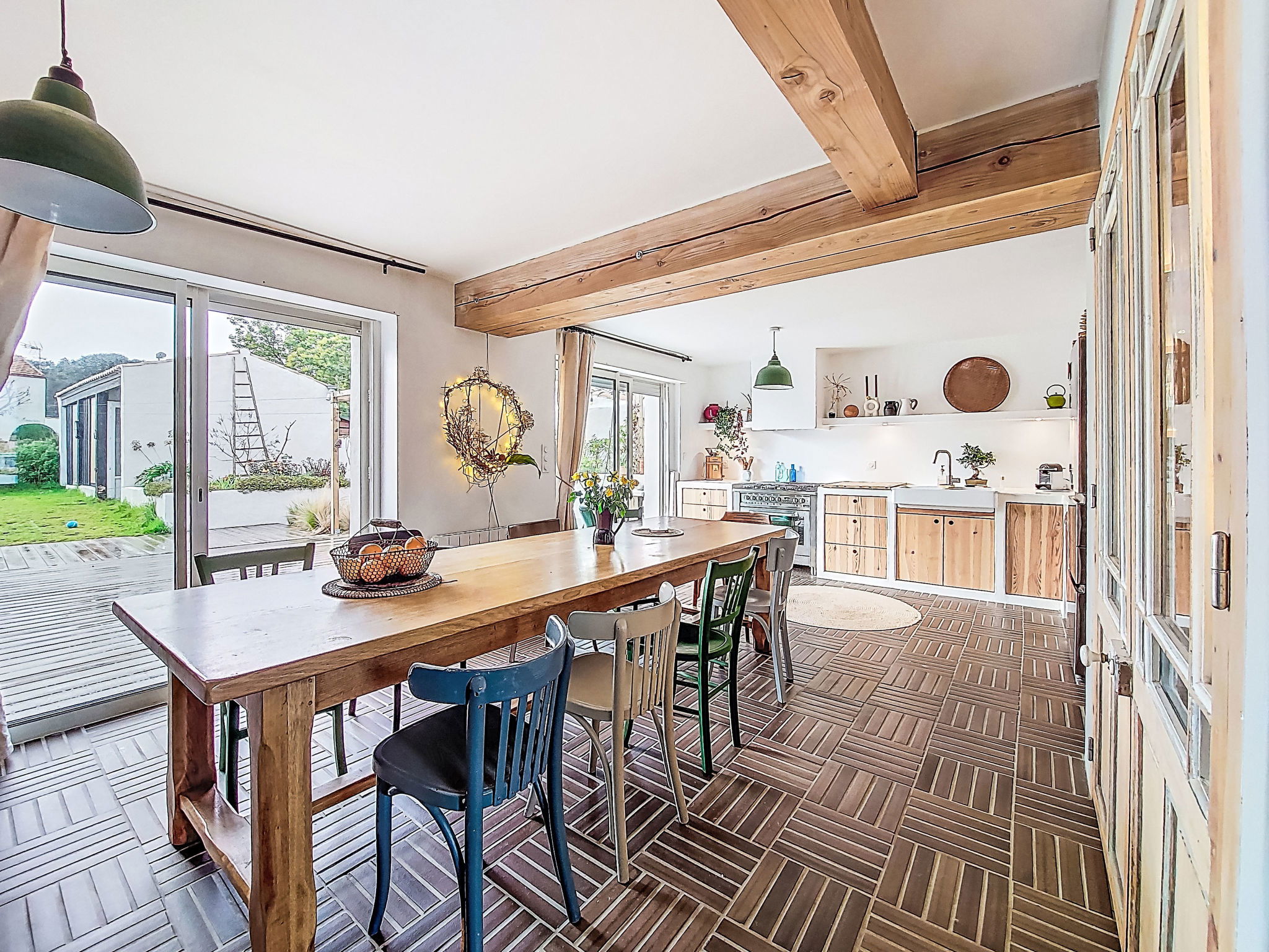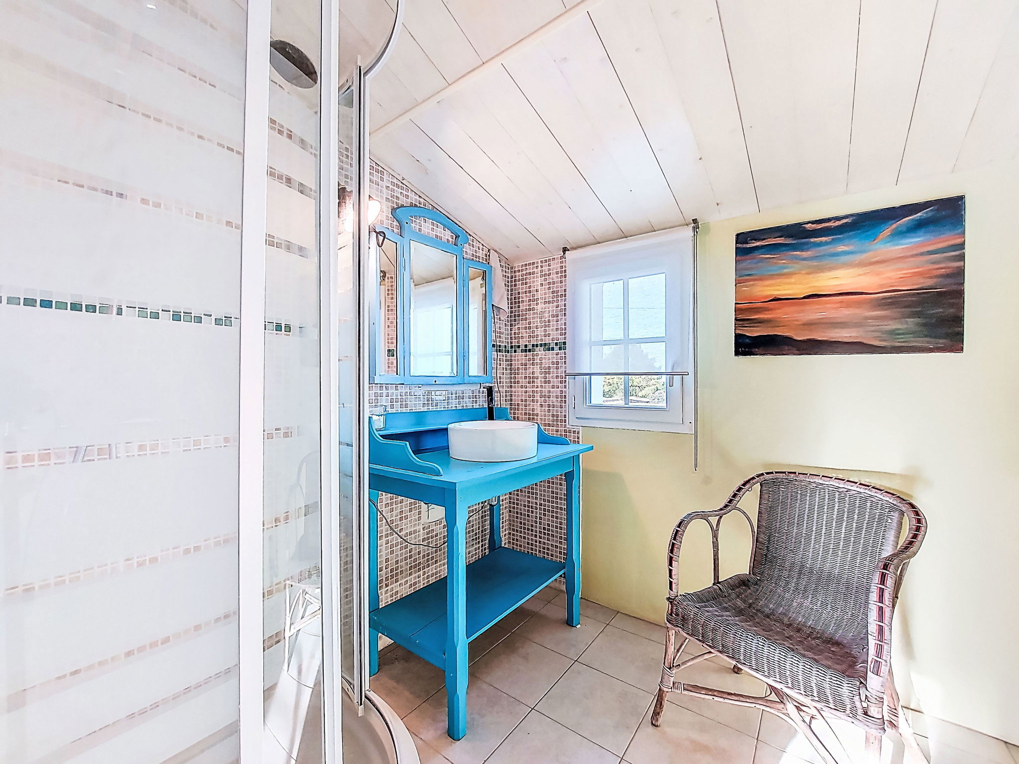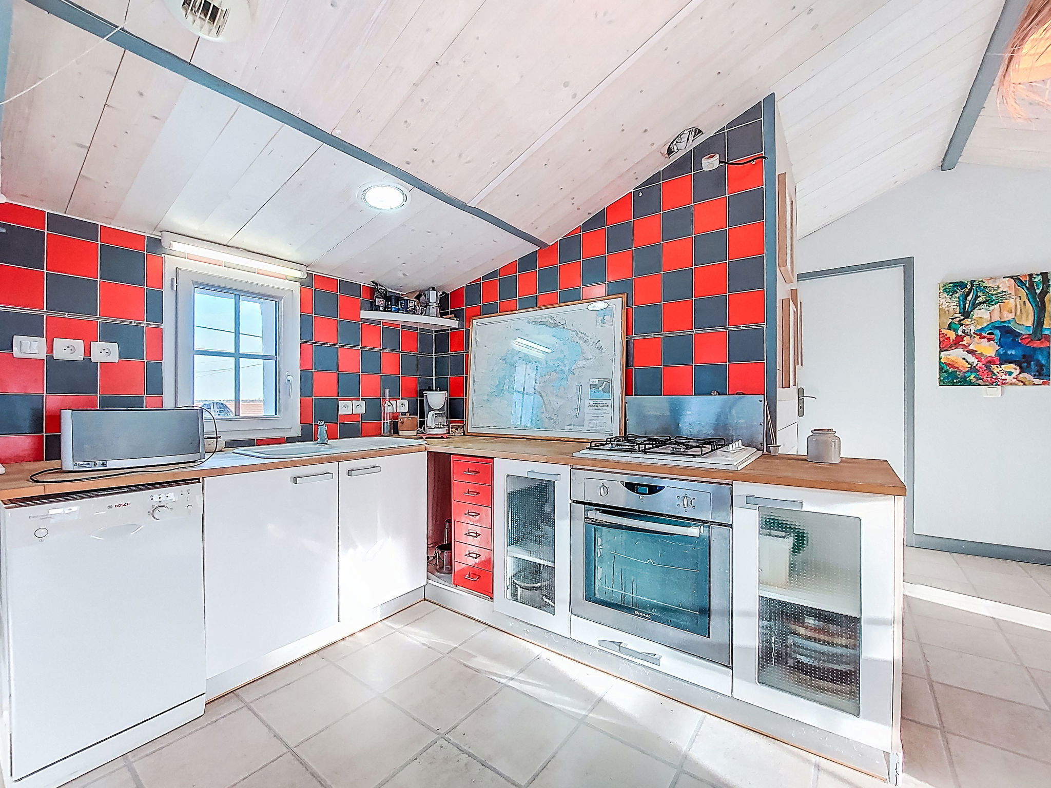 6-room house 165 m2. Renovated, very beautiful furnishings: large living/dining room with Scandinavian wood stove (only for decoration), TV (flat screen). Exit to the terrace. 1 room with 1 french bed (160 cm, length 200 cm), shower/WC. 1 room with 1 french bed (160 cm, length 200 cm), shower. Office. Open kitchen (oven, dishwasher, 5 gas rings, toaster, kettle, microwave, freezer, electric coffee machine). 2 sep. WC's. Upper floor: (exterior staircase) living/sleeping room with 2 beds (90 cm, length 190 cm), kitchen corner. 1 room with sloping ceilings with 1 french bed (140 cm, length 190 cm). 1 room with sloping ceilings with 2 beds (90 cm, length 190 cm). Shower, sep. WC. Electric heating. Large terrace, south facing position. Terrace furniture, barbecue, deck chairs (4). Facilities: washing machine, dryer, iron, baby cot for up to 2 year olds, hair dryer. Internet (WiFi, free). Parking (2 cars). Please note: non-smoking house. Maximum 2 pets/ dogs allowed. Smoke alarm. No internal connecting door between the floors. Offer by a private individual according to Art. 155, IV of CGI.