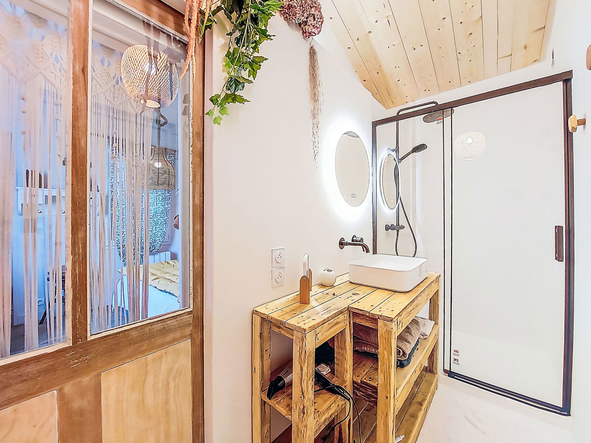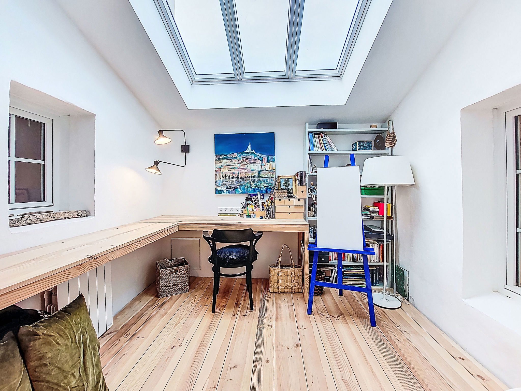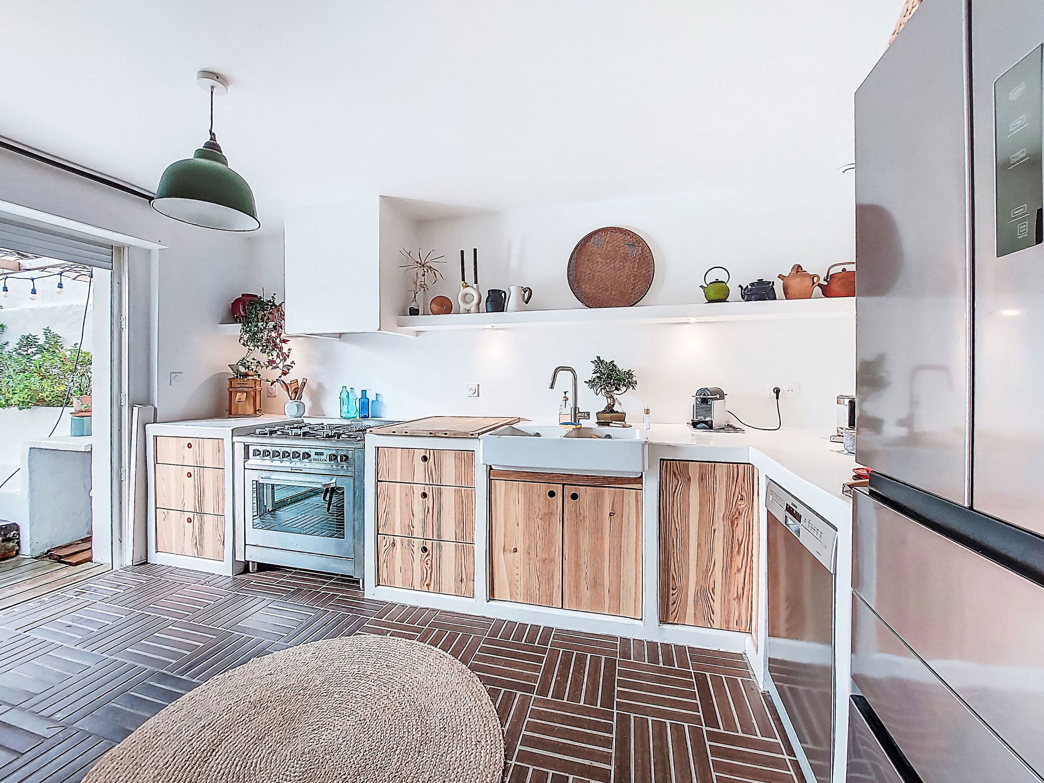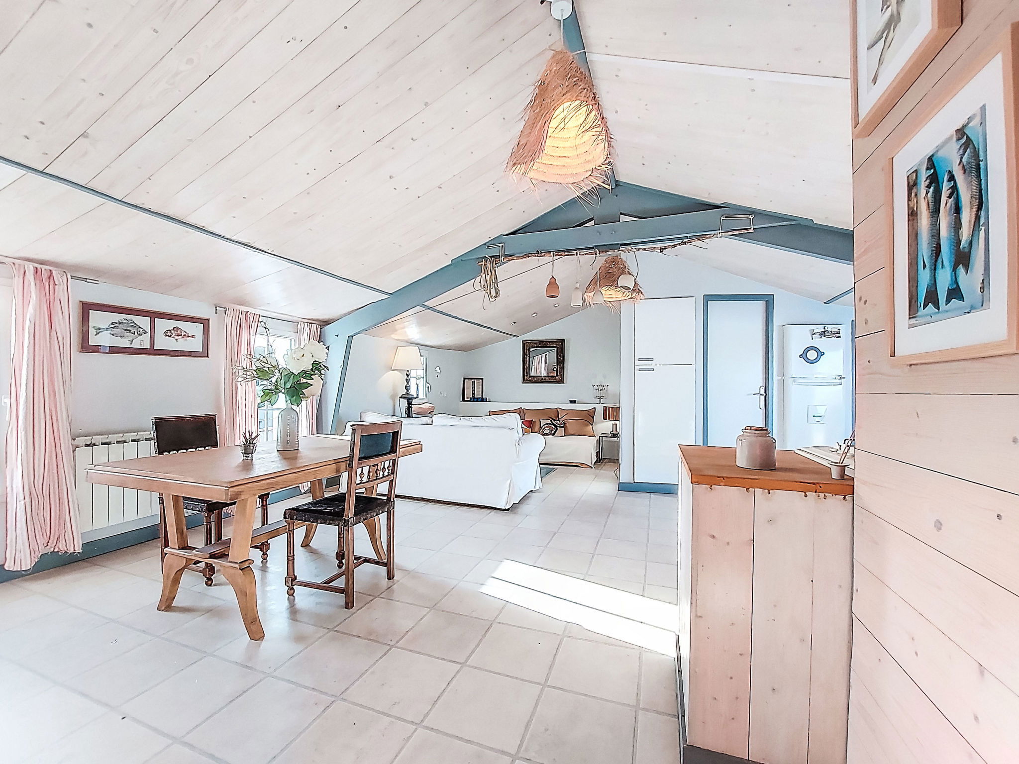 6-room house 165 m2. Renovated, very beautiful furnishings: large living/dining room with Scandinavian wood stove (only for decoration), TV (flat screen). Exit to the terrace. 1 room with 1 french bed (160 cm, length 200 cm), shower/WC. 1 room with 1 french bed (160 cm, length 200 cm), shower. Office. Open kitchen (oven, dishwasher, 5 gas rings, toaster, kettle, microwave, freezer, electric coffee machine). 2 sep. WC's. Upper floor: (exterior staircase) living/sleeping room with 2 beds (90 cm, length 190 cm), kitchen corner. 1 room with sloping ceilings with 1 french bed (140 cm, length 190 cm). 1 room with sloping ceilings with 2 beds (90 cm, length 190 cm). Shower, sep. WC. Electric heating. Large terrace, south facing position. Terrace furniture, barbecue, deck chairs (4). Facilities: washing machine, dryer, iron, baby cot for up to 2 year olds, hair dryer. Internet (WiFi, free). Parking (2 cars). Please note: non-smoking house. Maximum 2 pets/ dogs allowed. Smoke alarm. No internal connecting door between the floors. Offer by a private individual according to Art. 155, IV of CGI.