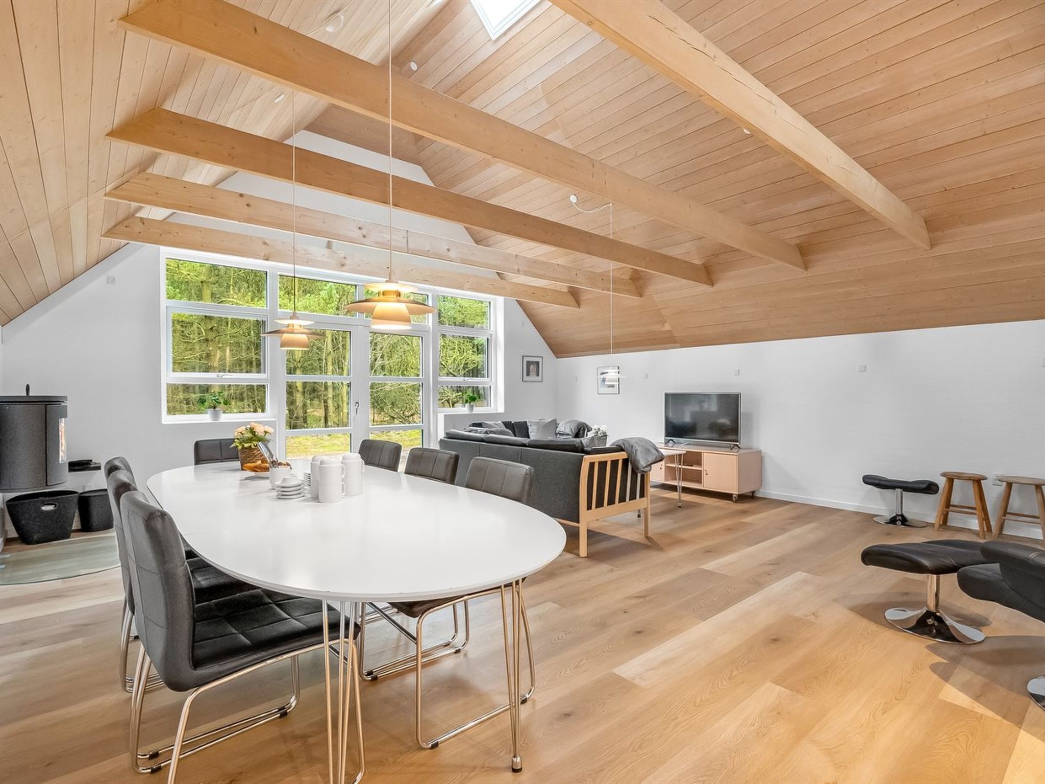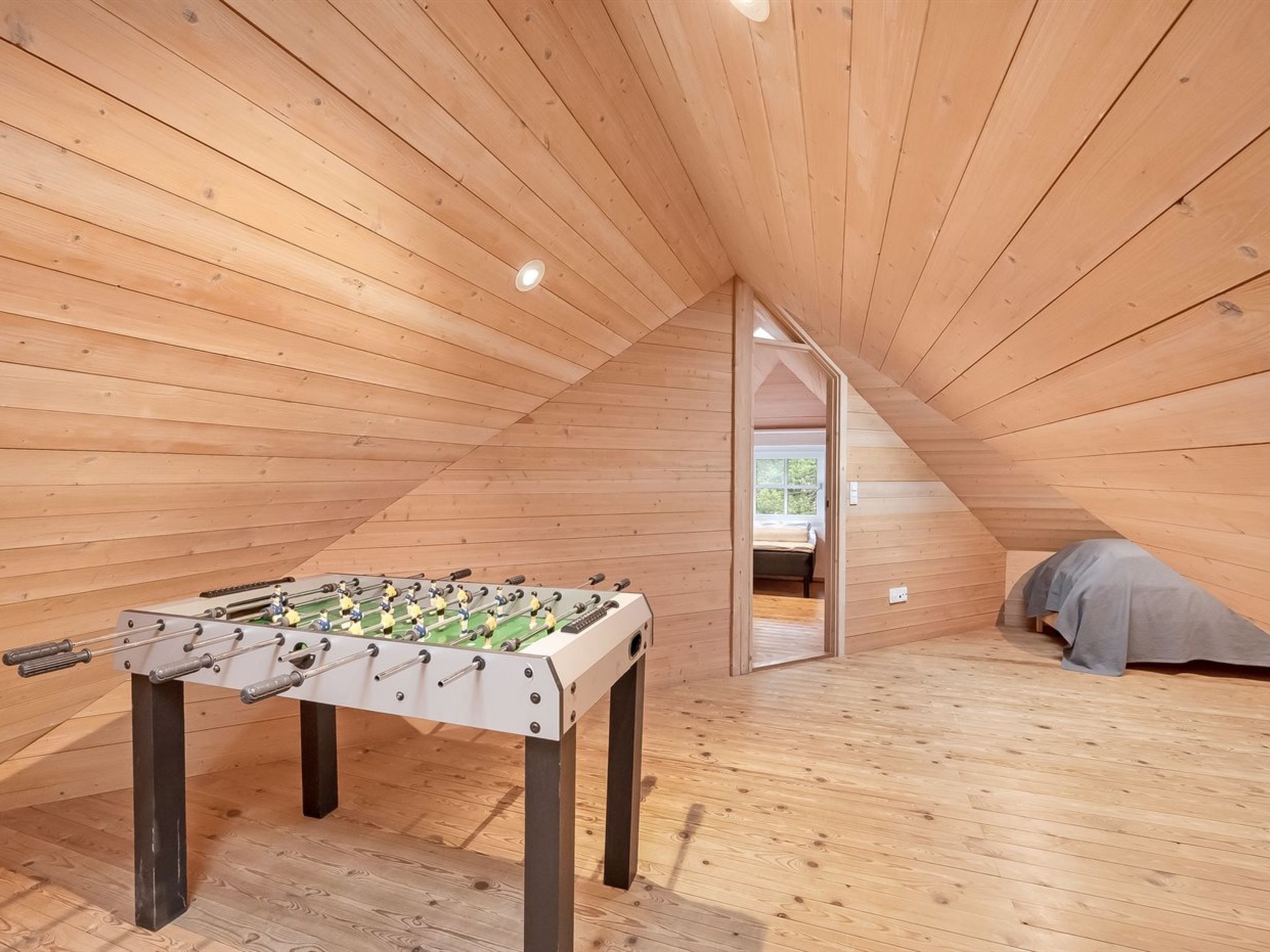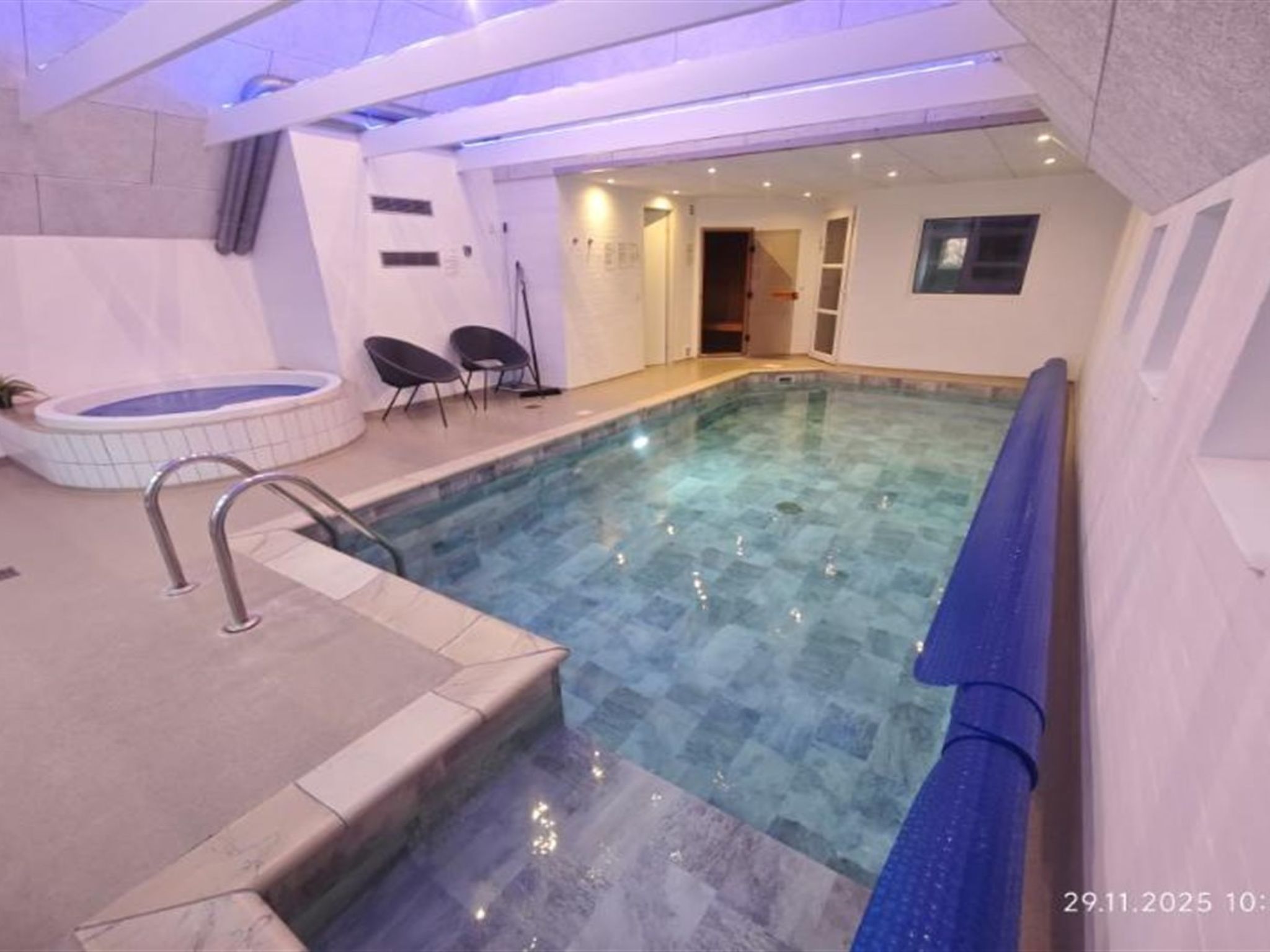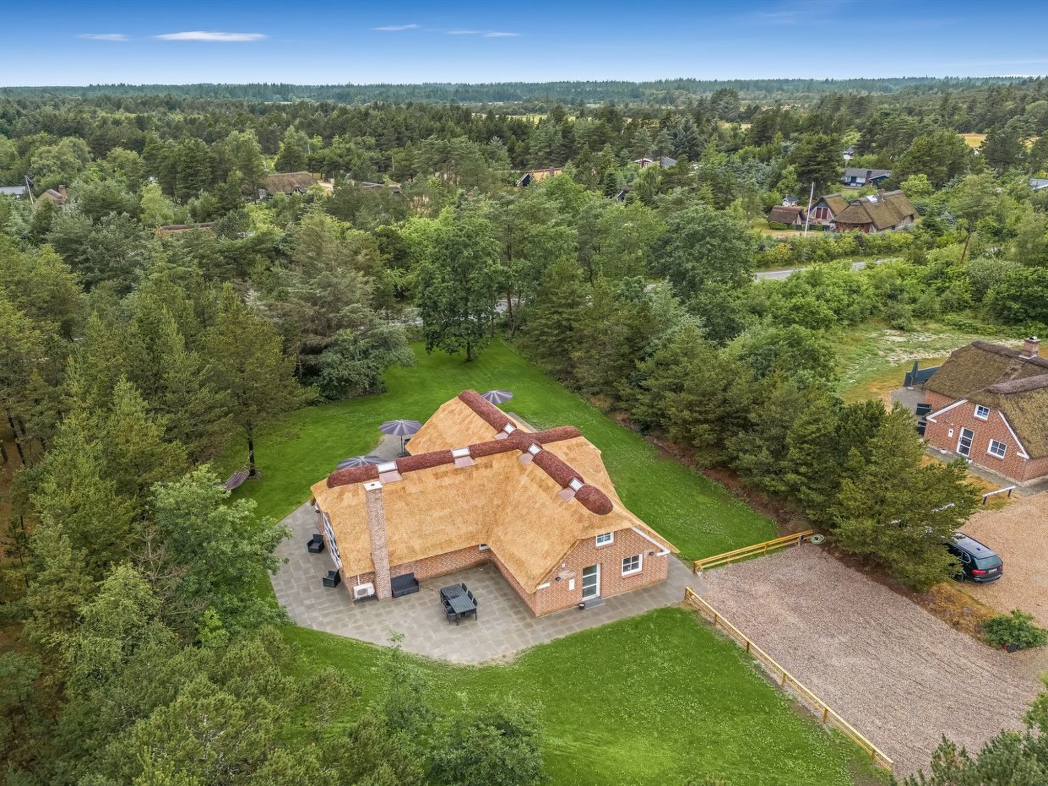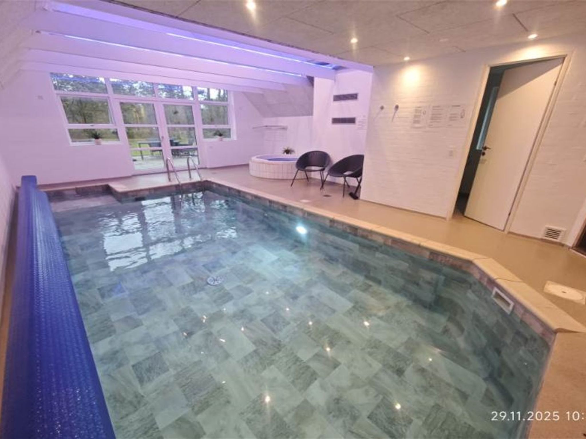 Single-family house, built in 1994. 2.5 km from the sea. Private: natural state property 2'286 m2, indoor pool (3 x 6 m, 18 m2, depth 140 - 140 cm). Terrace (220 m2), children's playground (slide, swing). In the house: sauna, trampoline, washing machine, tumble dryer. Parking at the house. E-charging station. Grocery 1 km. The owner does not accept any youth groups.