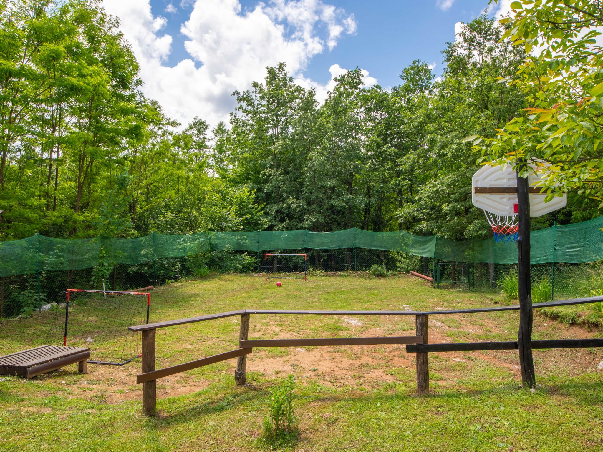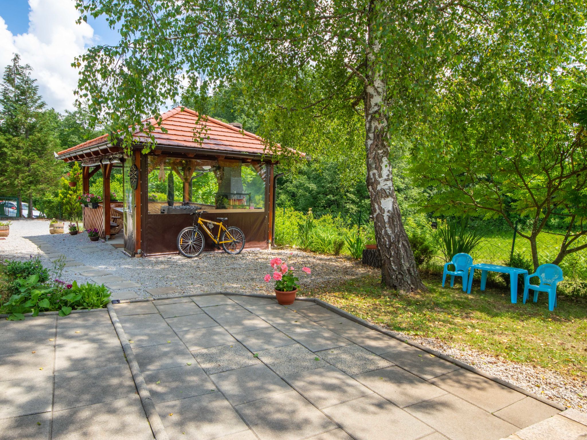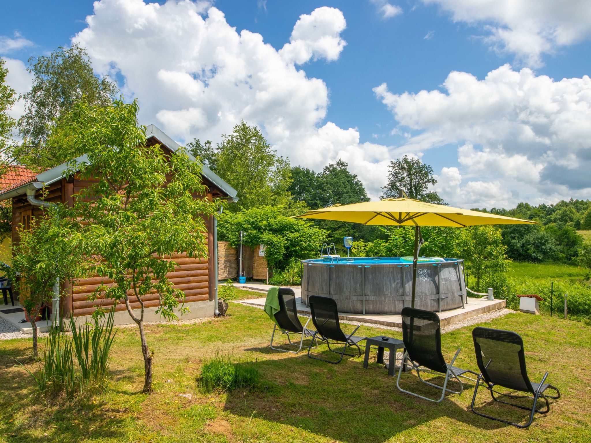 Tounj 17 km from Ogulin: Single-family house "Tina". 2 km from the centre of Tounj, in a quiet, sunny position, in the countryside. Private: property 1'200 m2 (fenced) with lawn 700 m2 trees, swimming pool (above ground) round (4.50 m diameter, depth 120 cm, seasonal availability: 01.May. - 01.Oct.). Outdoor shower, hot tub, terrace (20 m2), garden furniture, barbecue, barbecue house (swing). In the house: internet access, sauna, trampoline, washing machine, bicycles available. Parking (for 4 cars) at the house on the premises. Shop 2 km, restaurant 3.5 km, bus stop 1.9 km. Well-known lakes can easily be reached: Plitvička jezera 65 km.