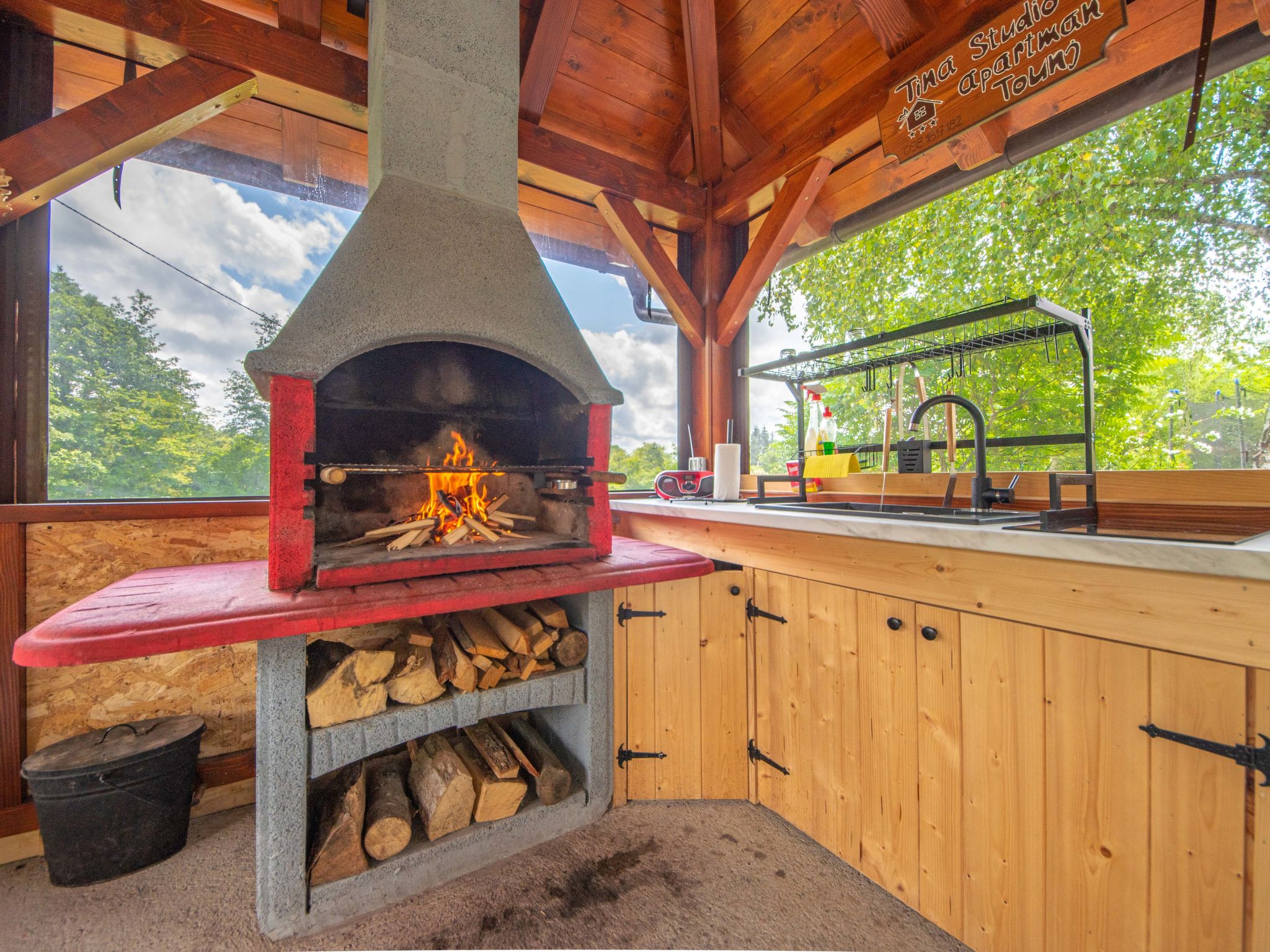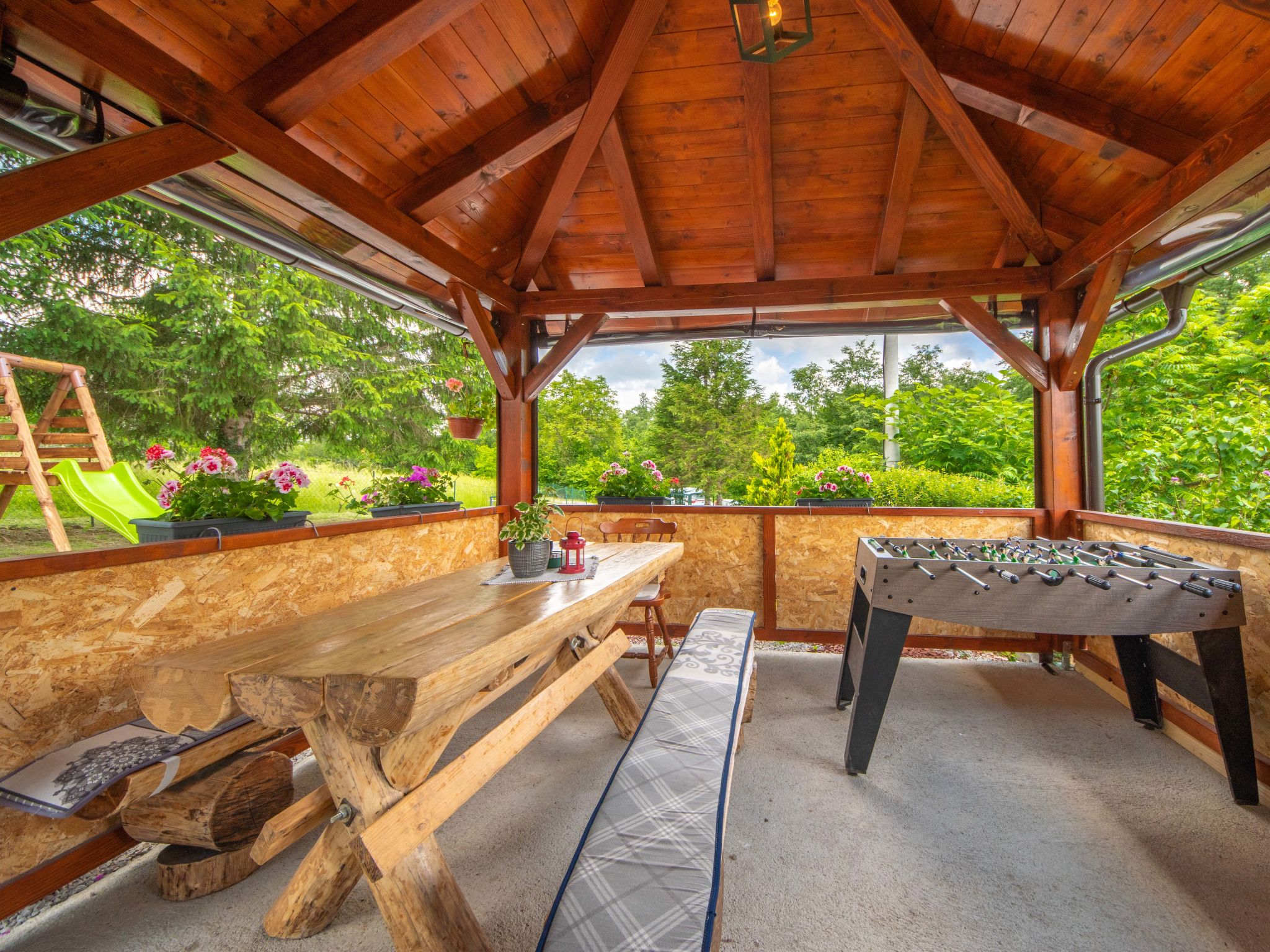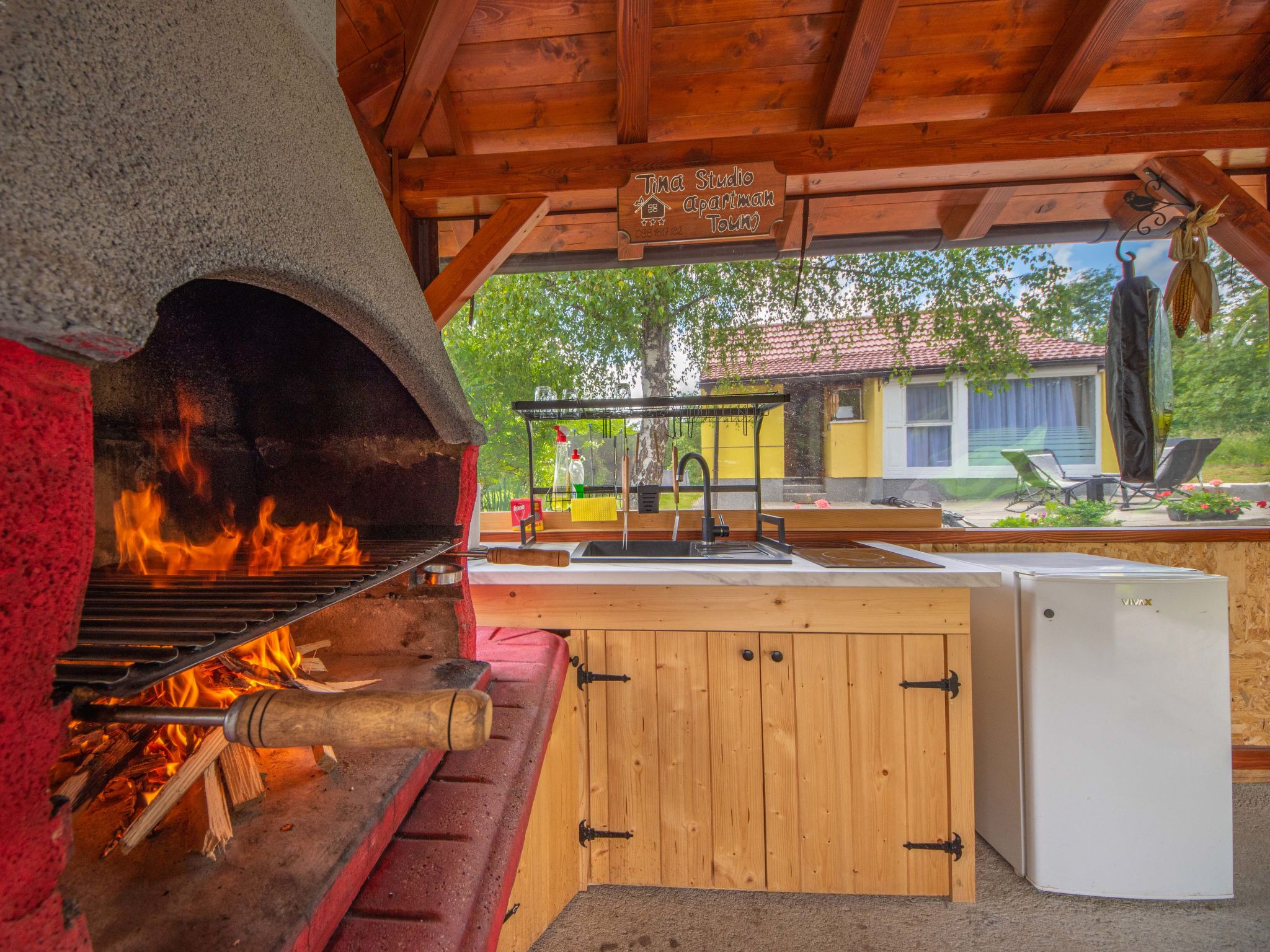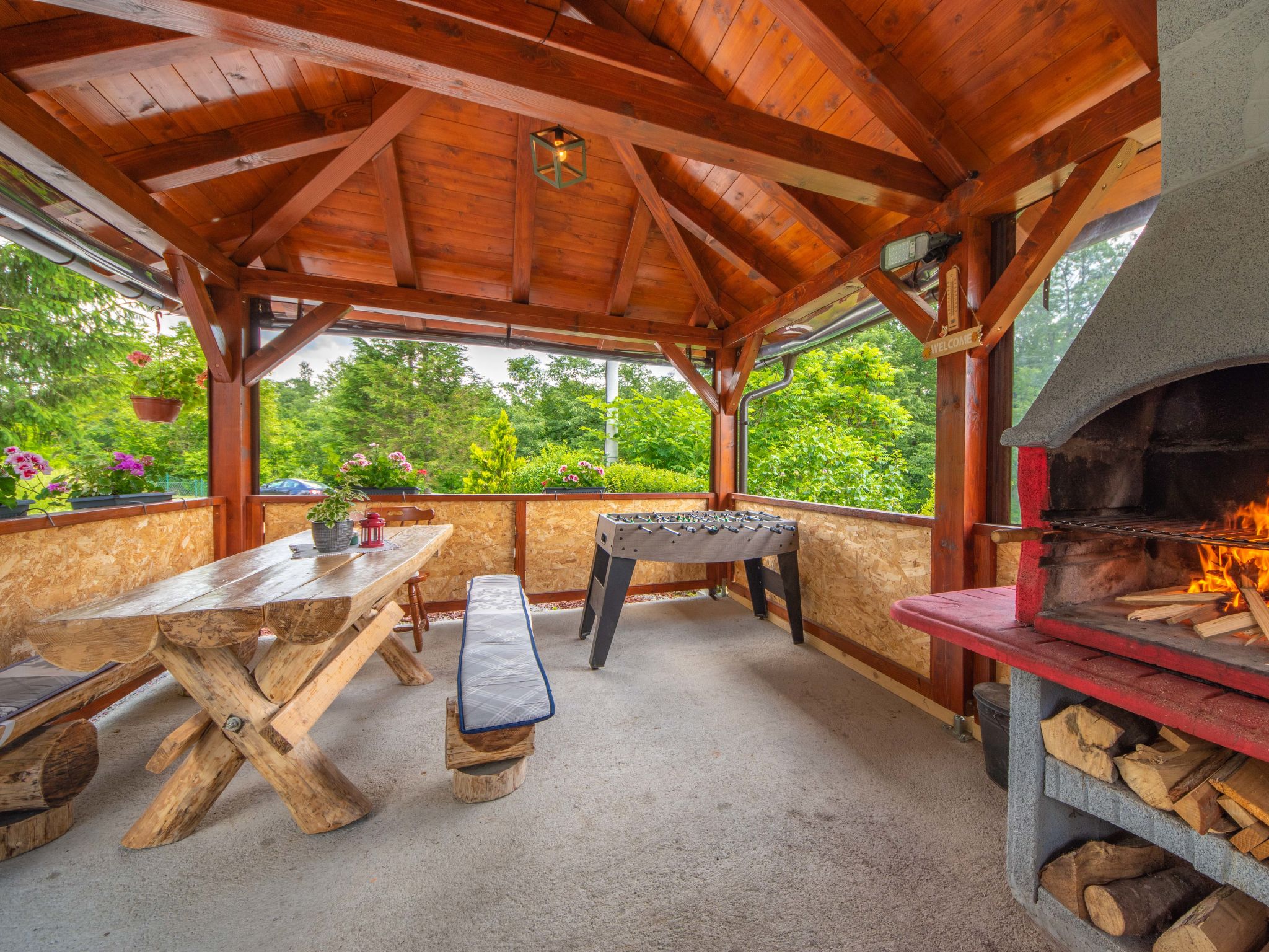 Tounj 17 km from Ogulin: Single-family house "Tina". 2 km from the centre of Tounj, in a quiet, sunny position, in the countryside. Private: property 1'200 m2 (fenced) with lawn 700 m2 trees, swimming pool (above ground) round (4.50 m diameter, depth 120 cm, seasonal availability: 01.May. - 01.Oct.). Outdoor shower, hot tub, terrace (20 m2), garden furniture, barbecue, barbecue house (swing). In the house: internet access, sauna, trampoline, washing machine, bicycles available. Parking (for 4 cars) at the house on the premises. Shop 2 km, restaurant 3.5 km, bus stop 1.9 km. Well-known lakes can easily be reached: Plitvička jezera 65 km.
