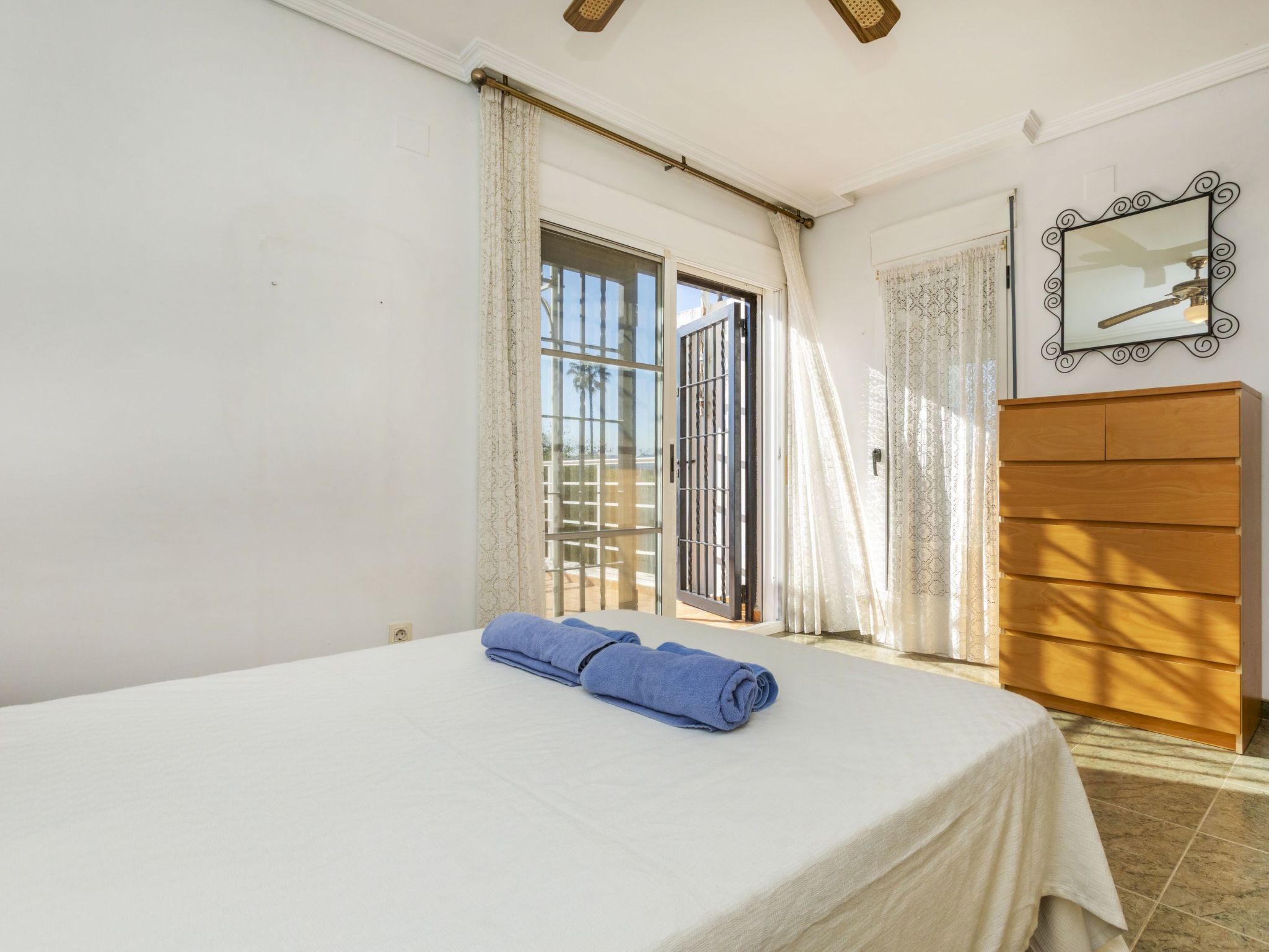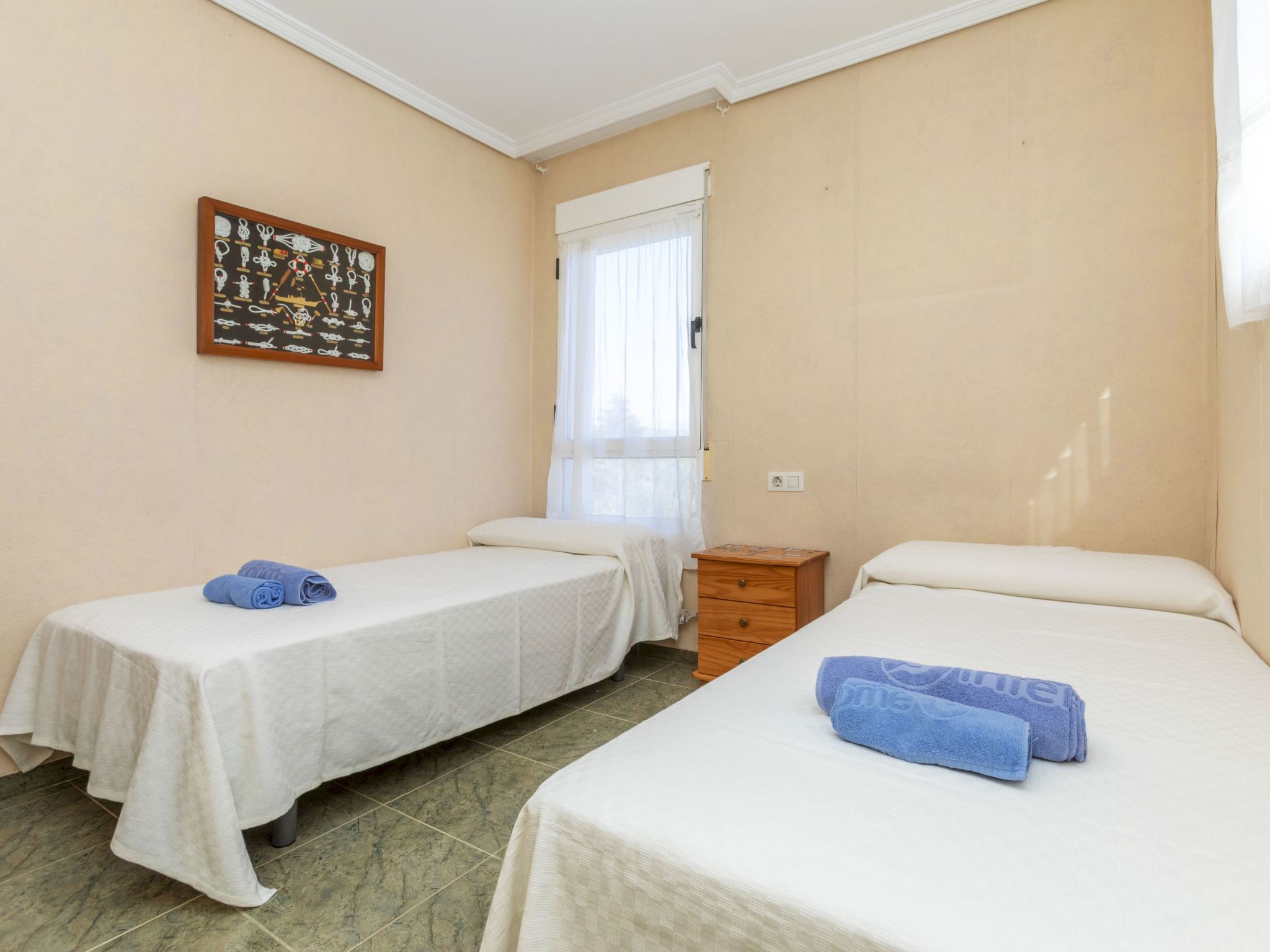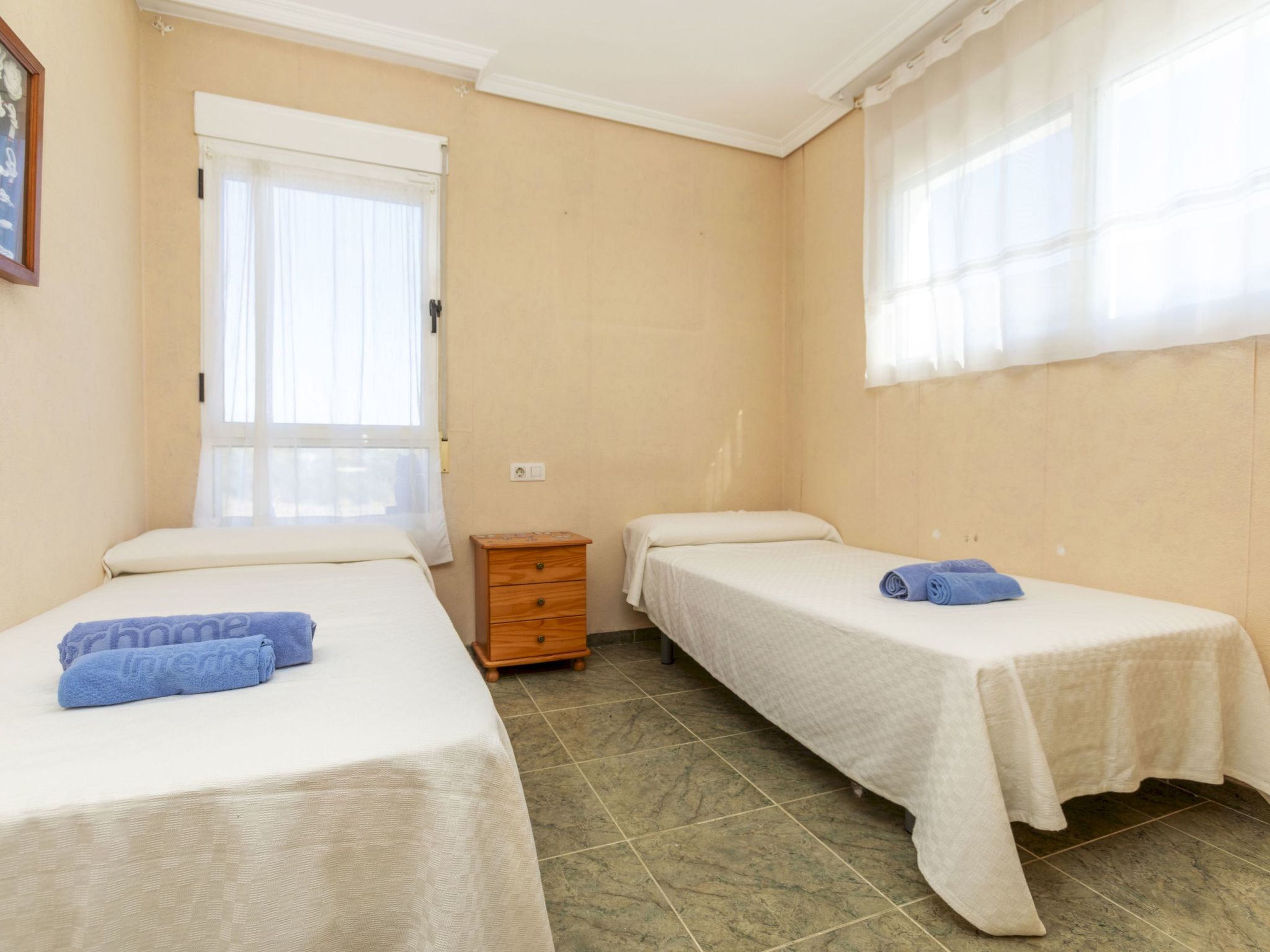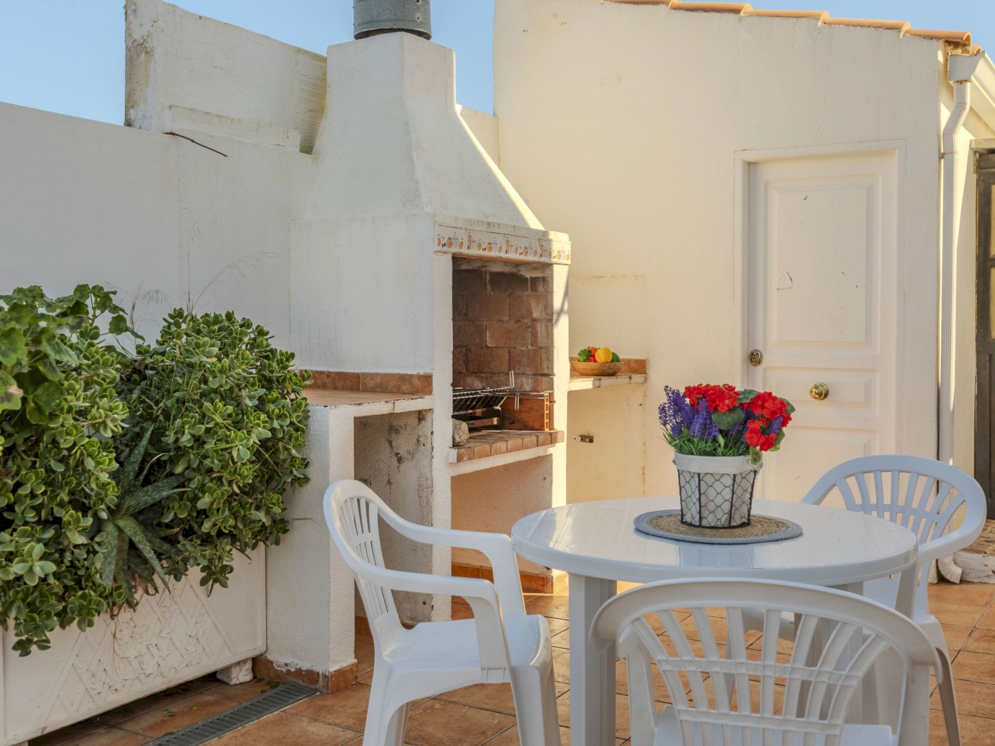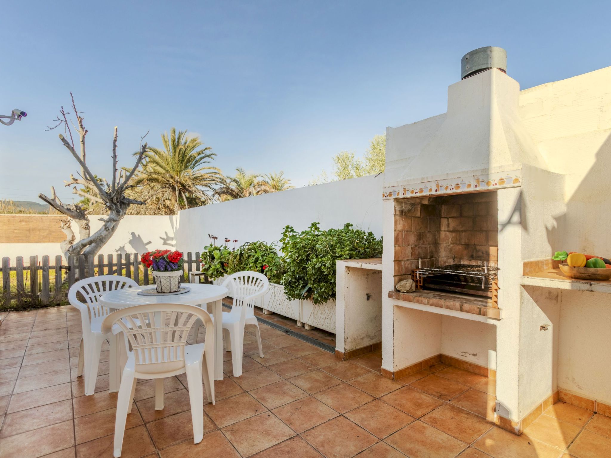 Cabanes 8 km from Oropesa: Comfortable terraced house "La Rambleta", 2 storeys. In the resort 8 km from the centre of Oropesa del Mar, in a quiet, sunny position residential area (villas), 1 km from the sea, 1 km from the beach. Private: property with wildlife garden and flowers, natural garden (fenced). Patio, roofed, parking on the premises. Shop 1 km, supermarket 2 km, restaurant 500 m, bar 1 km, bakery 3 km, bus stop 500 m, railway station "Oropesa del Mar" 4 km, sandy beach "500". Nearby attractions: Parque Acuático 3 km, Oropesa del Mar pueblo 8 km, Benicassim 20 km, Peñíscola 50 km. Please note: car recommended. Groups of teenagers on request only. Neighbourhood highly sensitive to noise. Quietness and good behaviour expected.
